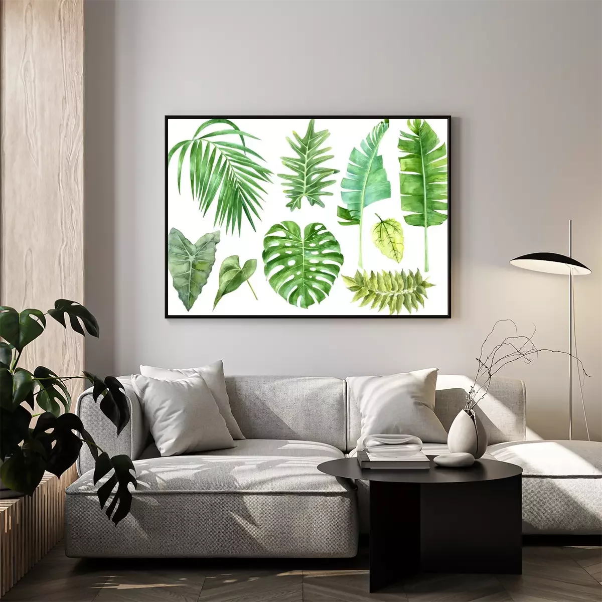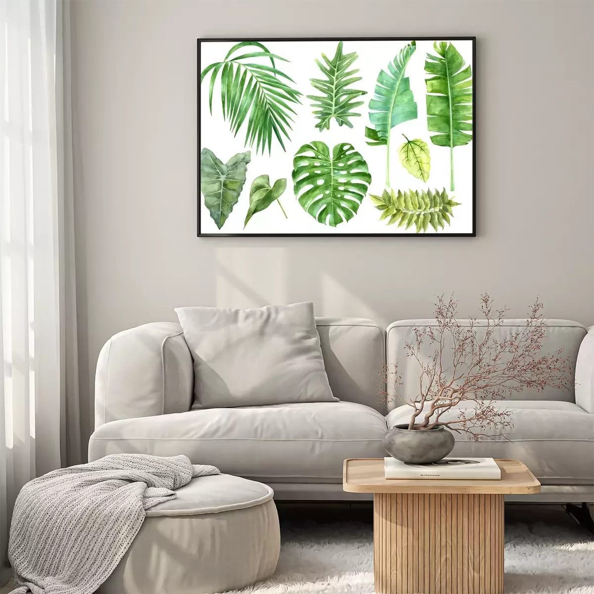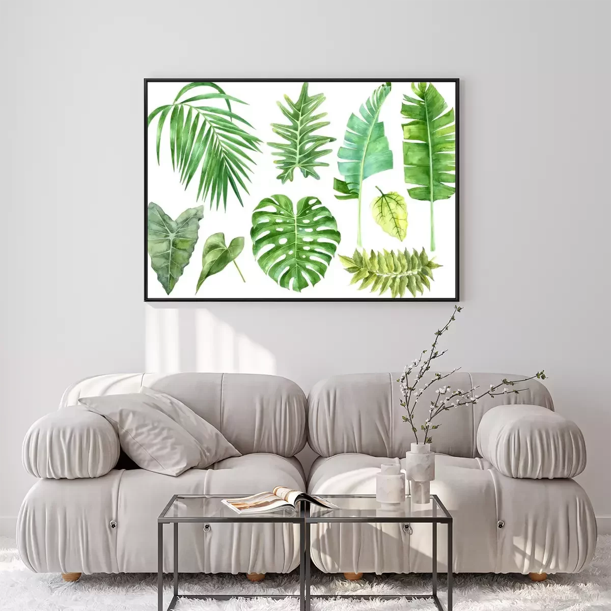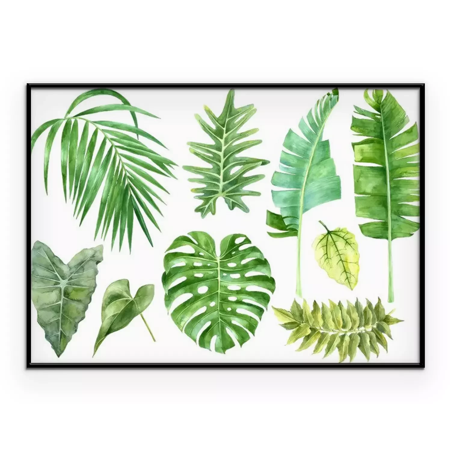 Poster: Groene banaan, monstera en palmbladeren in een aquarel editie