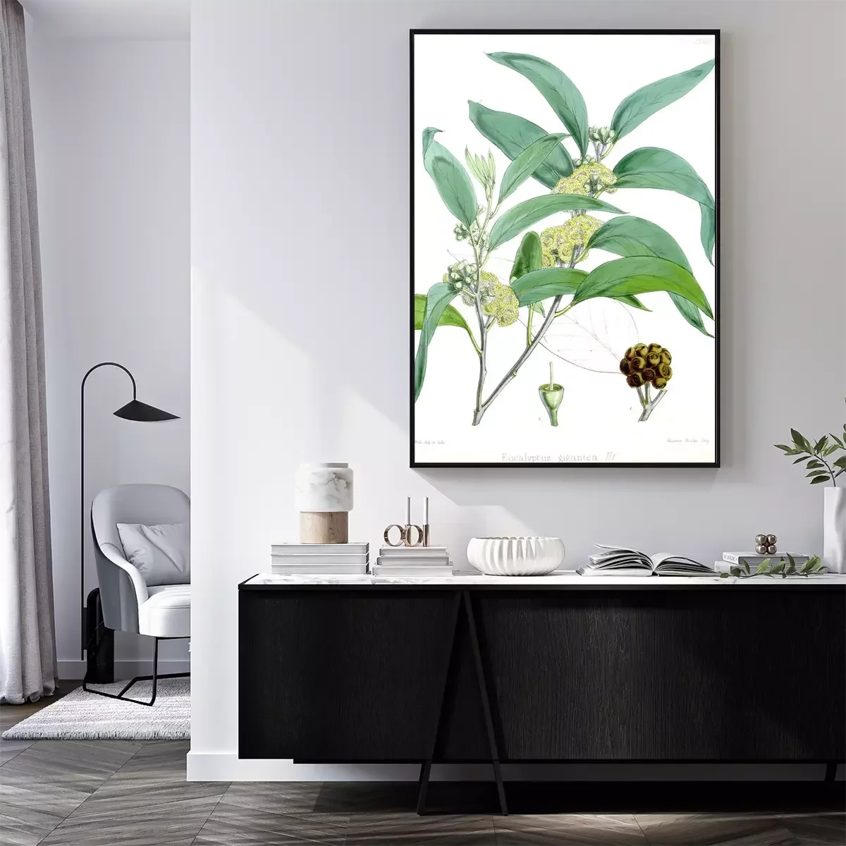 Poster: Groene bloemen botanische tekening