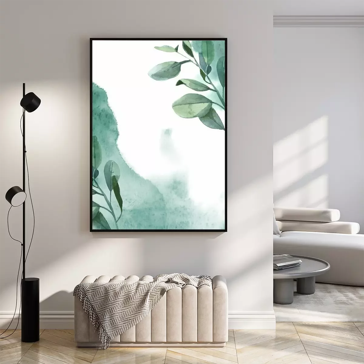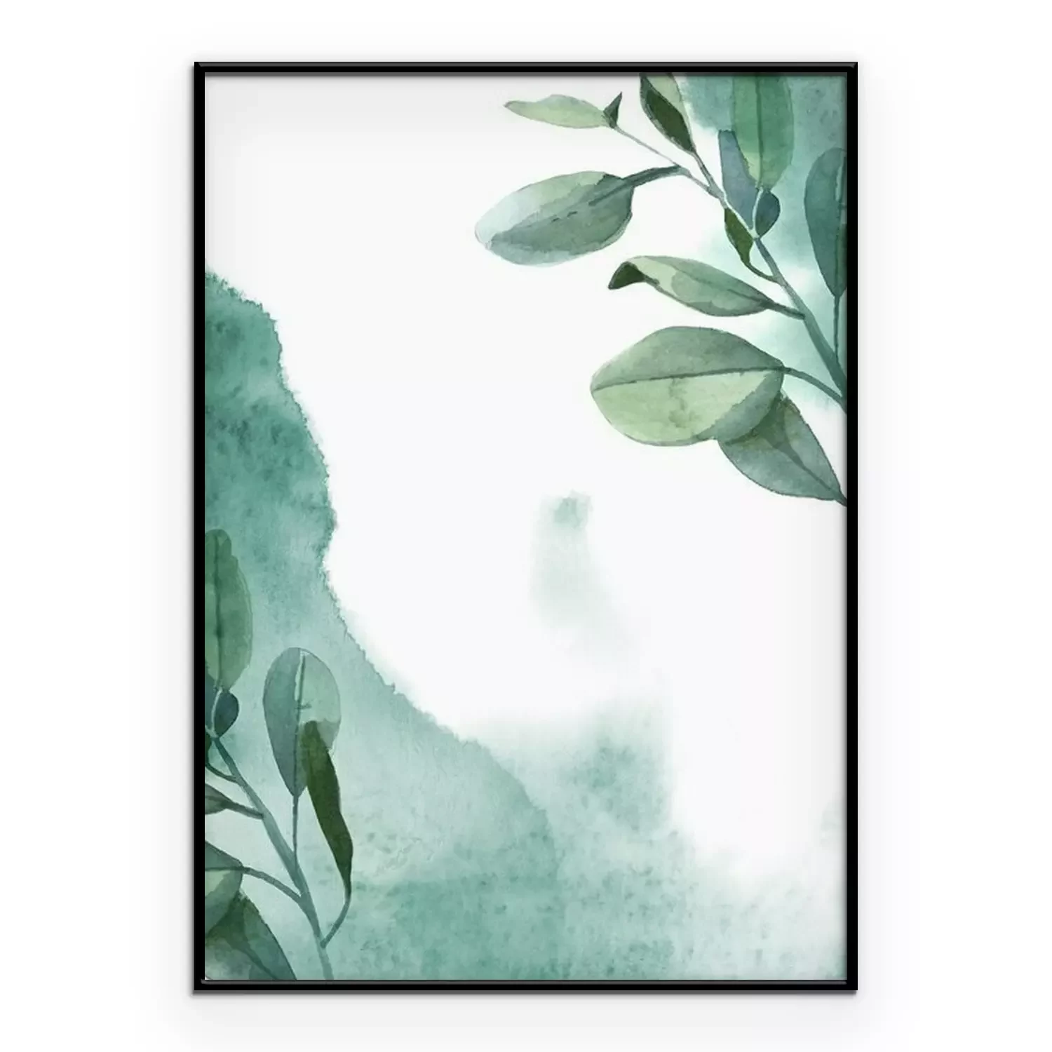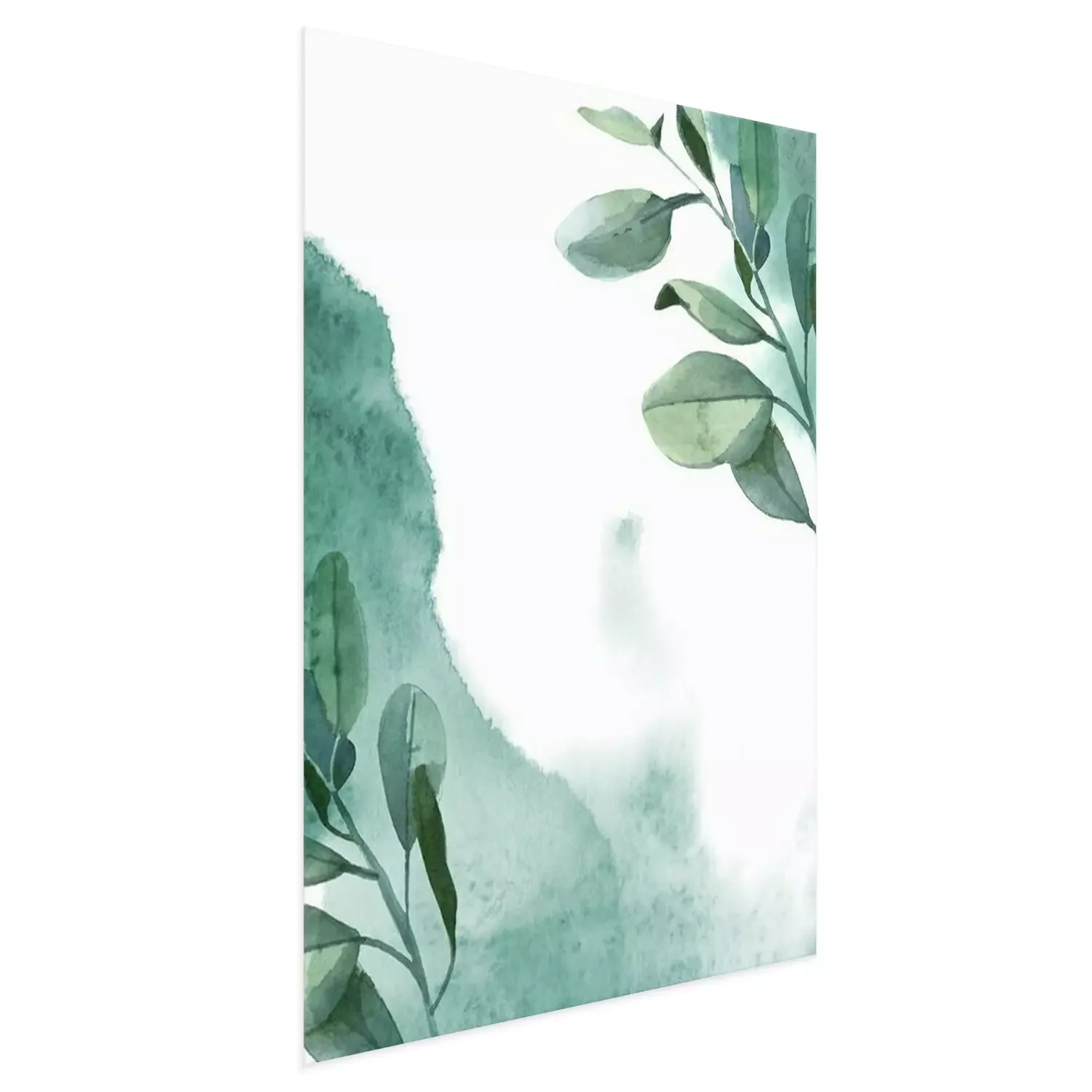 Poster: Groene eucalyptusbladeren en waterverfachtergrond