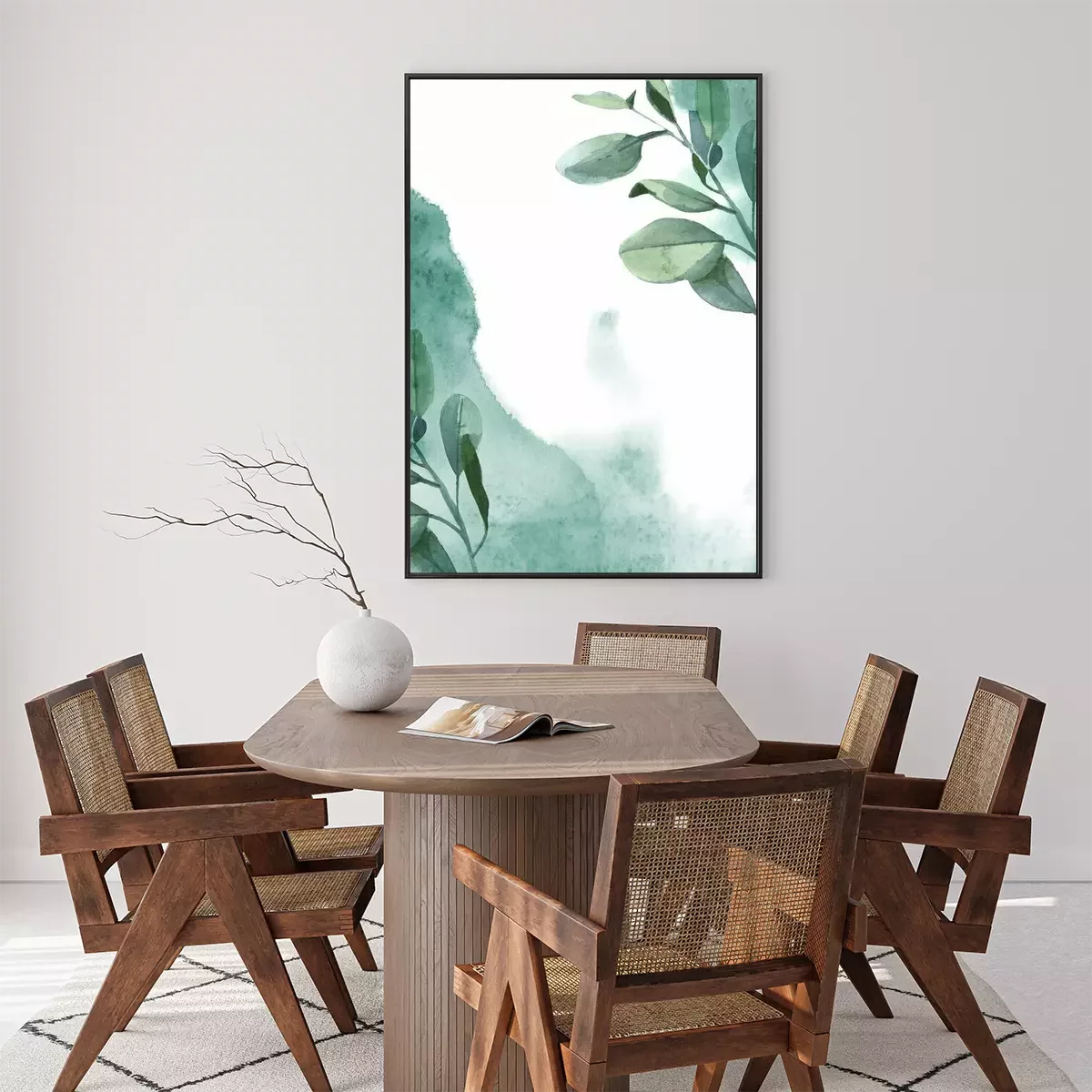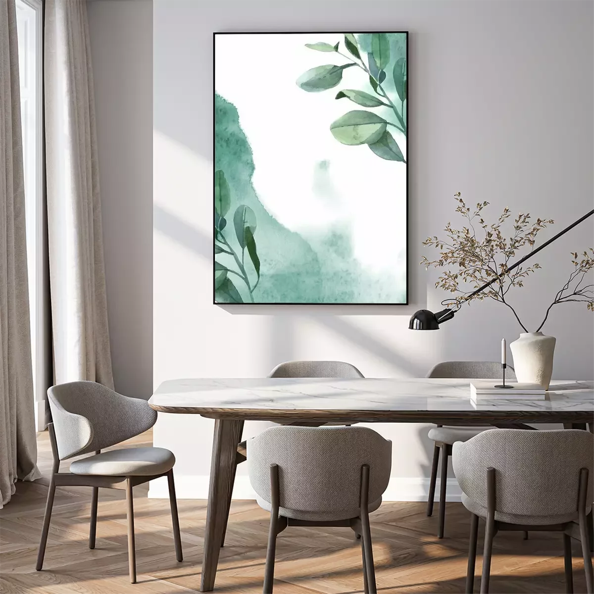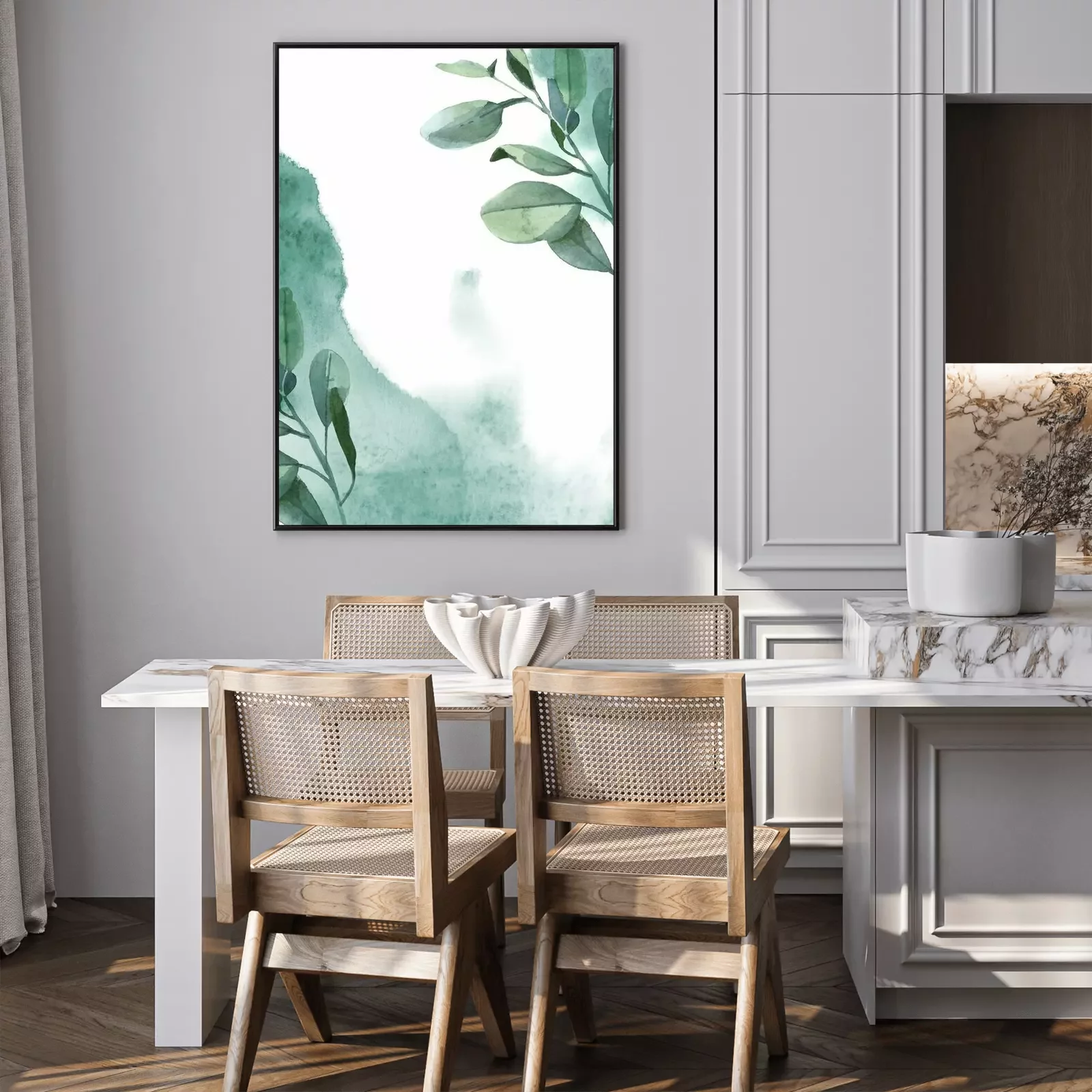 Poster: Groene eucalyptusbladeren en waterverfachtergrond