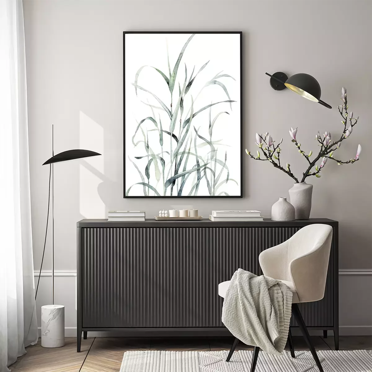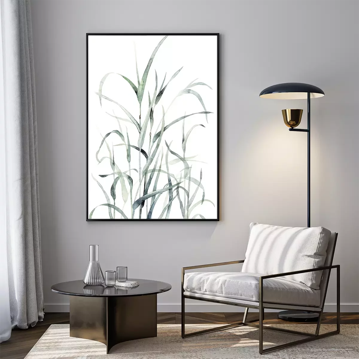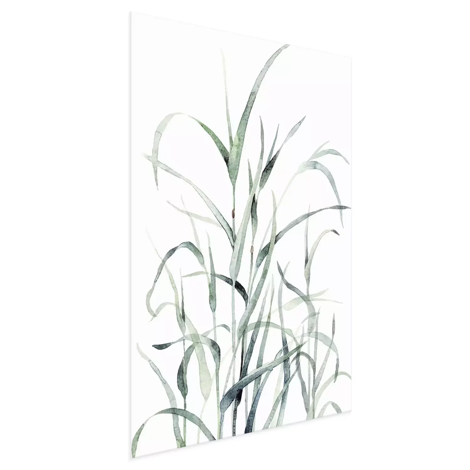 Poster: Groene grassprieten op een witte achtergrond