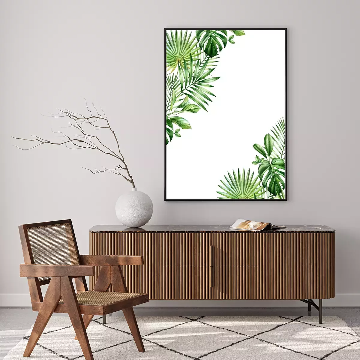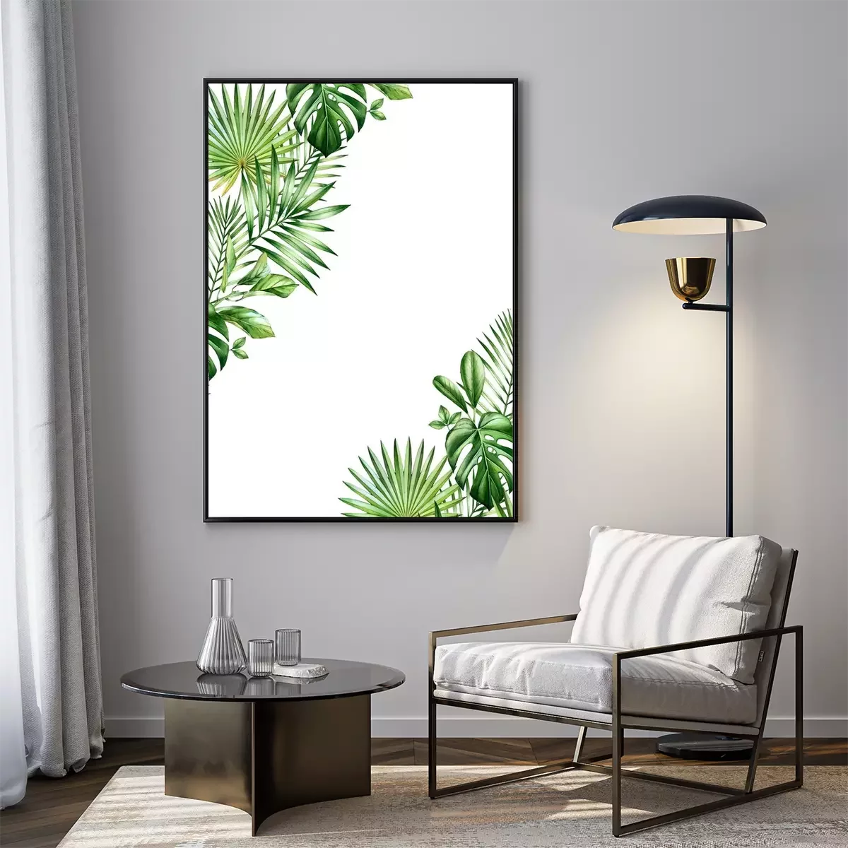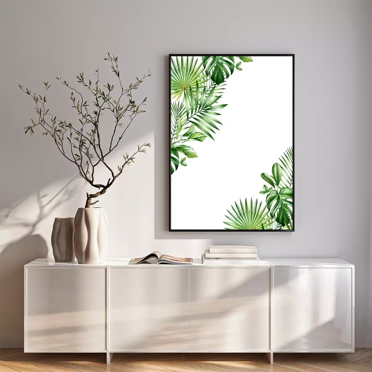 Poster: Groene planten geplaatst op de hoeken van de illustratie