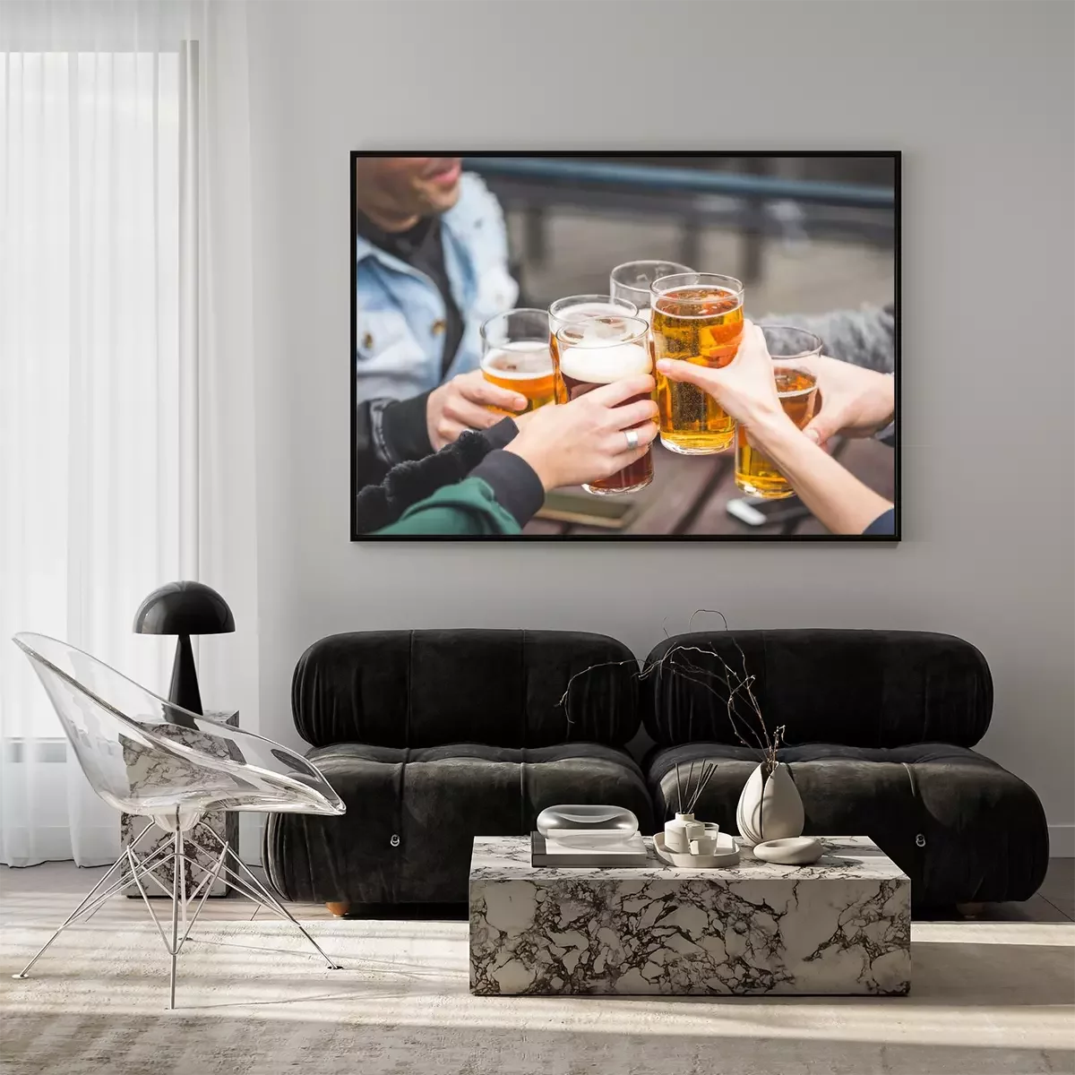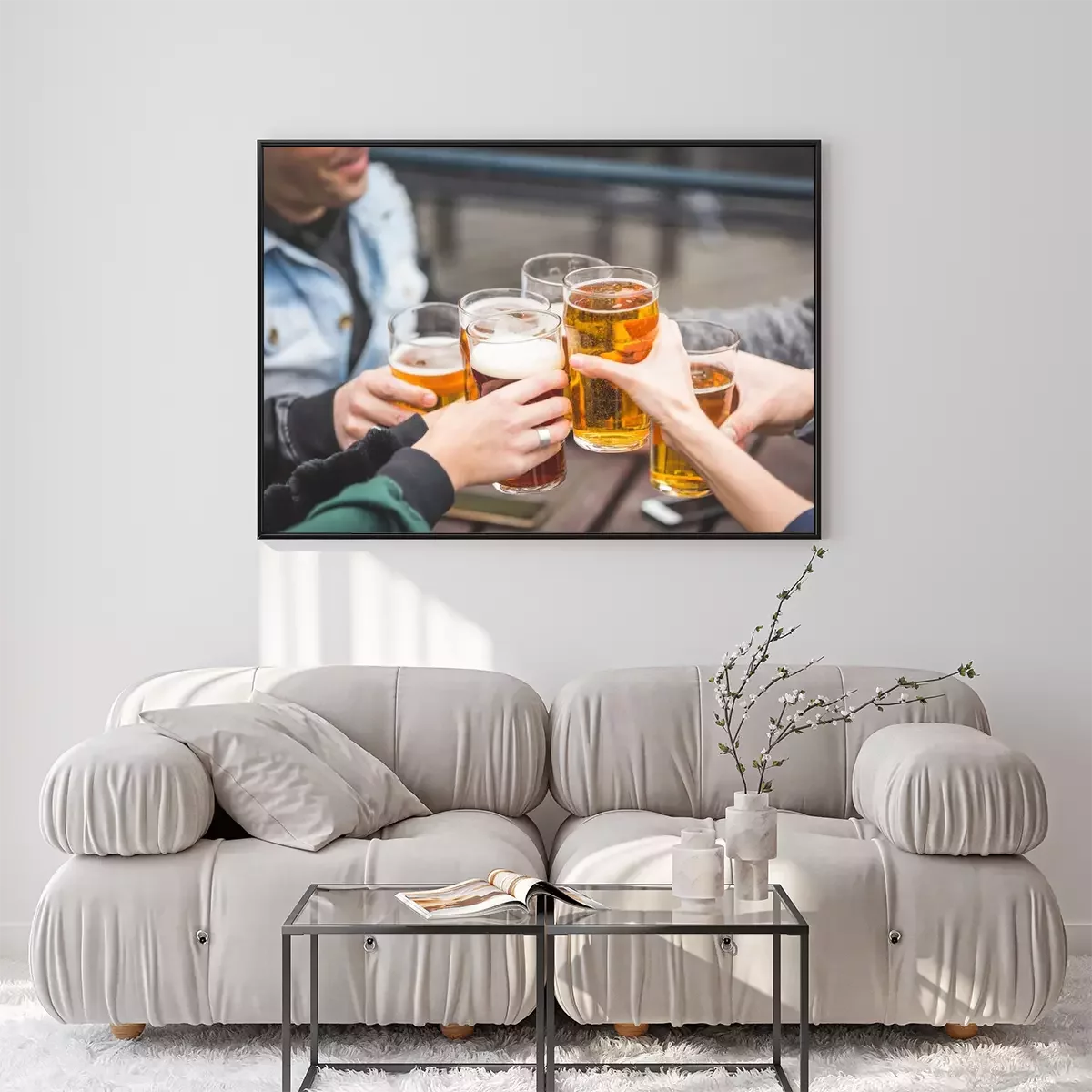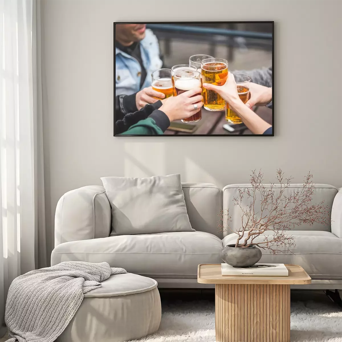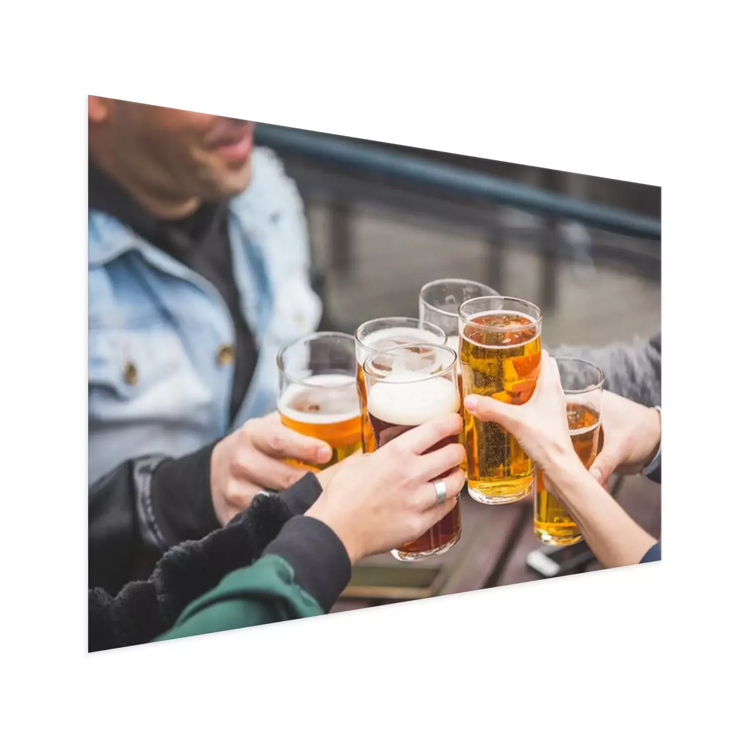Poster: Groep van vrienden genieten van een biertje in de pub in Londen