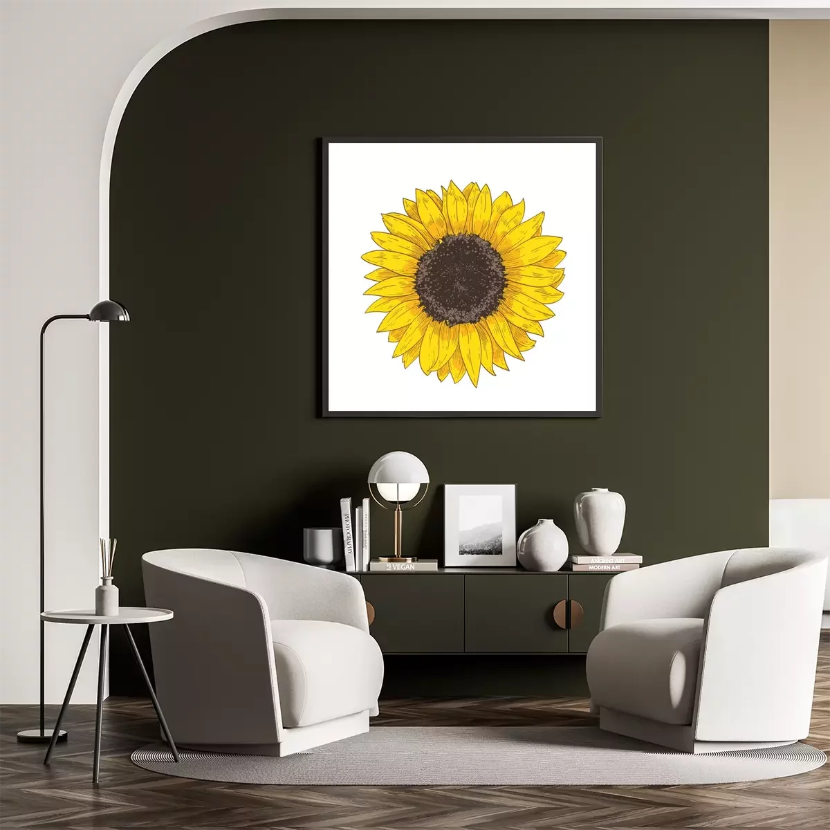 Tekening van rijpe zonnebloemen met zaden