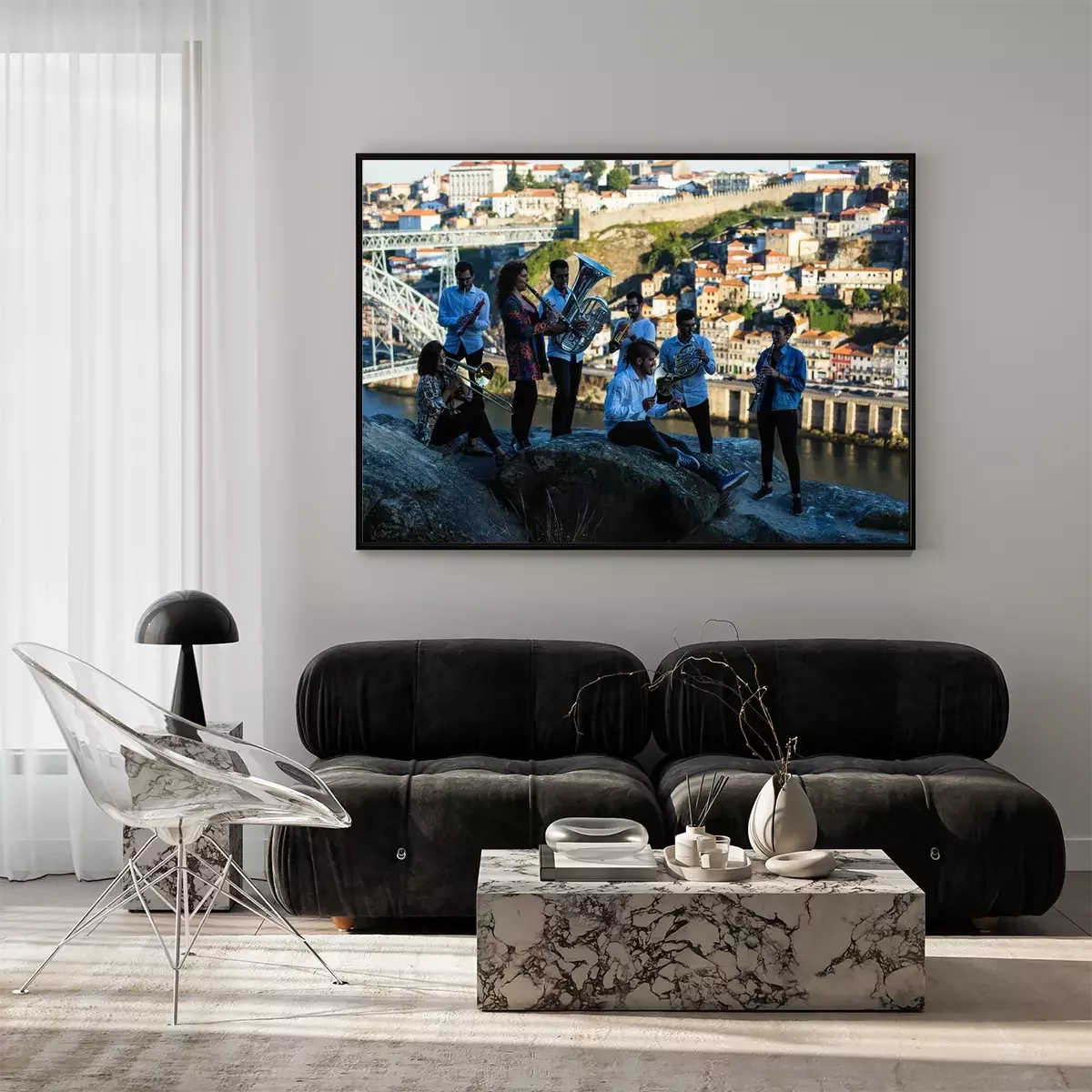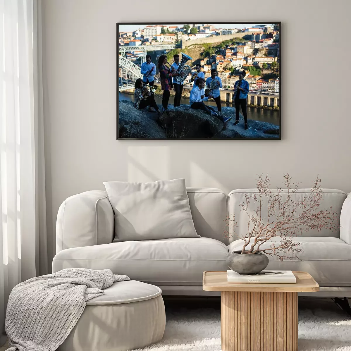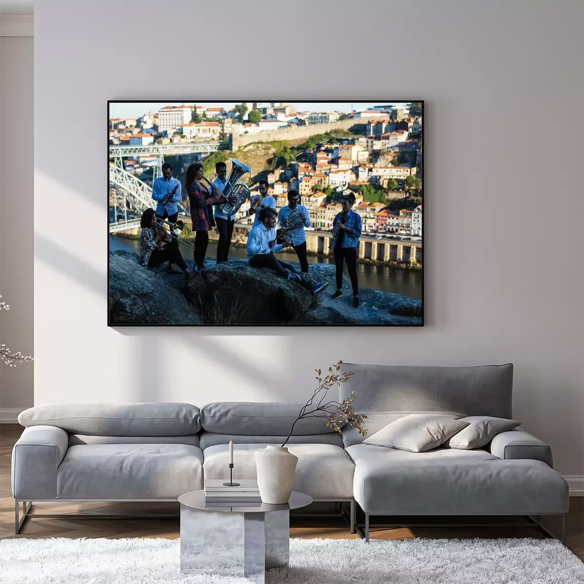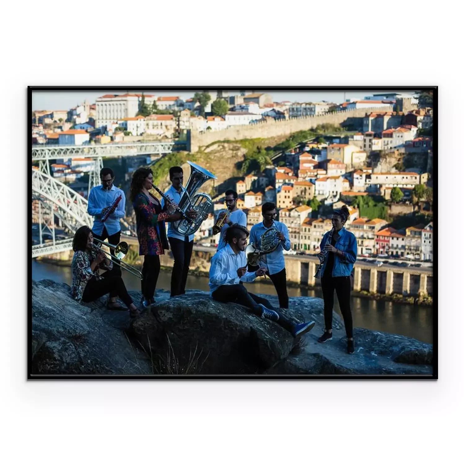 Poster: Group of musicians, Jazz band, play music in the old Porto, Portugal.