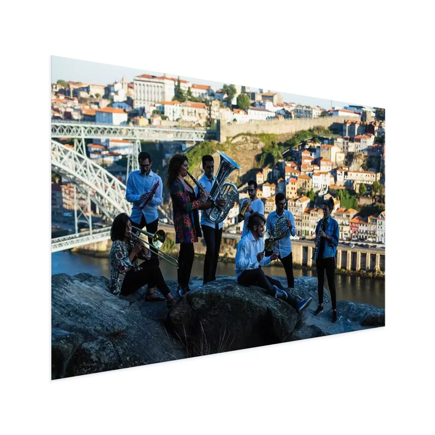 Poster Group of musicians, Jazz band, play music in the old Porto, Portugal.