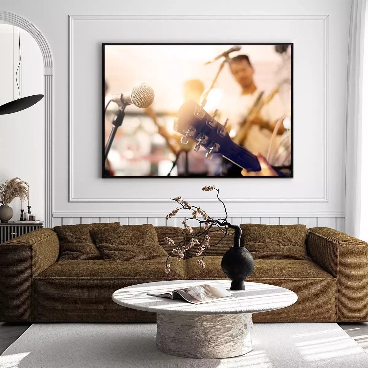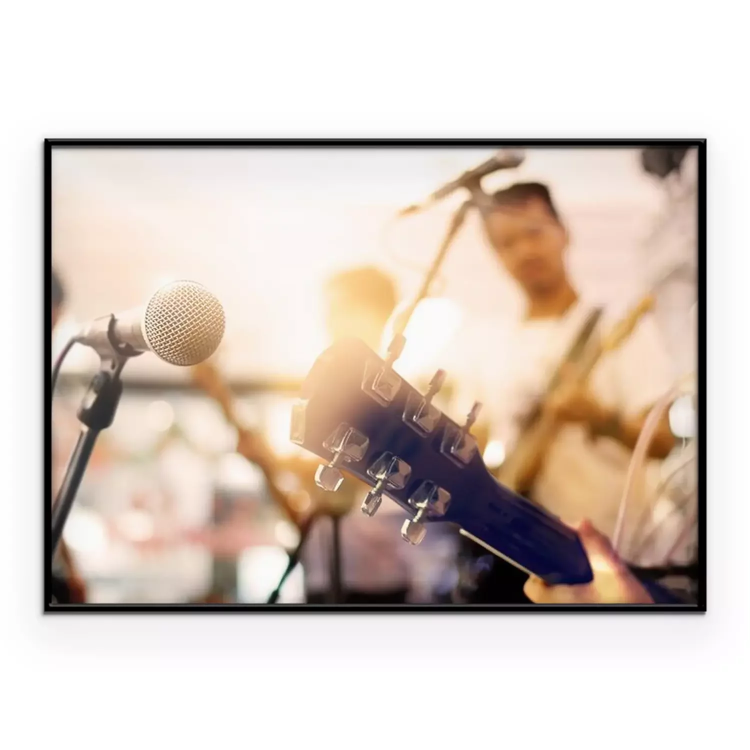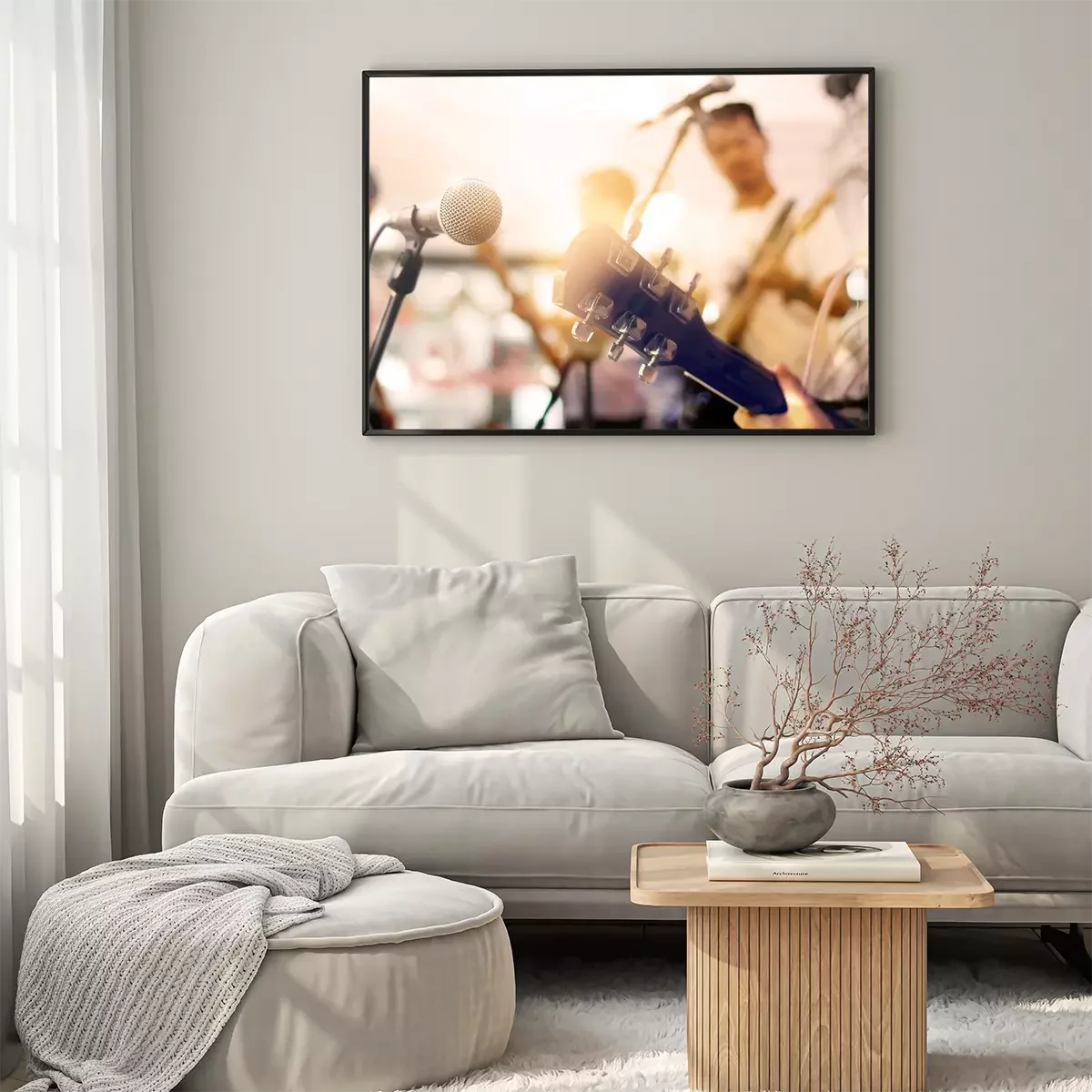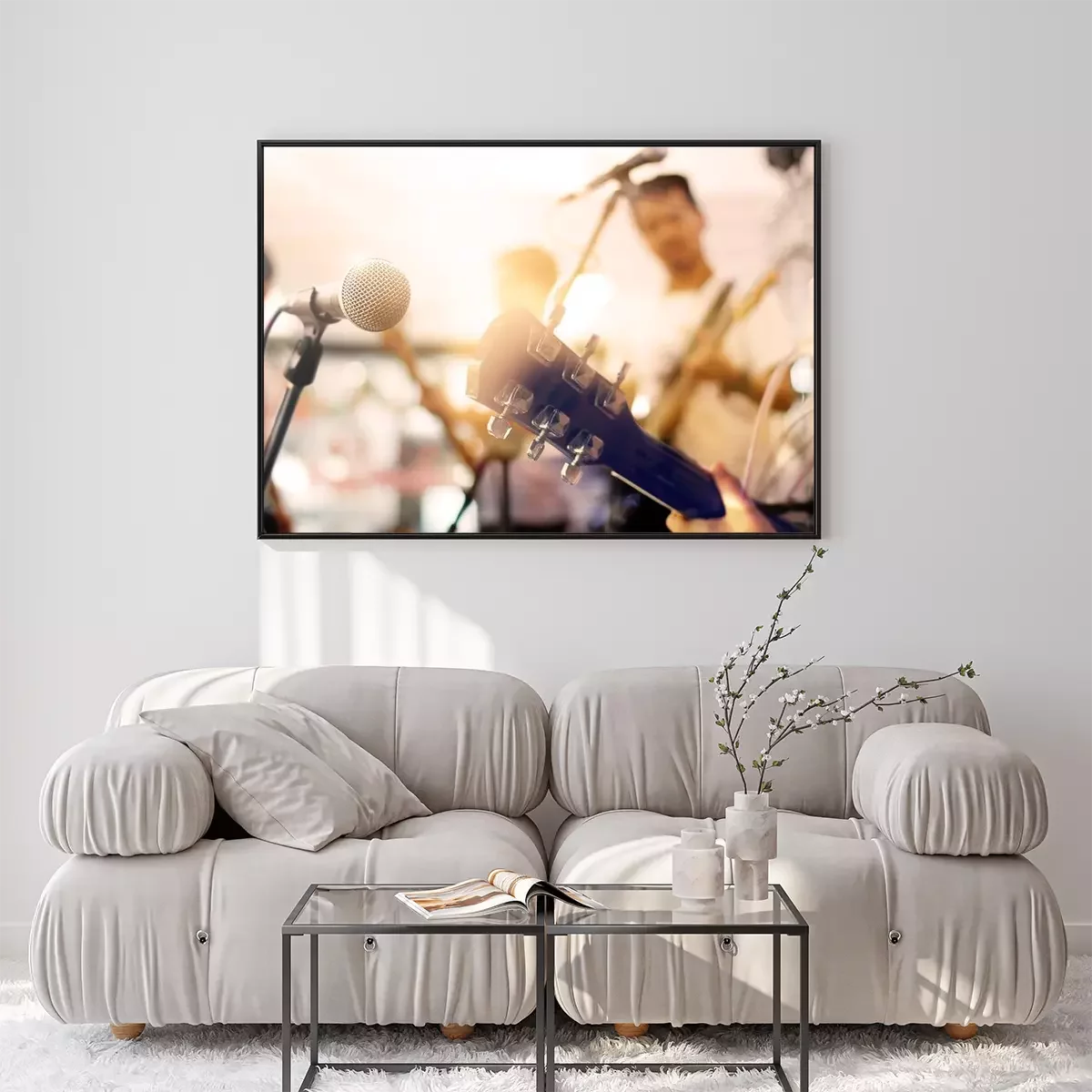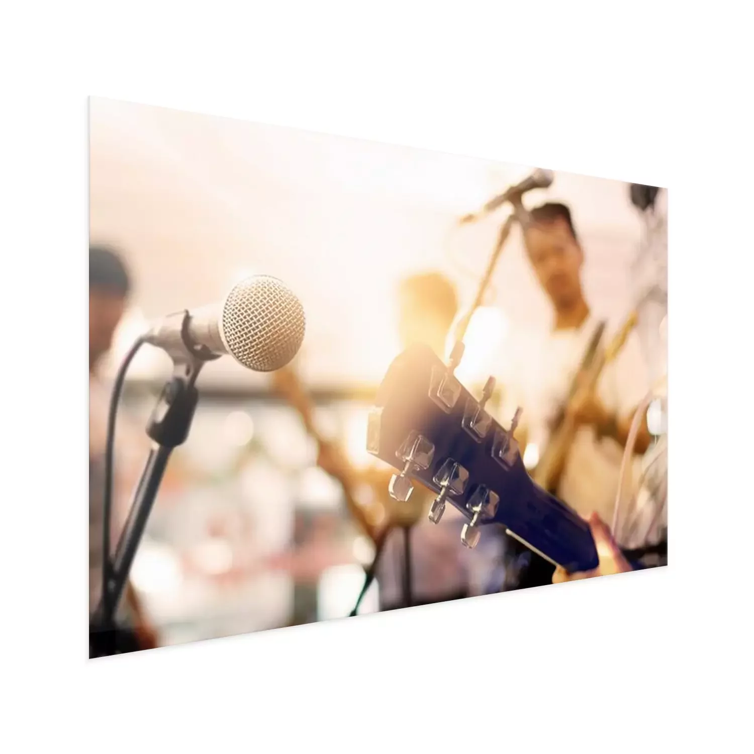Gitaristen op het podium voor achtergrond, zachte focus en vervagen concept