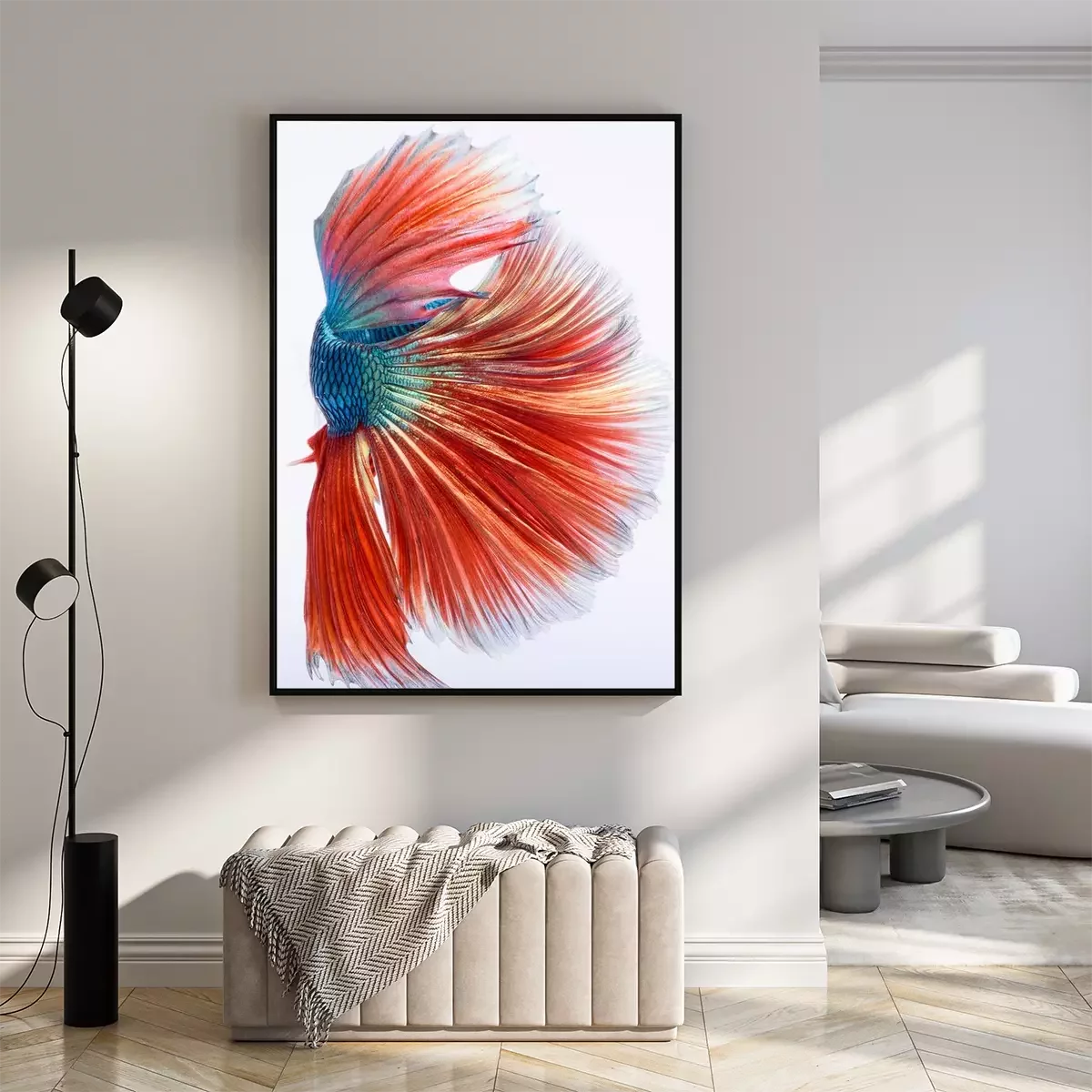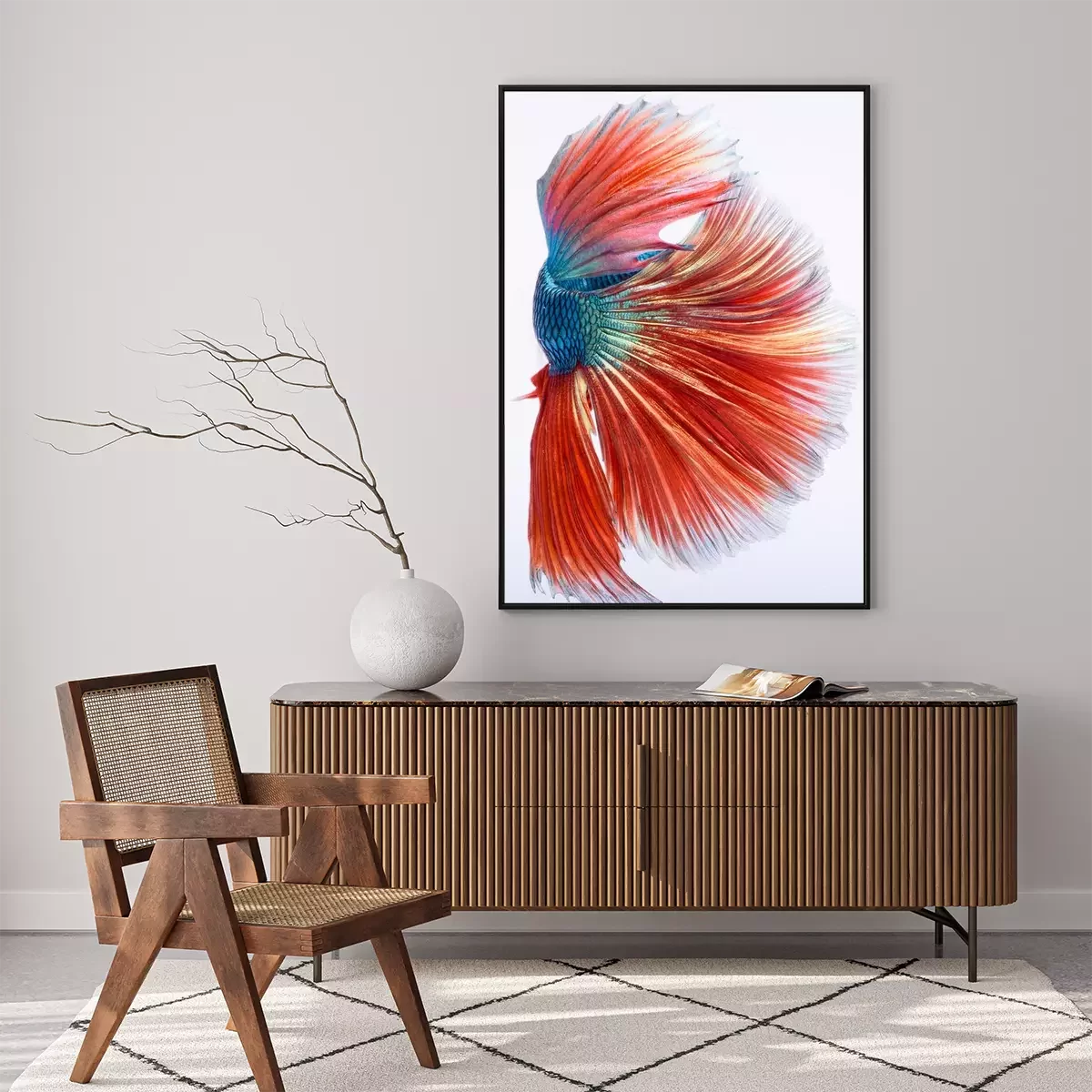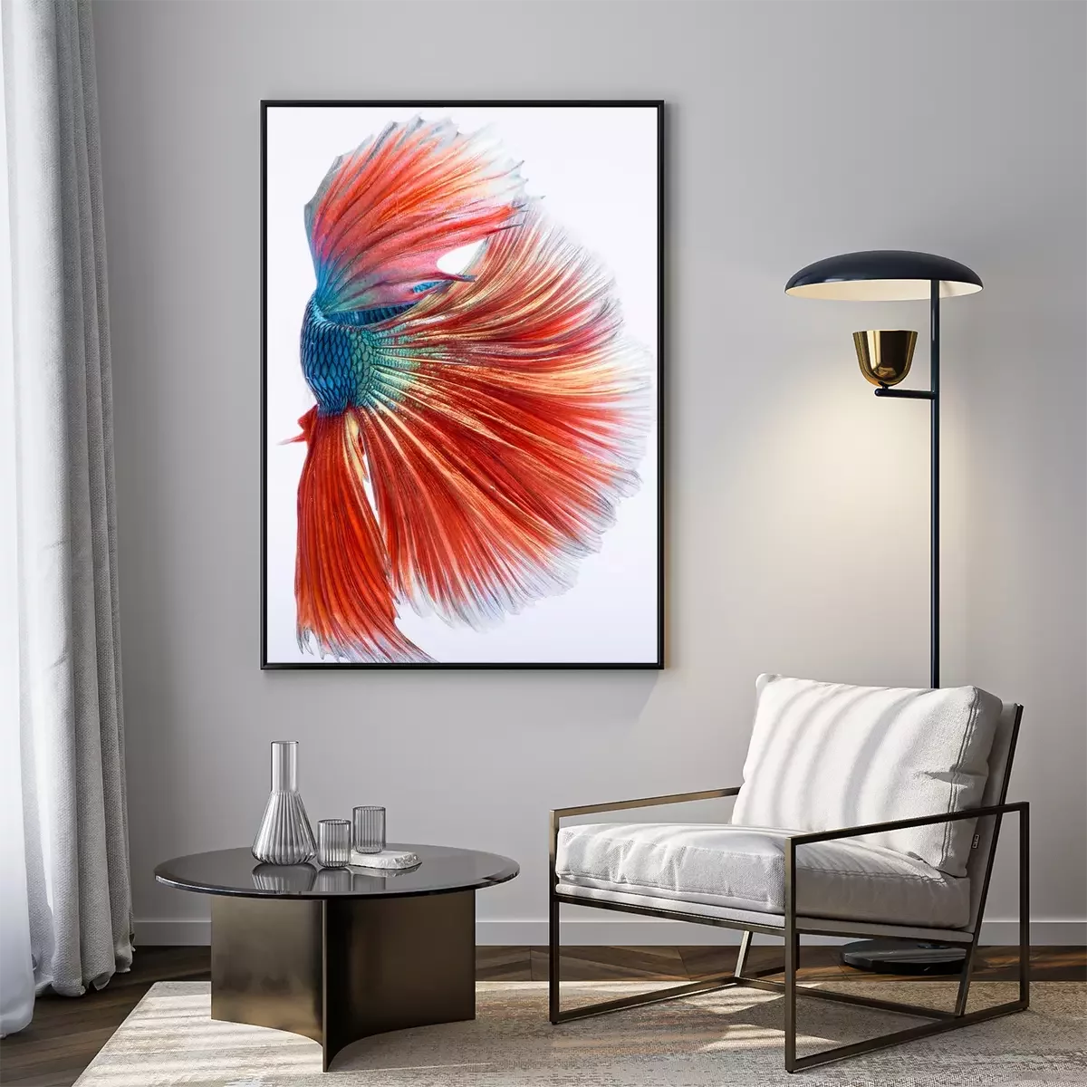Poster: Halfmoon betta vis, siamese vechten vis, Capture verplaatsen van vis, abstracte achtergrond van vissenstaart