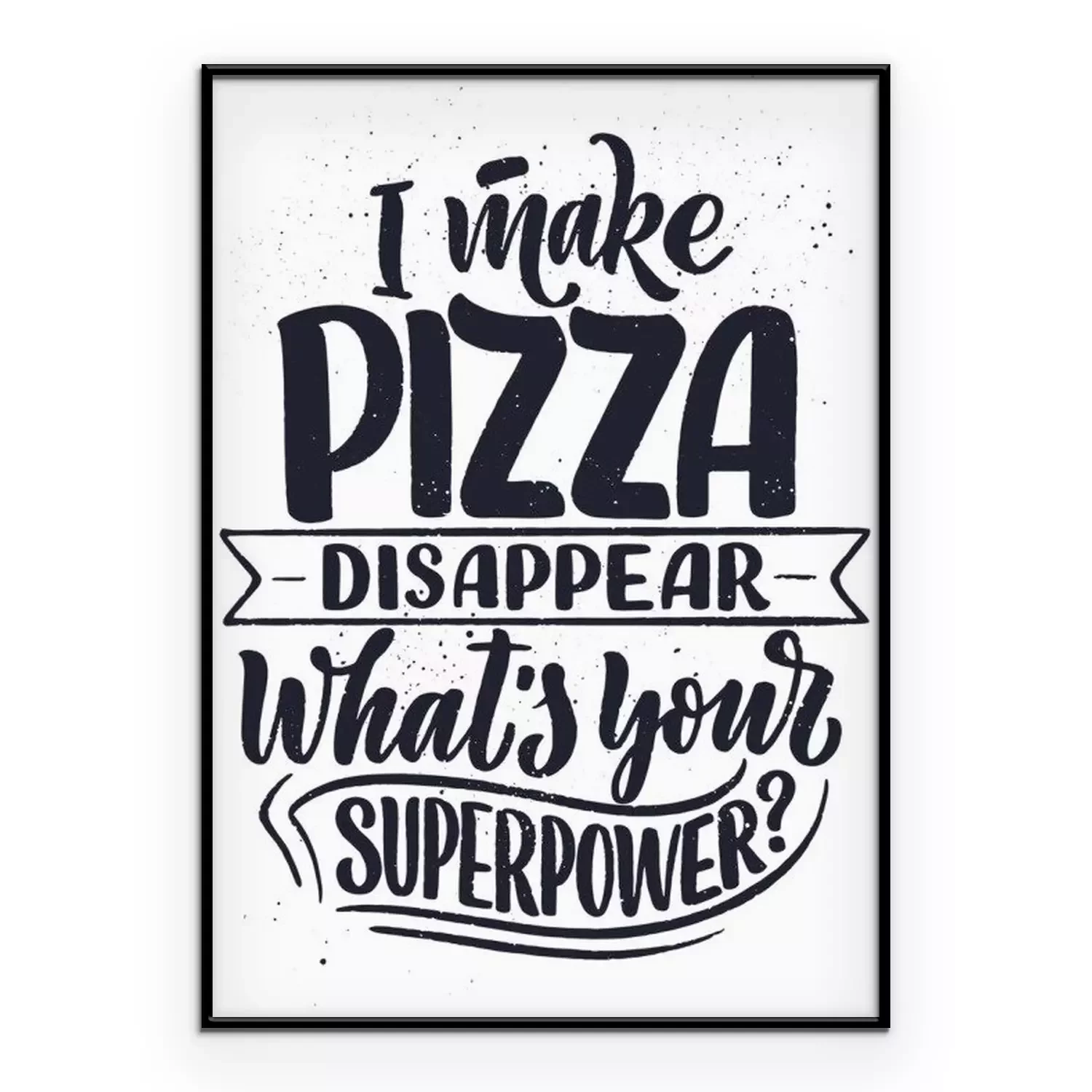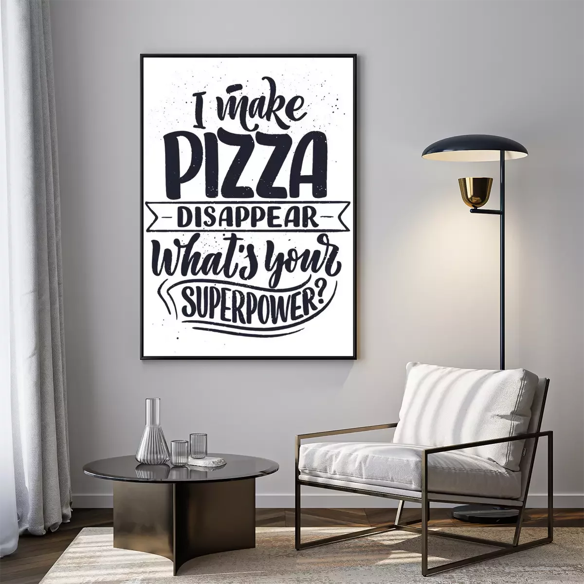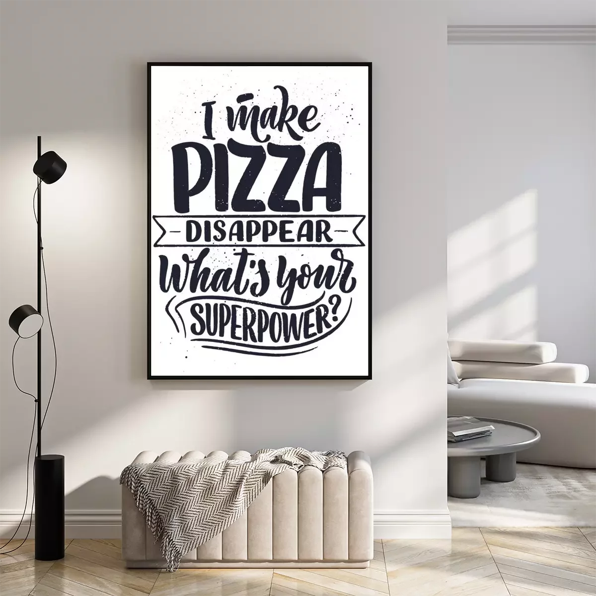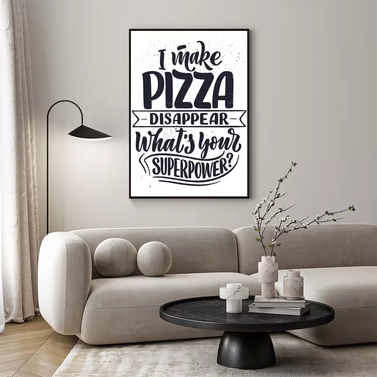 Poster: Hand drawn ettering quote about pizza. Typographic menu design. Poster for restaurant or print template. Funny concept. Vector