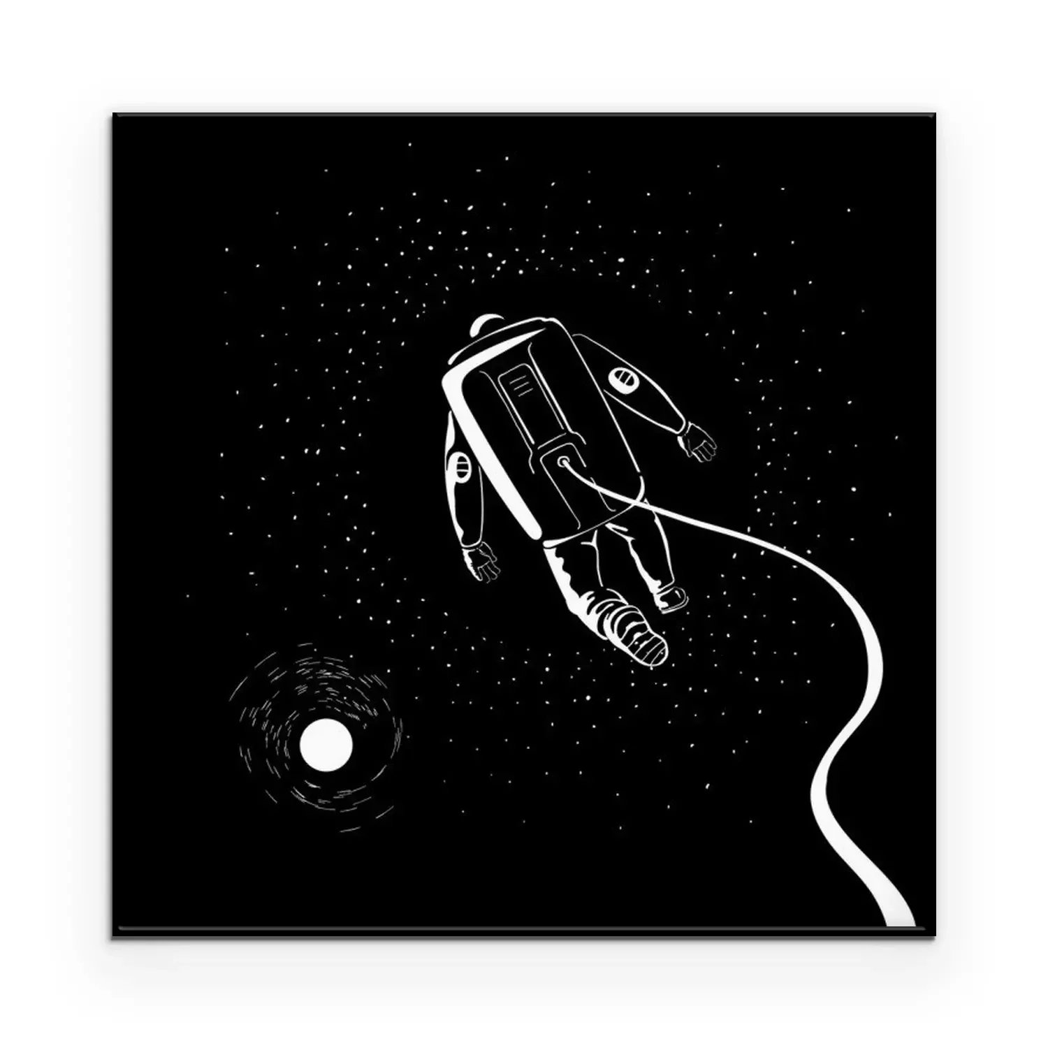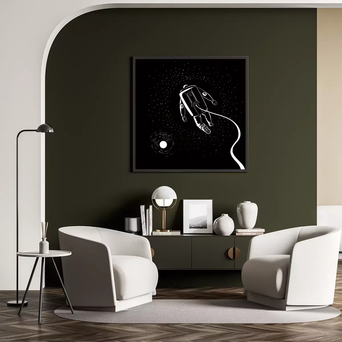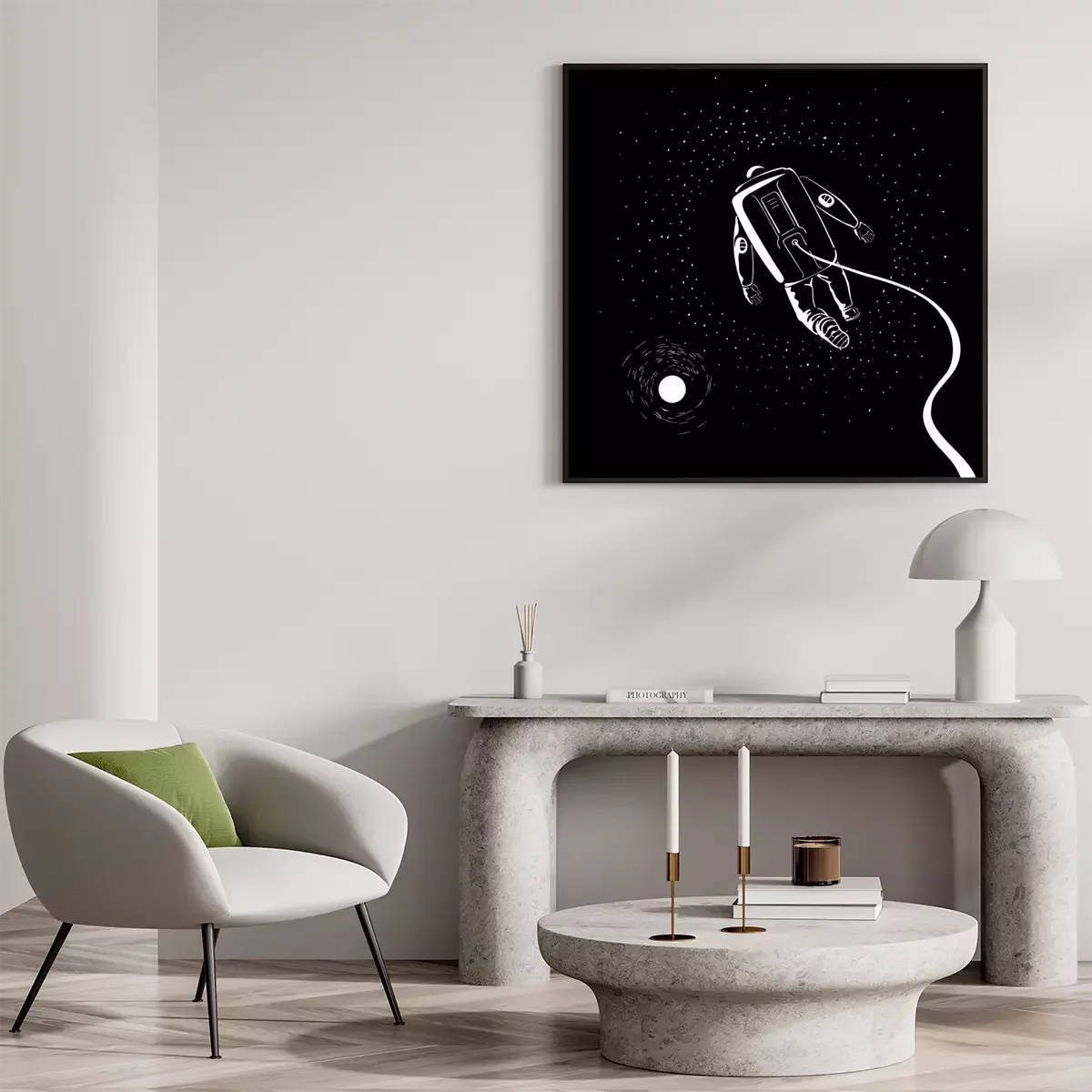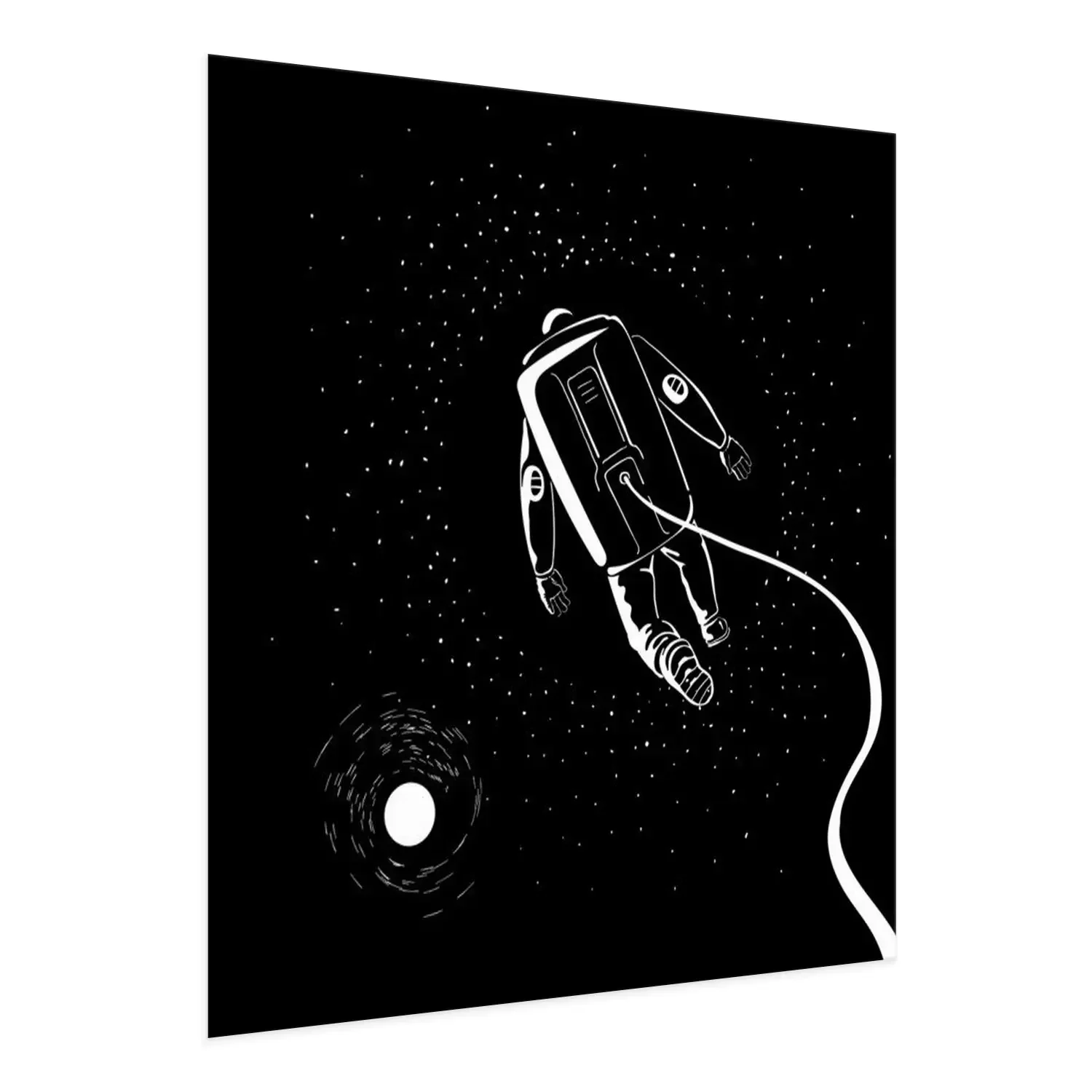 Poster: Hand drawn vector astronaut character. Spaceman wearing a space suit and flying in the cosmos