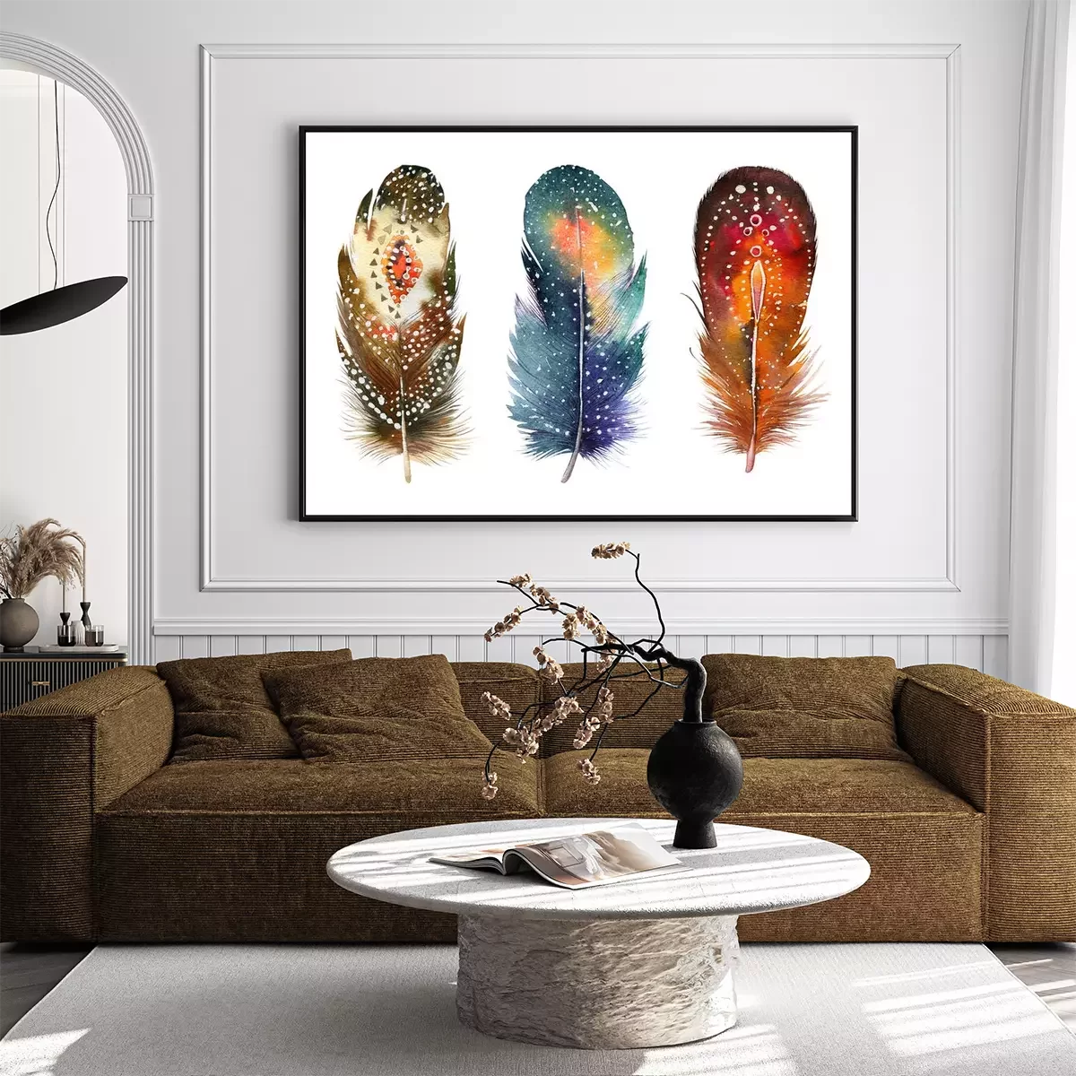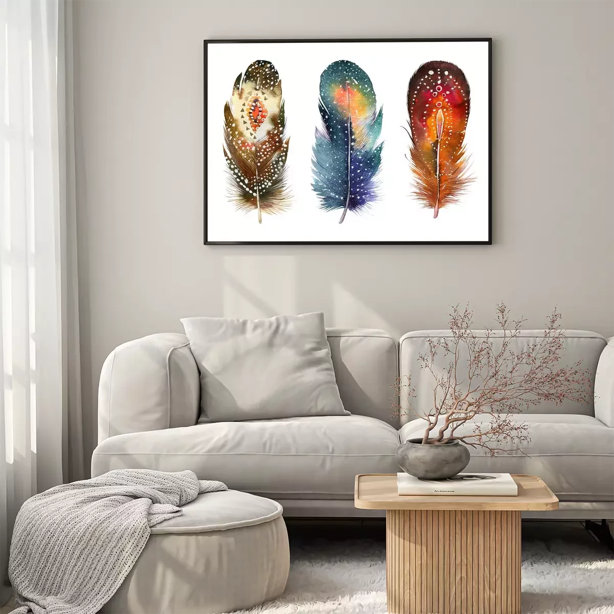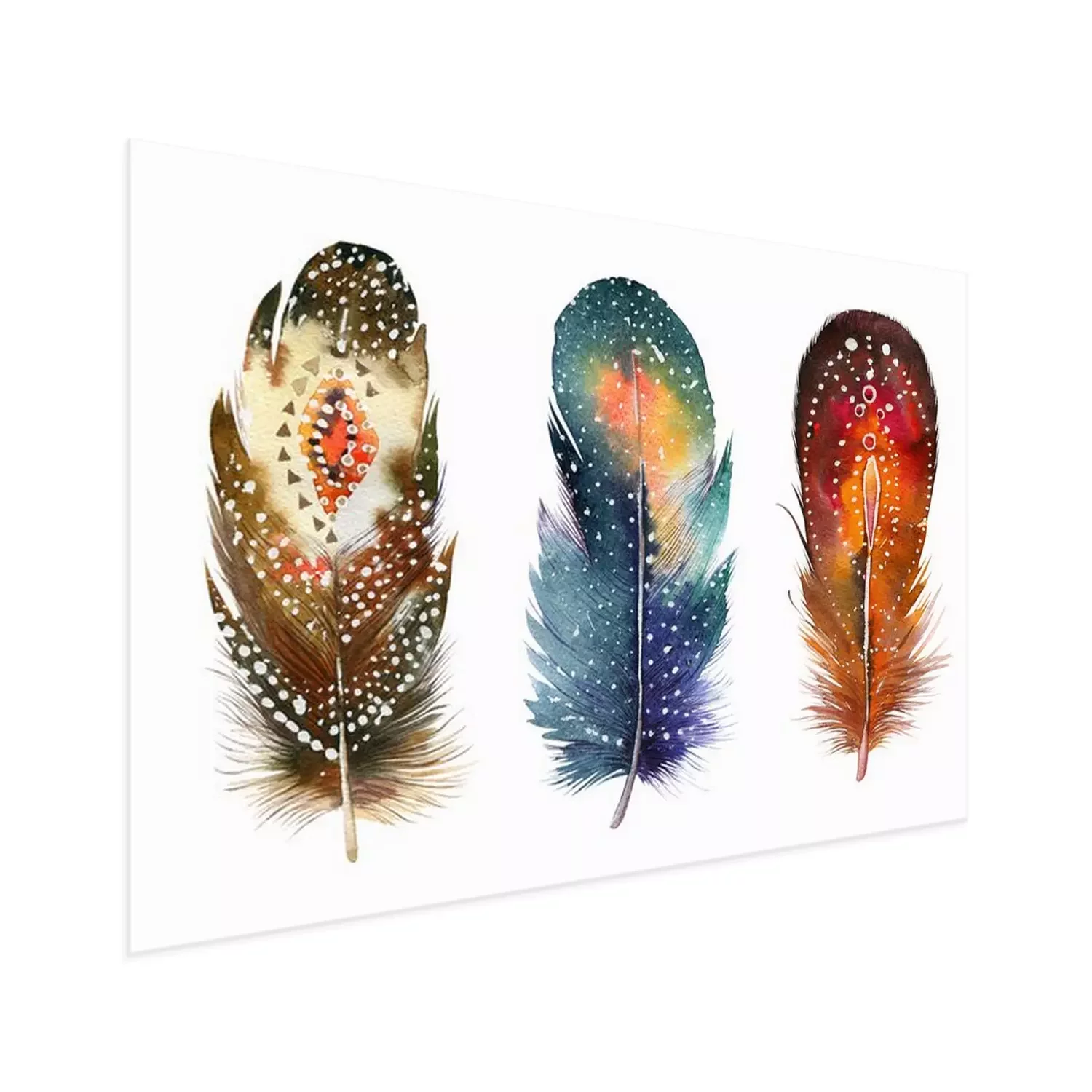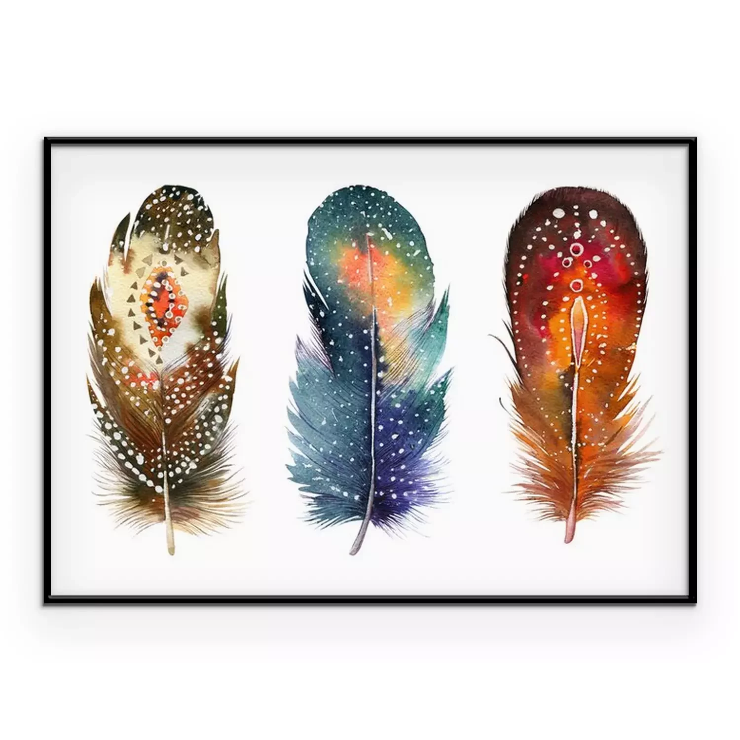 Poster: Hand drawn watercolor feather set. Boho style. illustration iso