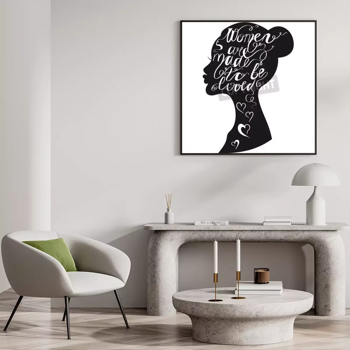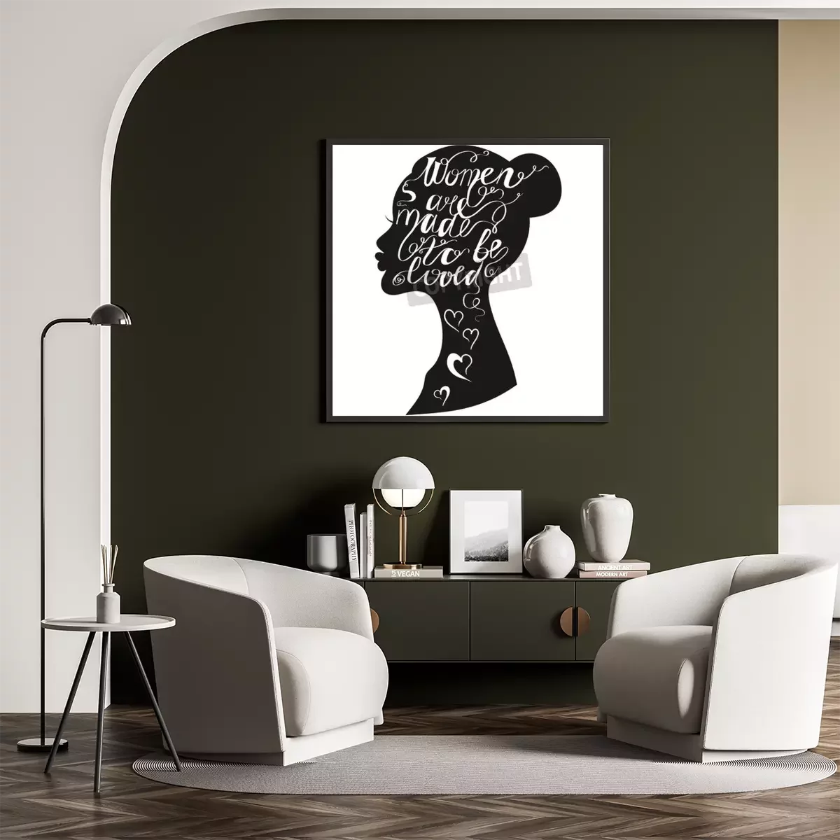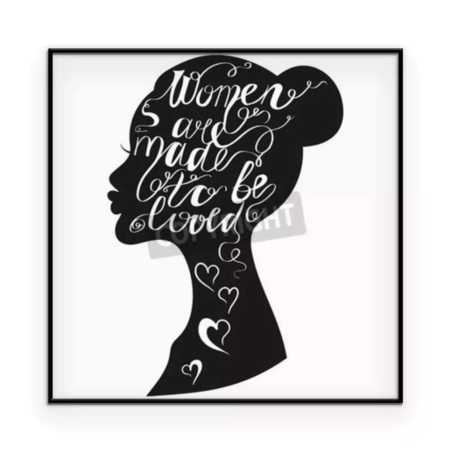 Poster: Hand getrokken romantische typografie poster. Mooi citaat Vrouwen zijn gemaakt geliefd worden geïsoleerd meisje silhouet. Kalligrafie letters vector illustratie voor het redden dag of gift.