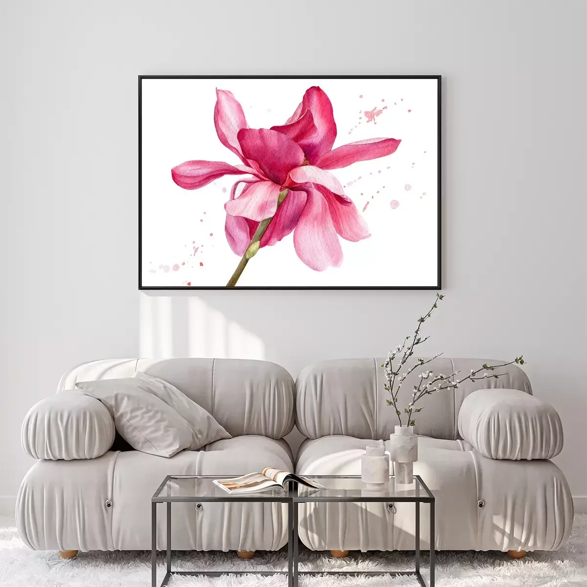 Poster: Handgetekende aquarel magnolia op een witte achtergrond