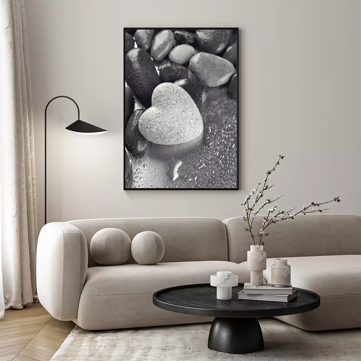 Poster Hartsteen blootgesteld tegen de achtergrond van zwarte stenen