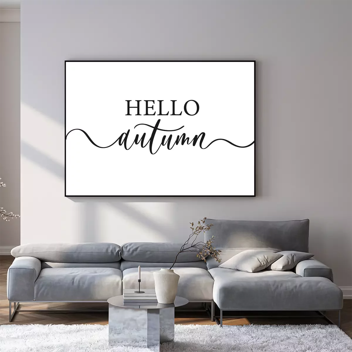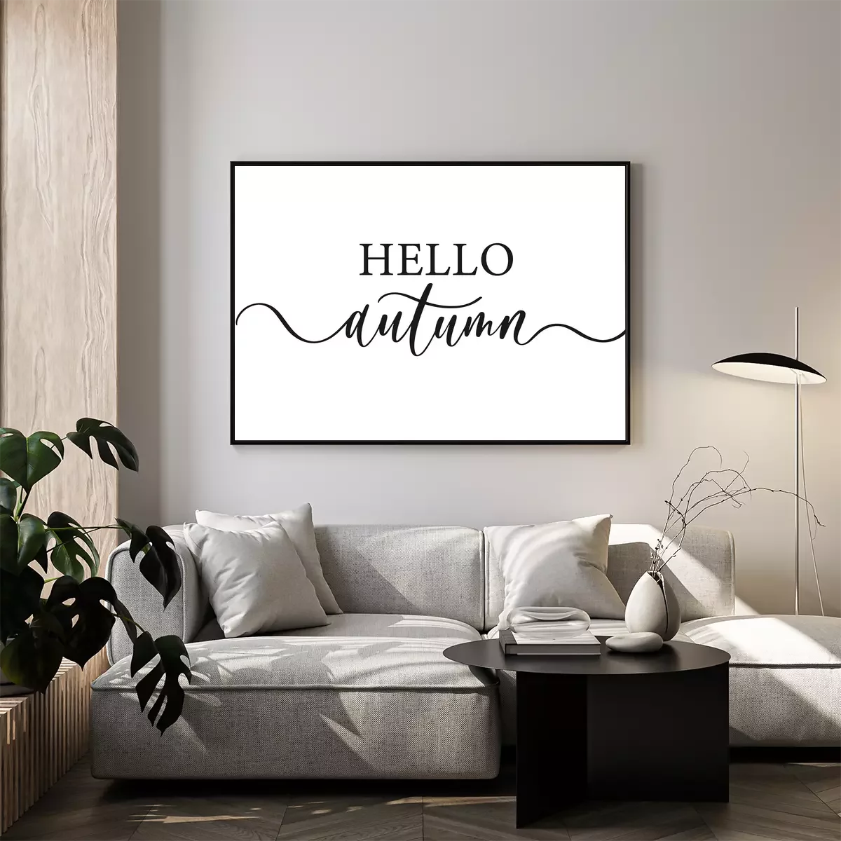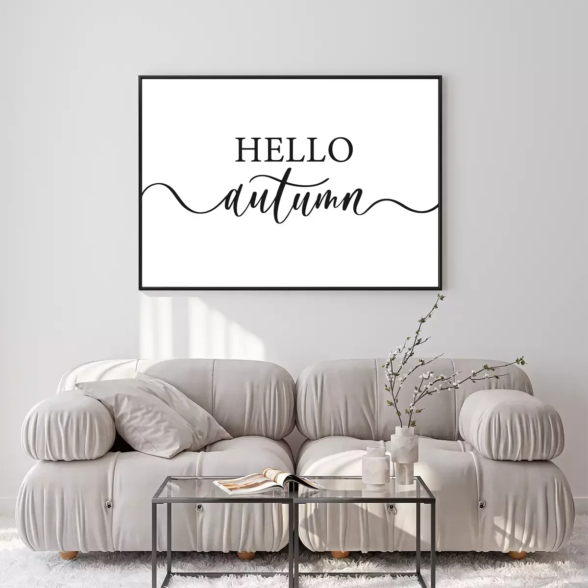 Poster: Hello autumn inscriptie op een witte achtergrond