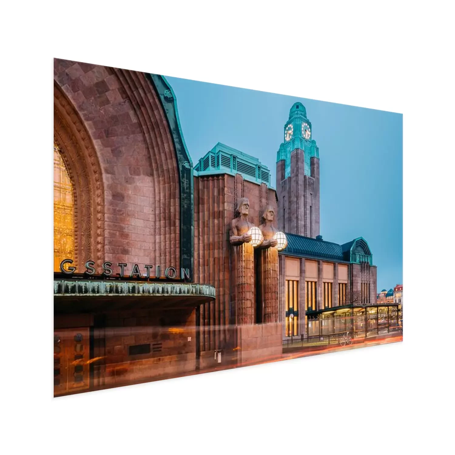 Poster: Helsinki, Finland. Nacht uitzicht op standbeelden op toegang tot Helsinki