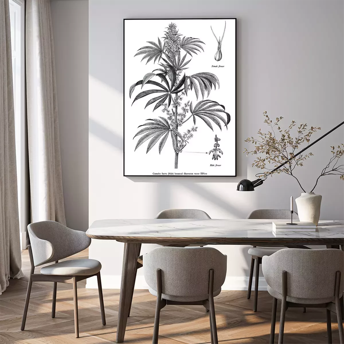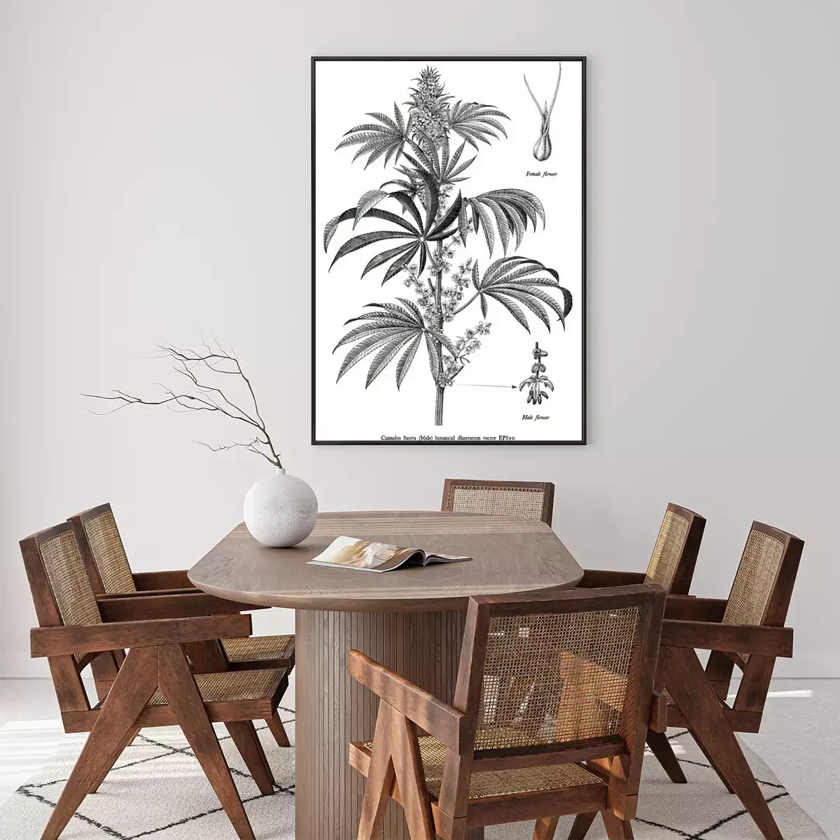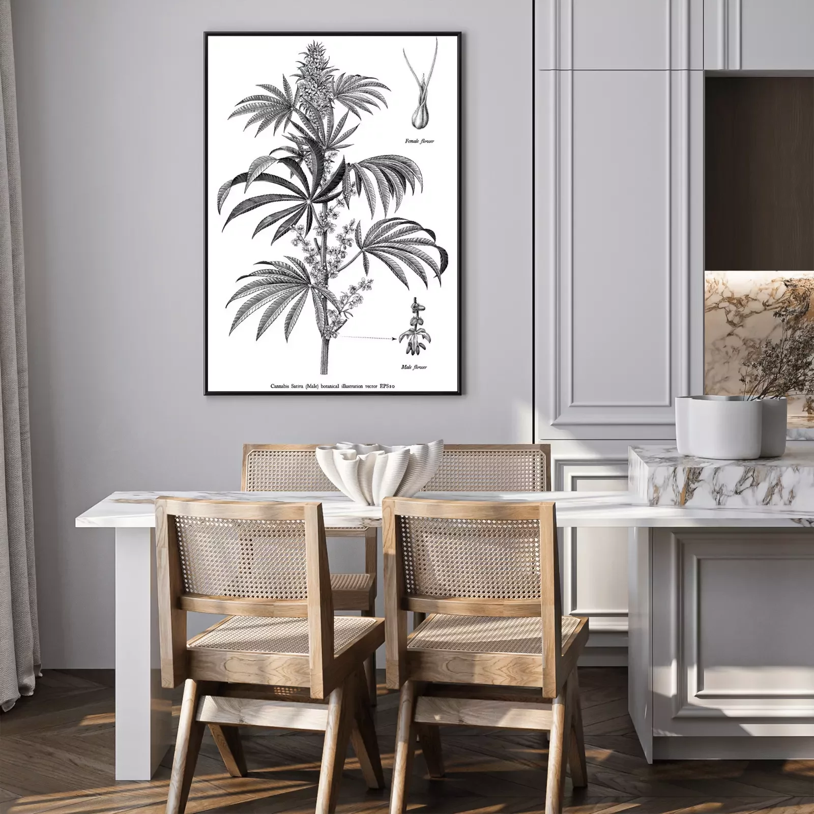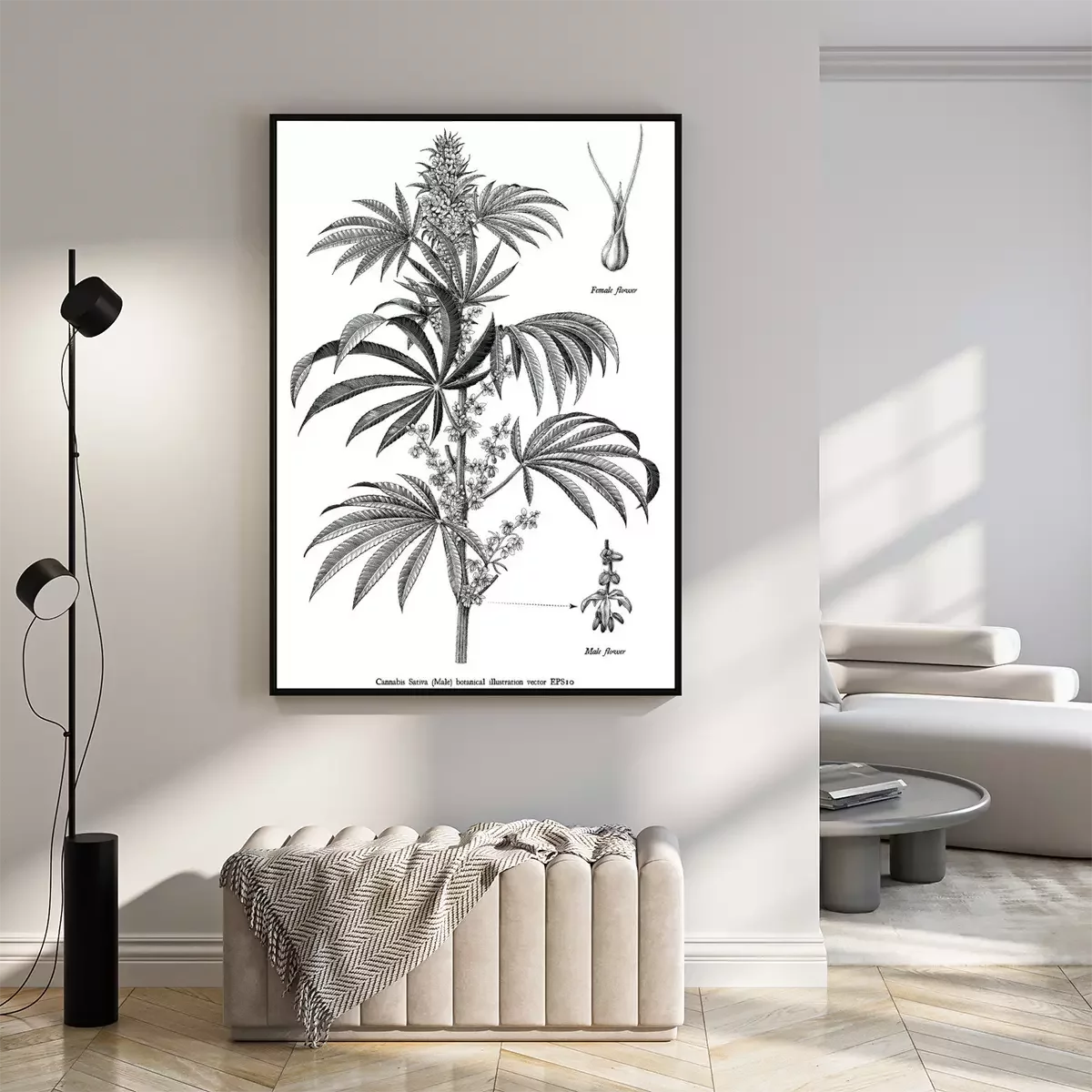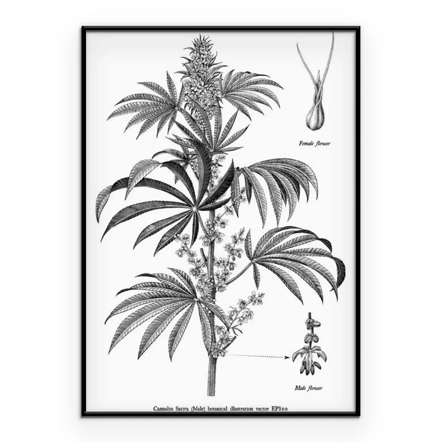 Poster: Hennep tak schets uit een natuurlijke atlas