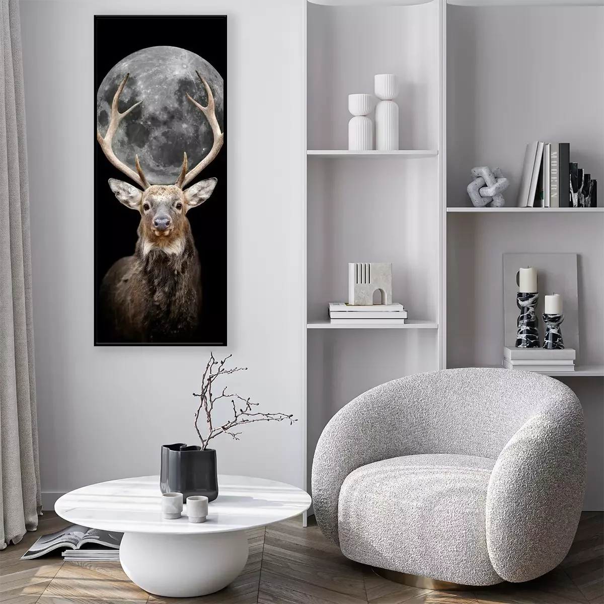 Poster: Hert met maan op zwarte achtergrond