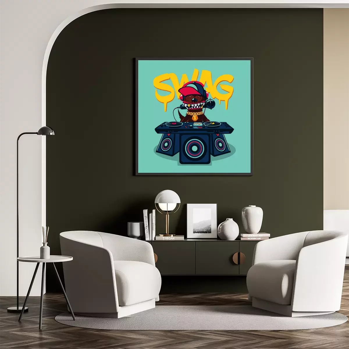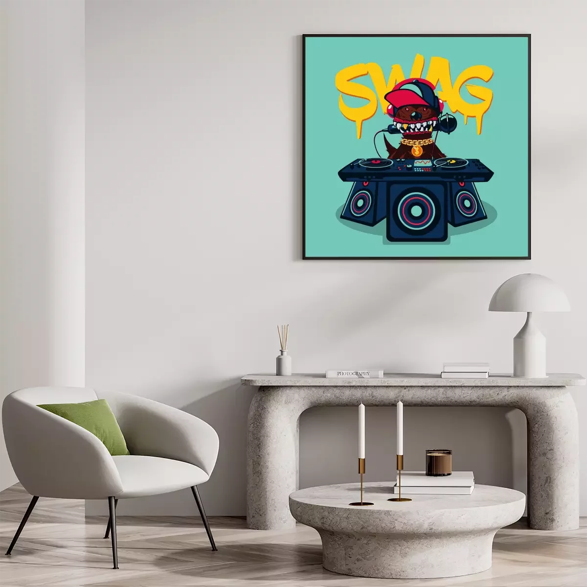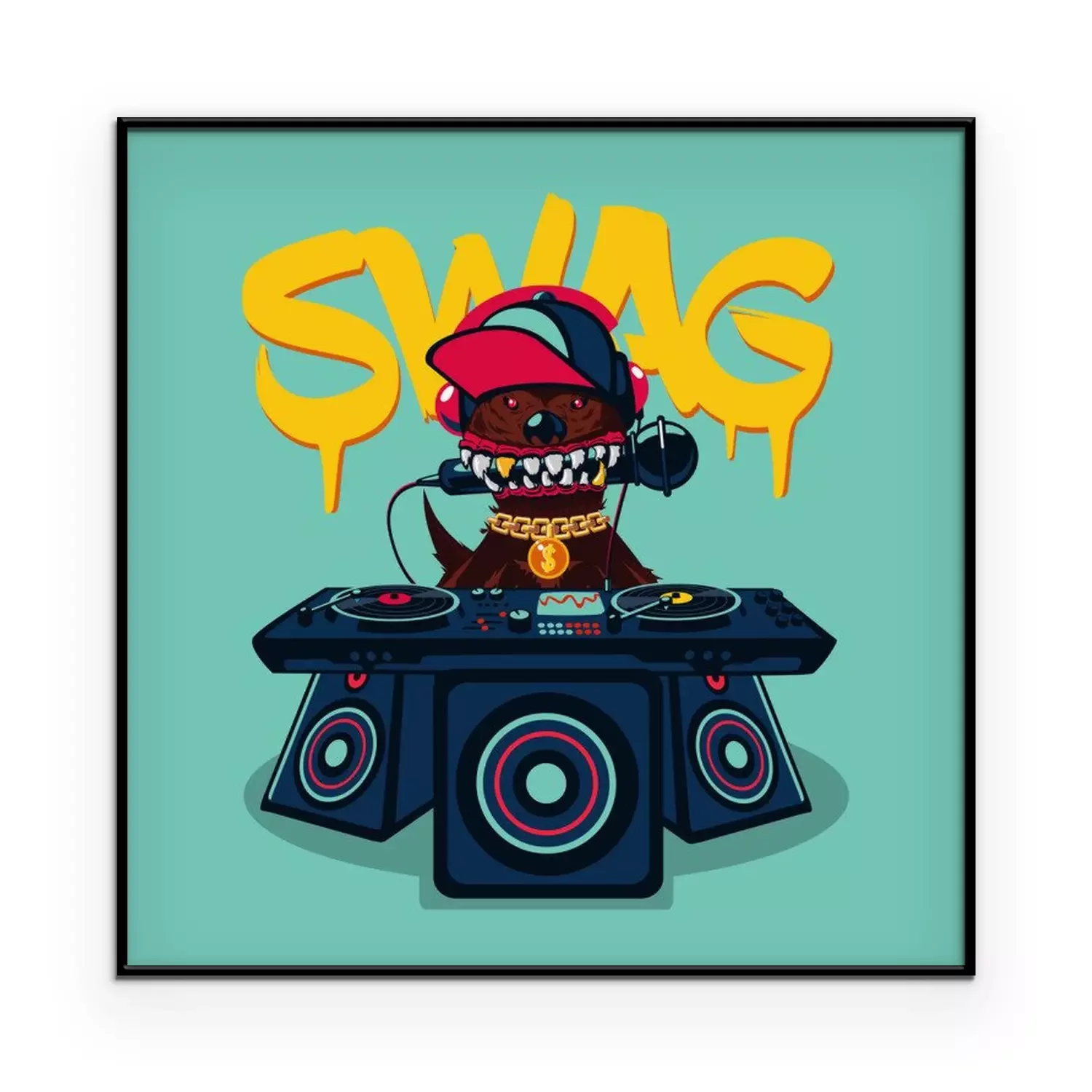 Poster: Hip-hop poster with dog. Rap music, swag culture. Urban street style.