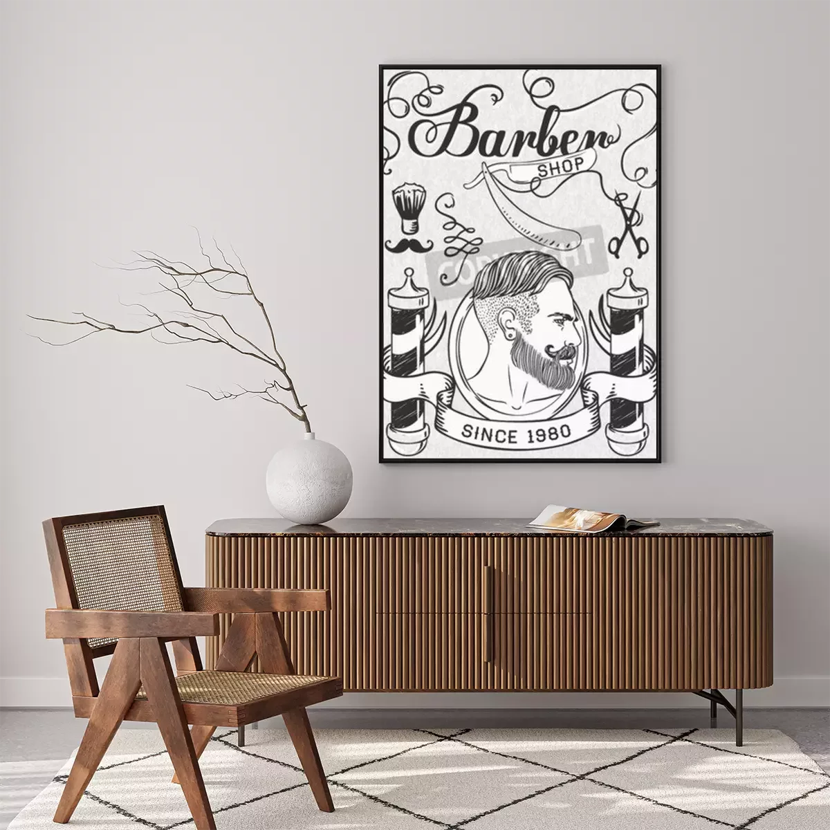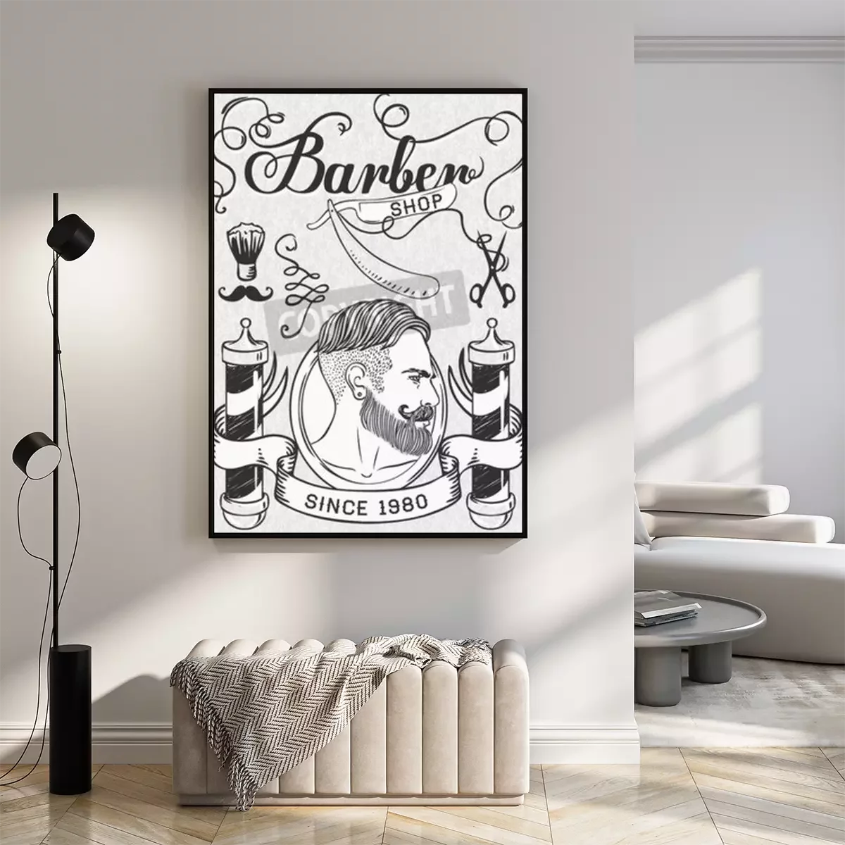 Poster: Hipster Barber Shop Business Card ontwerpsjabloon. Vector illustratie.