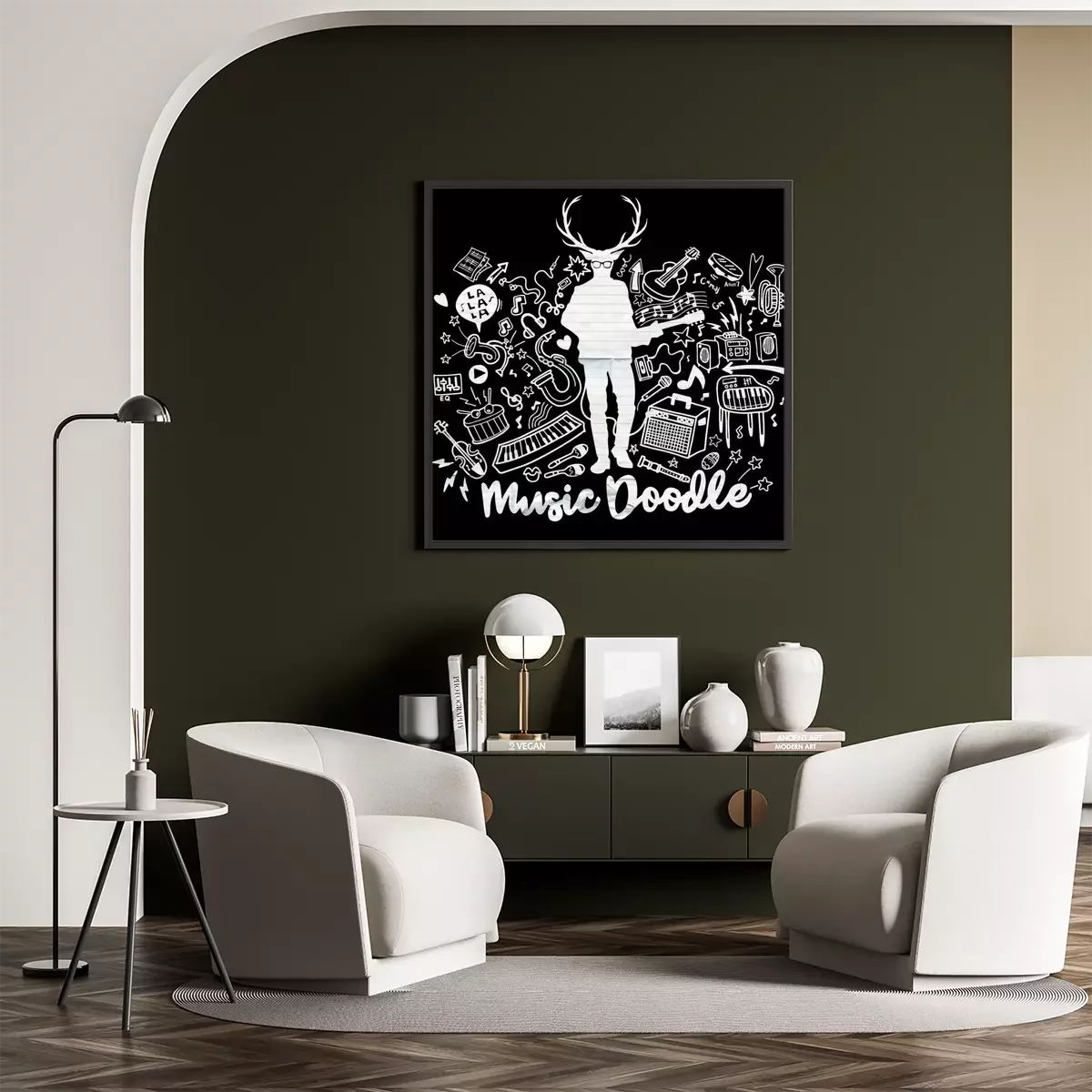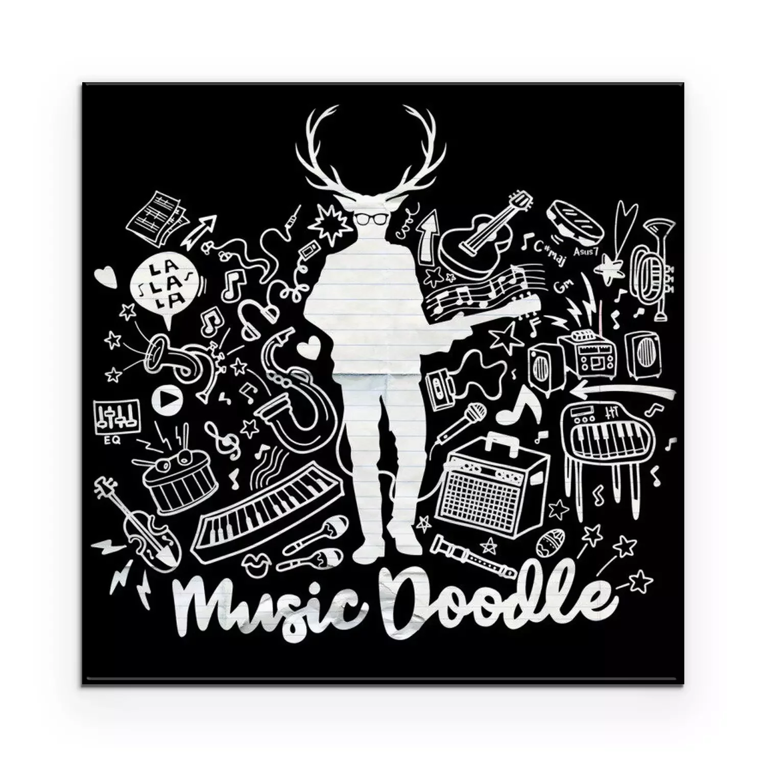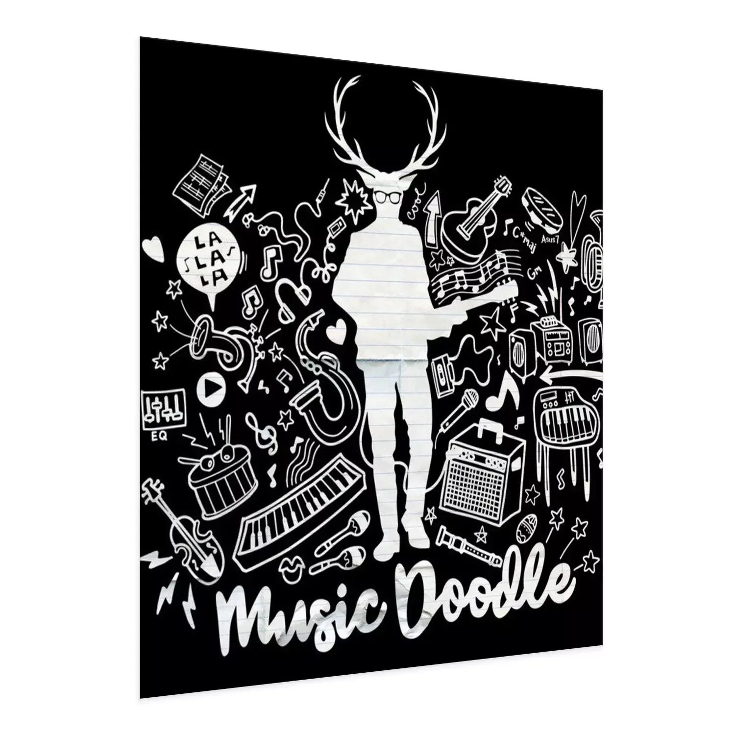 Poster: Hipster herten met gitaar en koele oogbril. Hand tekening Doodle, vectorillustratie.
