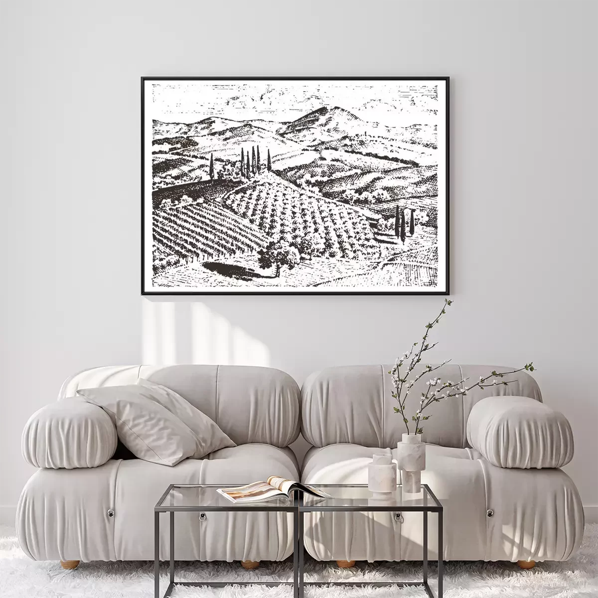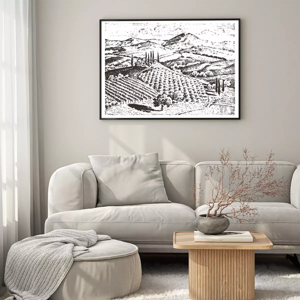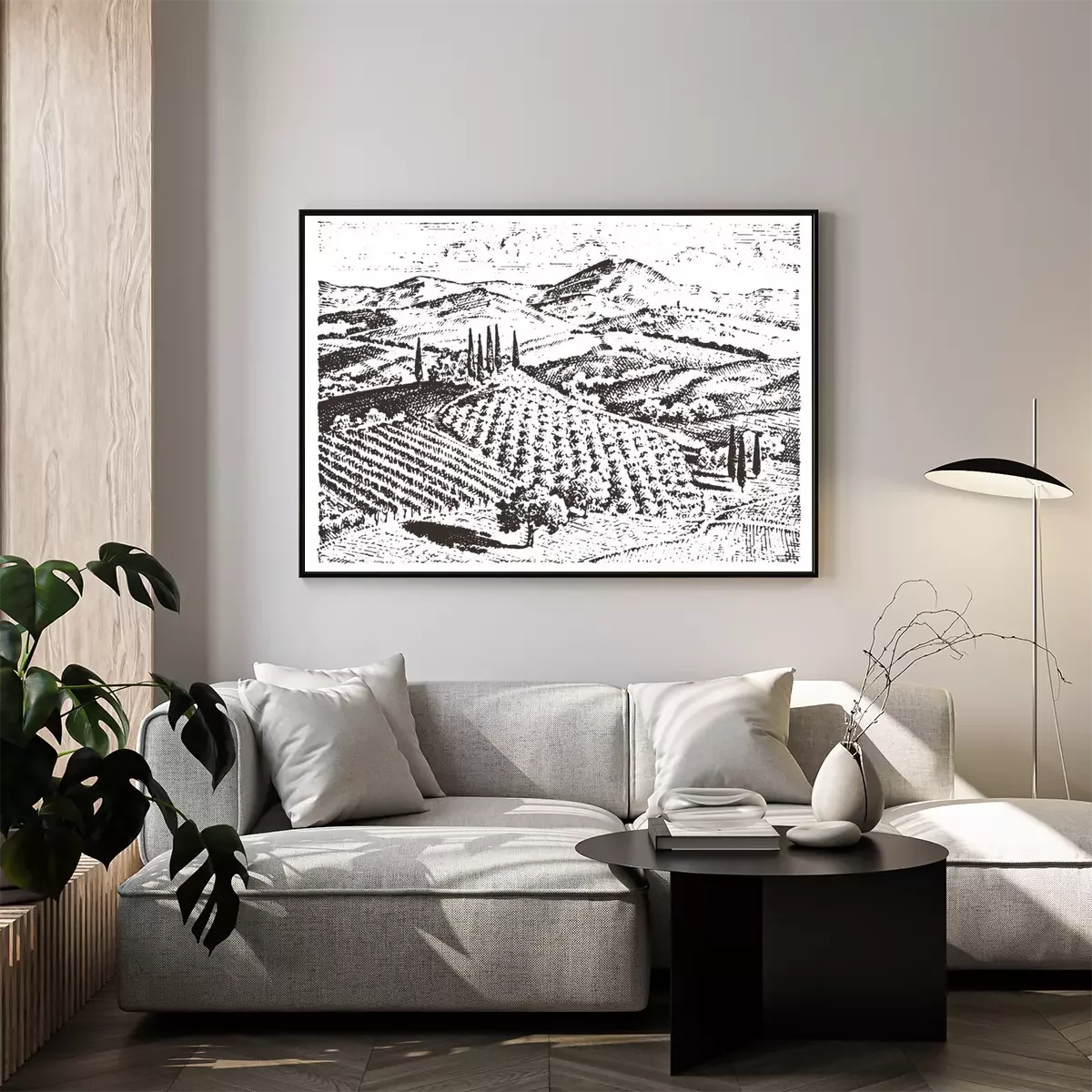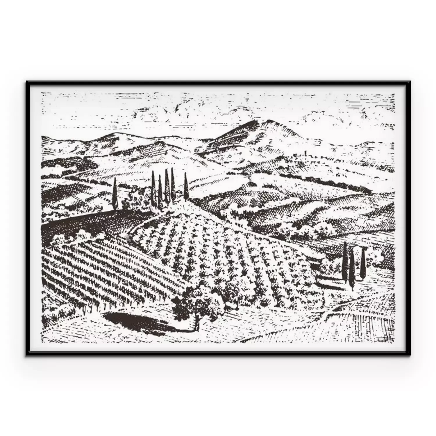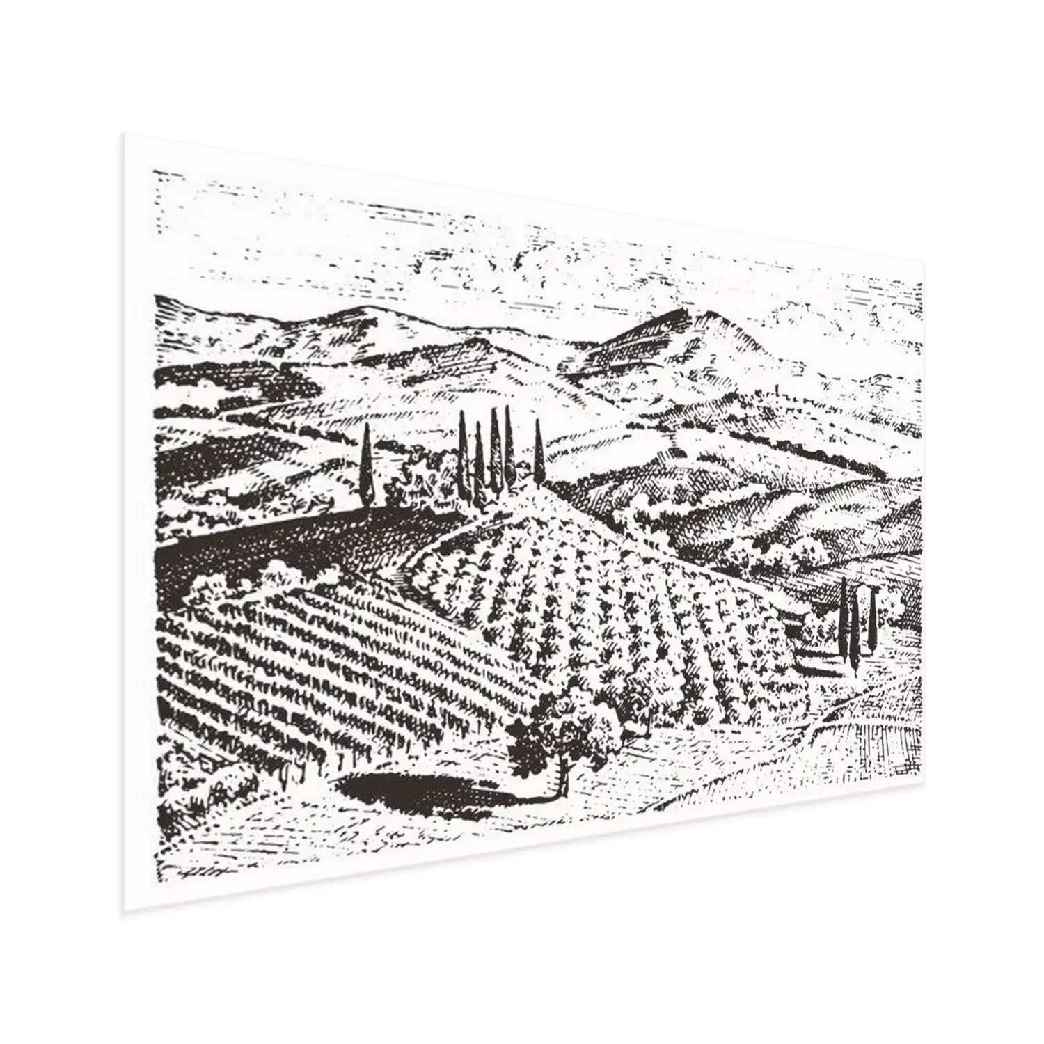 Zwart-wit tekening van Toscane