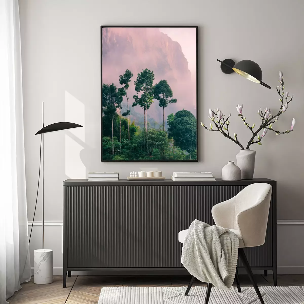 Poster: Hoge bomen tegen de achtergrond van de jungle