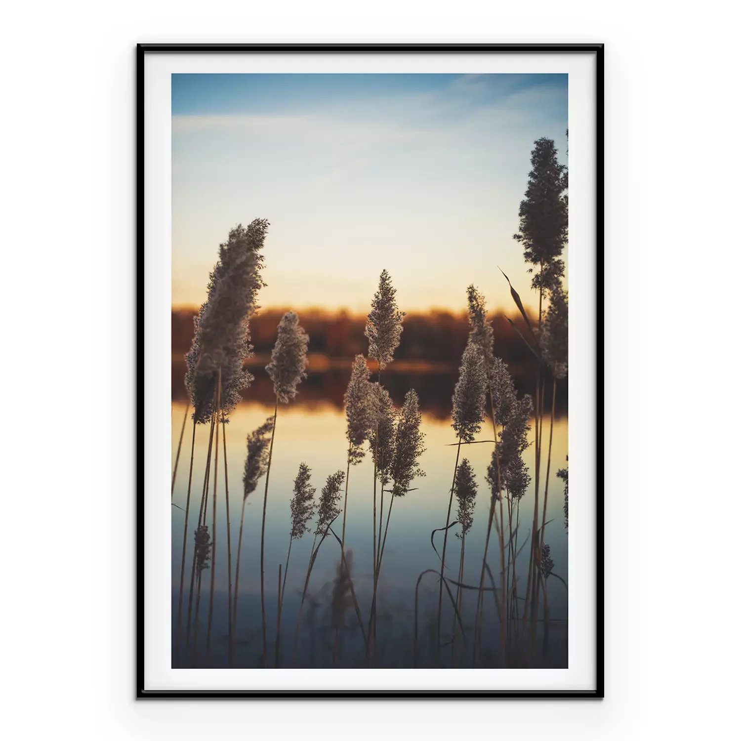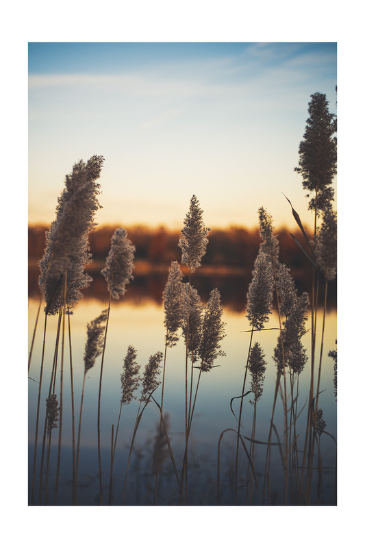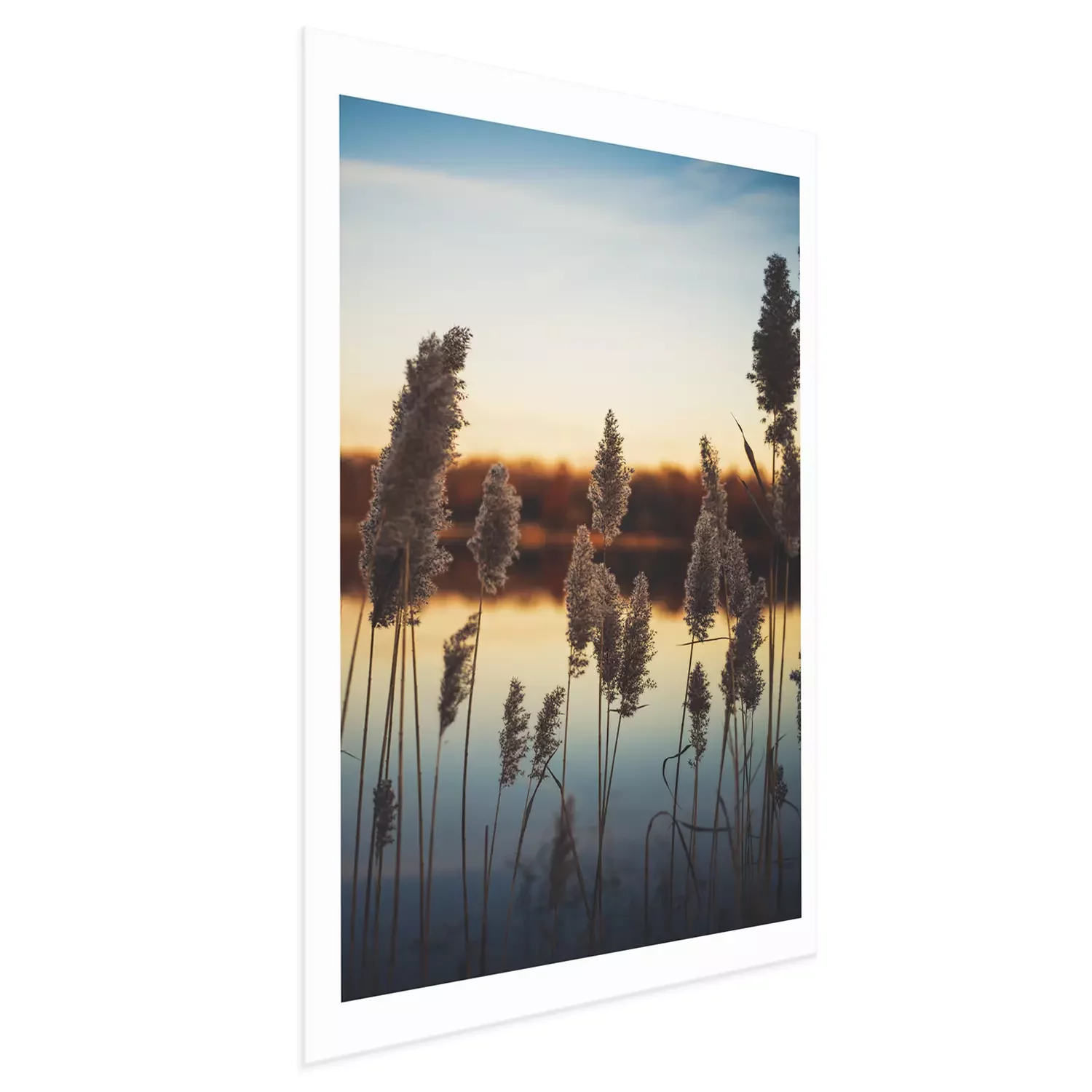 Poster: Hoge grassen tegen de achtergrond van de zonsondergang