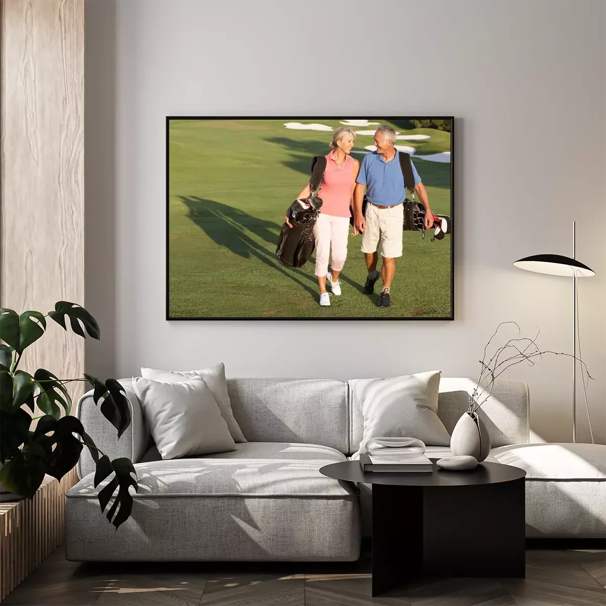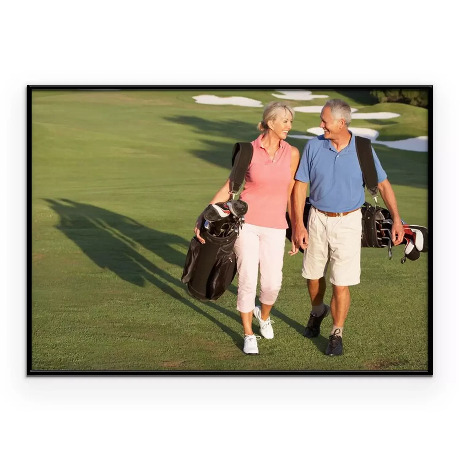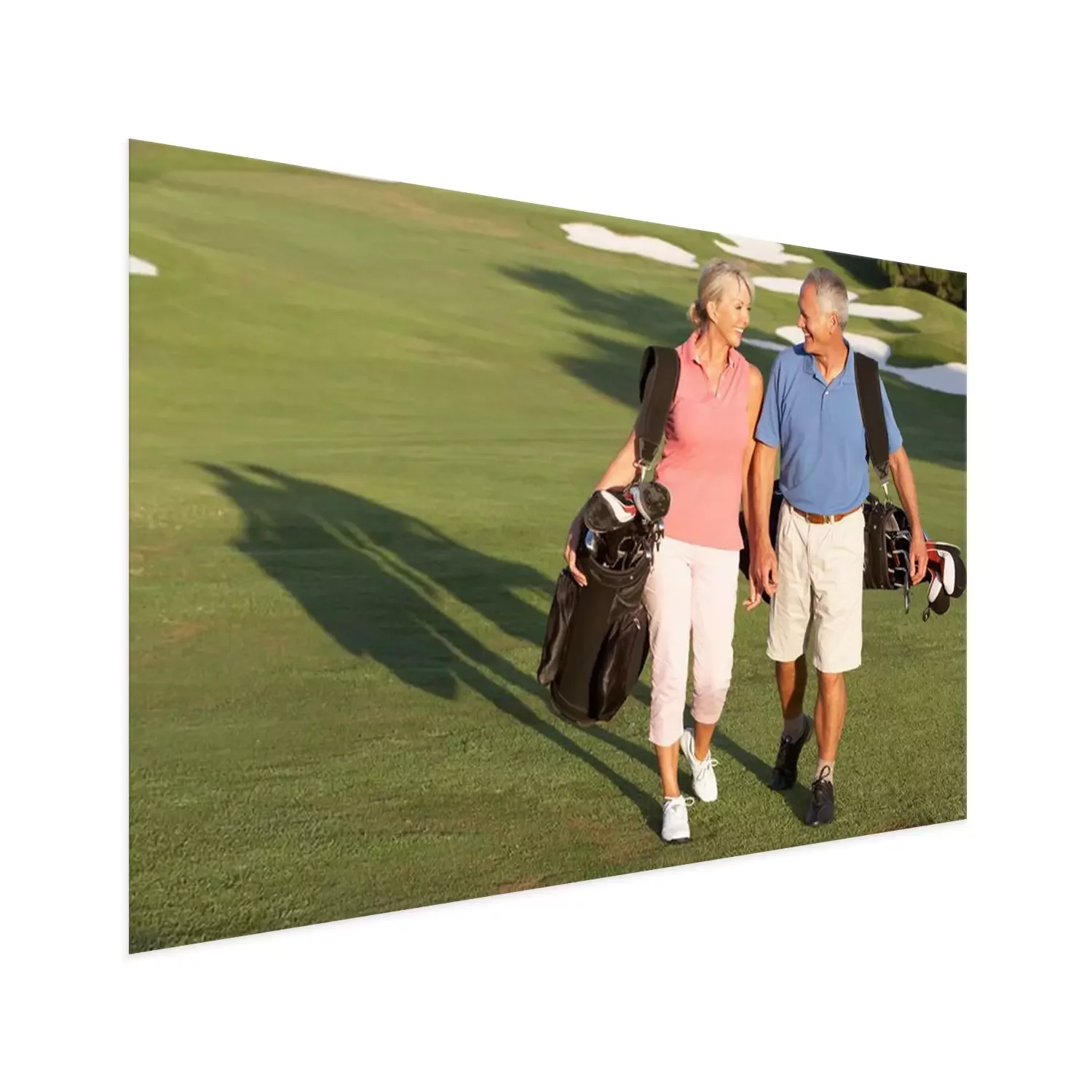 Poster Hoger paar dat langs Golfbaan draagtassen