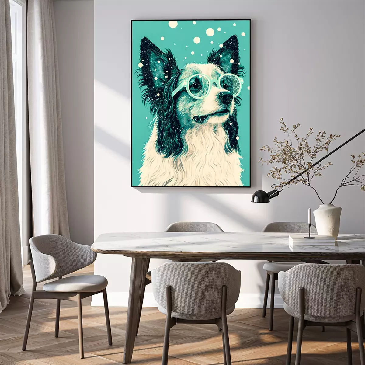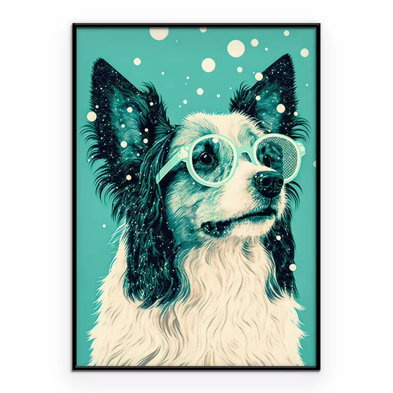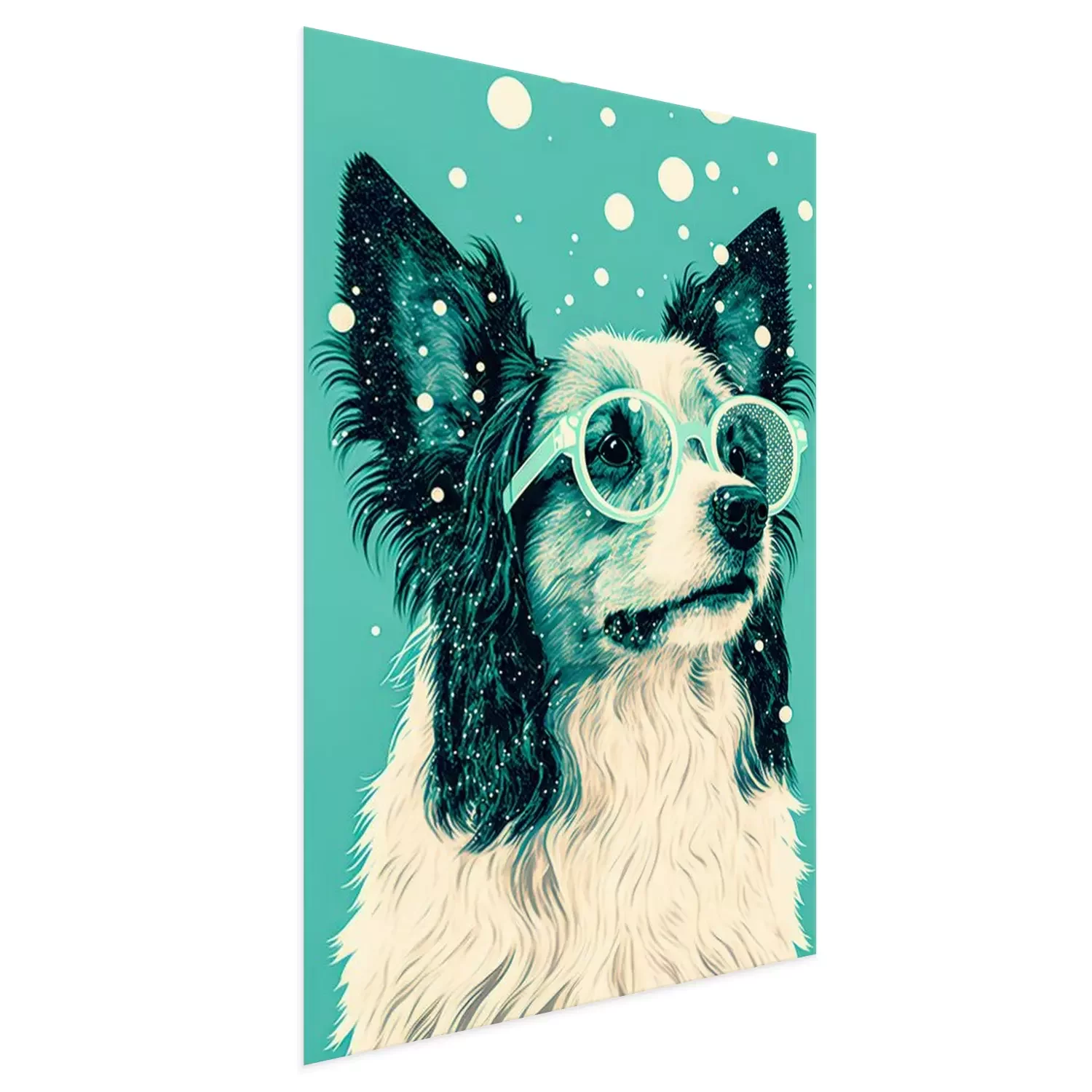 Poster: Hond met bril op een groene achtergrond