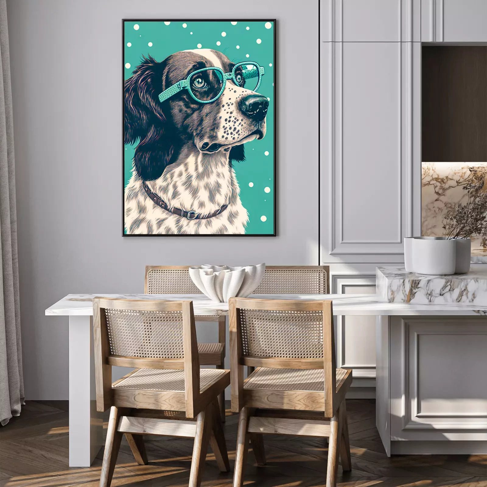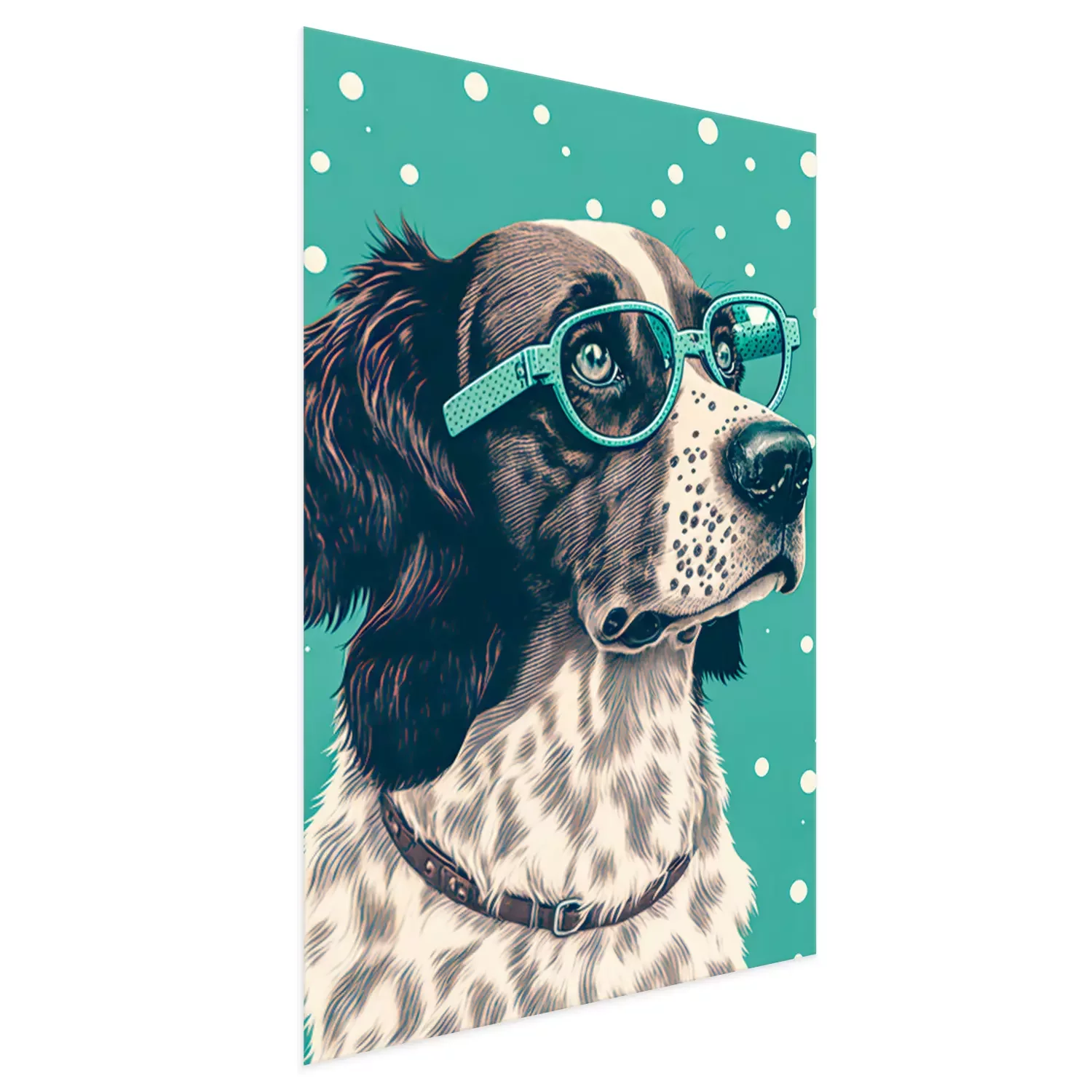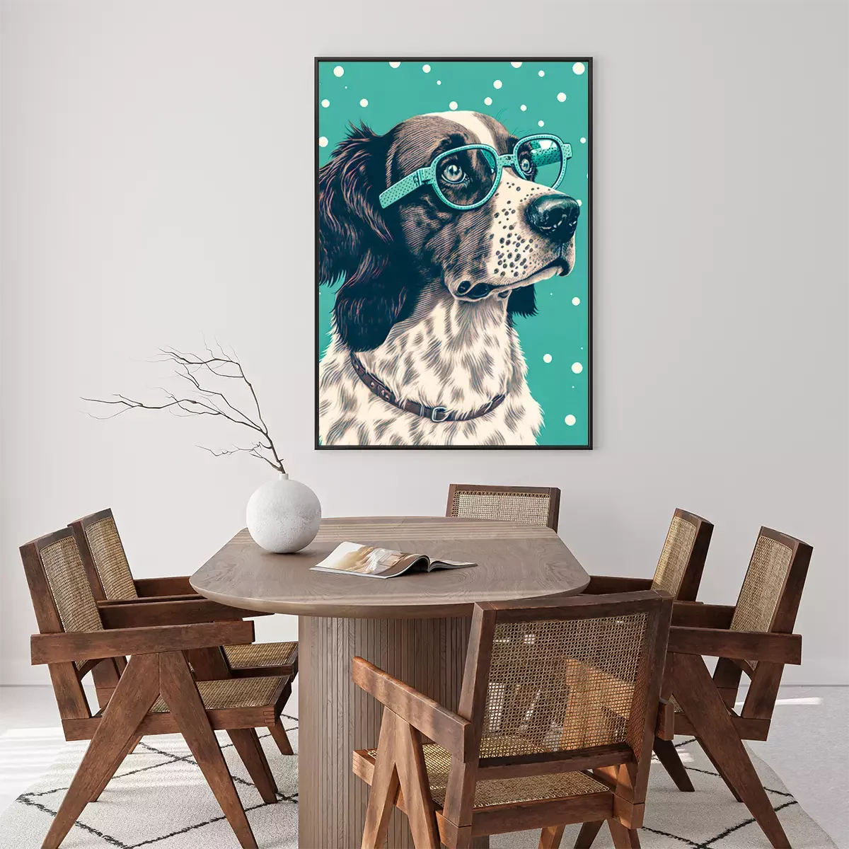Wie is de beste vriend van de mens? Natuurlijk, de hond! Een hondenposter met een schattige viervoeter is de ideale oplossing voor alle liefhebbers van deze dieren. Hoewel het lijkt alsof posters met honden vooral bedoeld zijn voor de kinderkamer of tienerkamer, omdat de ontwerpen vaak een vrij kinderlijk karakter hebben, is dat in dit geval anders. Het is waar dat we hebben gekozen voor tekenachtige posters. De hond wordt afgebeeld in de illustratie, maar dat betekent niet dat het een kinderlijke decoratie is. Het ontwerp heeft een retro sfeer - dankzij het realistische portret en de polkadot-achtergrond - en daardoor zijn het extreem veelzijdige hondenposter. Een hond in deze uitvoering zal perfect passen in een woonkamer ingericht in een vintage stijl, met meubels geïnspireerd op het tijdperk van de moderne mid-century. Tegelijkertijd is het ook een ideale keuze voor een moderne inrichting in grijstinten of bruinen. Een groot voordeel van onze hondenposters is de kleursetting. Aan de ene kant is het ontwerp ingetogen, aan de andere kant krijgt het door de mintgroene accenten karakter en uitstraling, waardoor de afbeelding de aandacht trekt. Het is de moeite waard om met een knipoog naar het decoreren van interieurs te kijken, want op die manier kunnen interessante resultaten worden behaald, en onze hondenposter zijn daar een uitstekend voorbeeld van. Honden zijn voor velen van ons gezinsleden, en een getekend portret aan de muur zal de liefde voor deze dieren benadrukken. Op deze manier zal de decoratie niet alleen de muur versieren, maar ook een toevoeging worden die illustreert wat belangrijk voor ons is. Posters met honden zullen ook geweldig staan in een jeugdige inrichting. Het stripachtige karakter van het ontwerp maakt het een voorstel dat zeker in de smaak zal vallen bij veel tieners die van viervoeters houden. Dezelfde ontwerpen kunnen worden gebruikt in de kinderkamer, omdat dergelijke hondenposter zeker in de smaak zullen vallen bij de kleintjes. Een hond afgebeeld op een grappig portret, waarop hij een bril met dikke monturen draagt, zal een glimlach op het gezicht van het kind toveren. Als de kleintjes fans zijn van viervoeters, beperk je dan niet tot één muurdecoratie, maar kies drie posters. Honden in de vorm van grappige illustraties kunnen een drieluik vormen boven het bureau waar het kind tekent en huiswerk maakt, of boven het wiegje als het kind niet van slapen houdt en zich beter voelt in het gezelschap van kleine hondenvrienden.