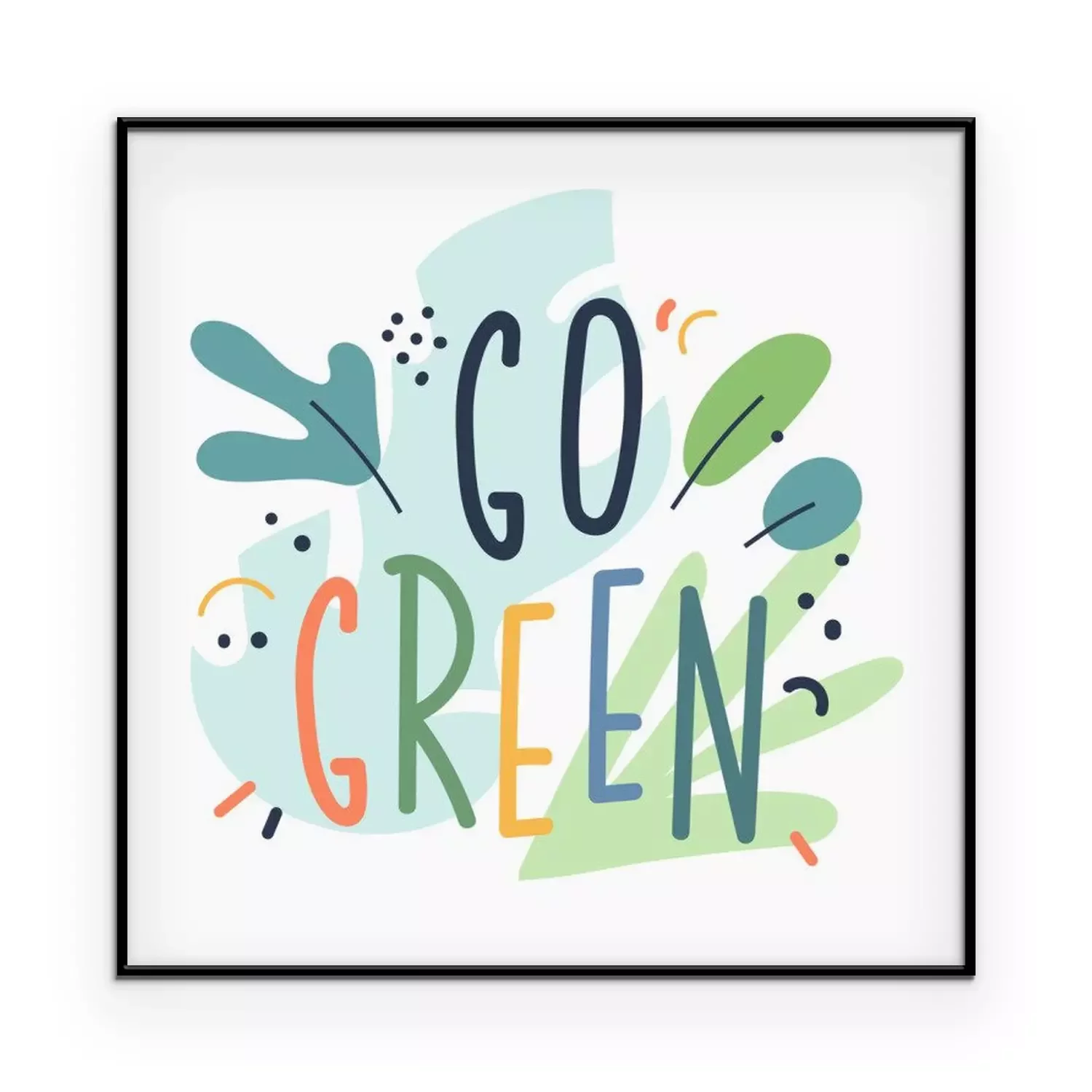 Poster House plant lettering, go green phrase, illustrated quote. Doodle handwritten phrase with simple scandinavian style illustrations. Vector typography; good for t-shirt print; postcard or poster