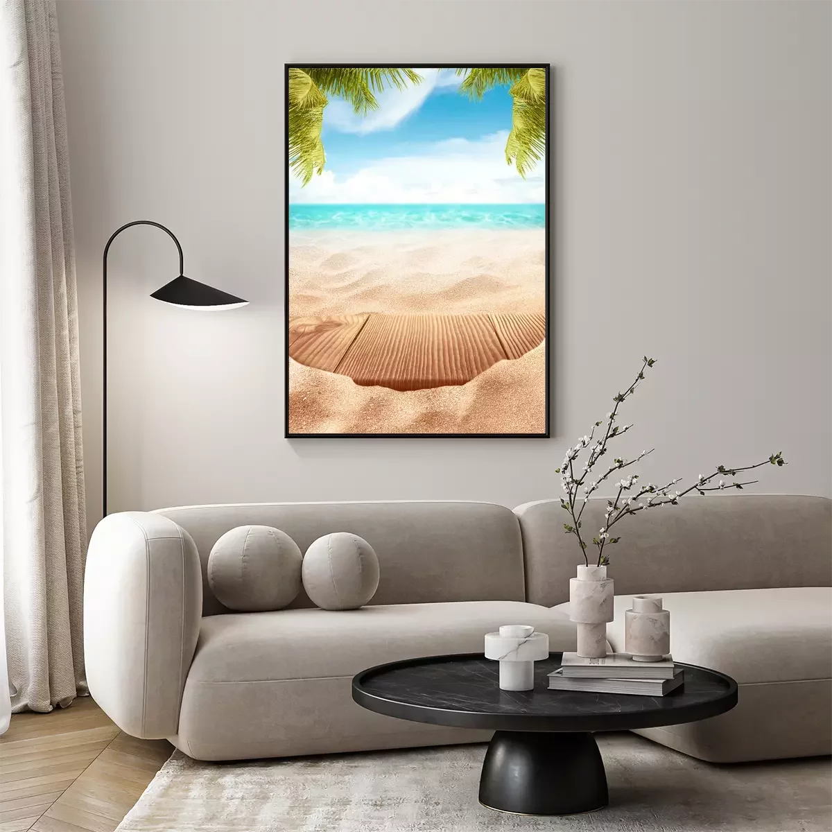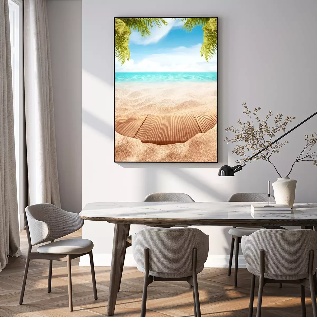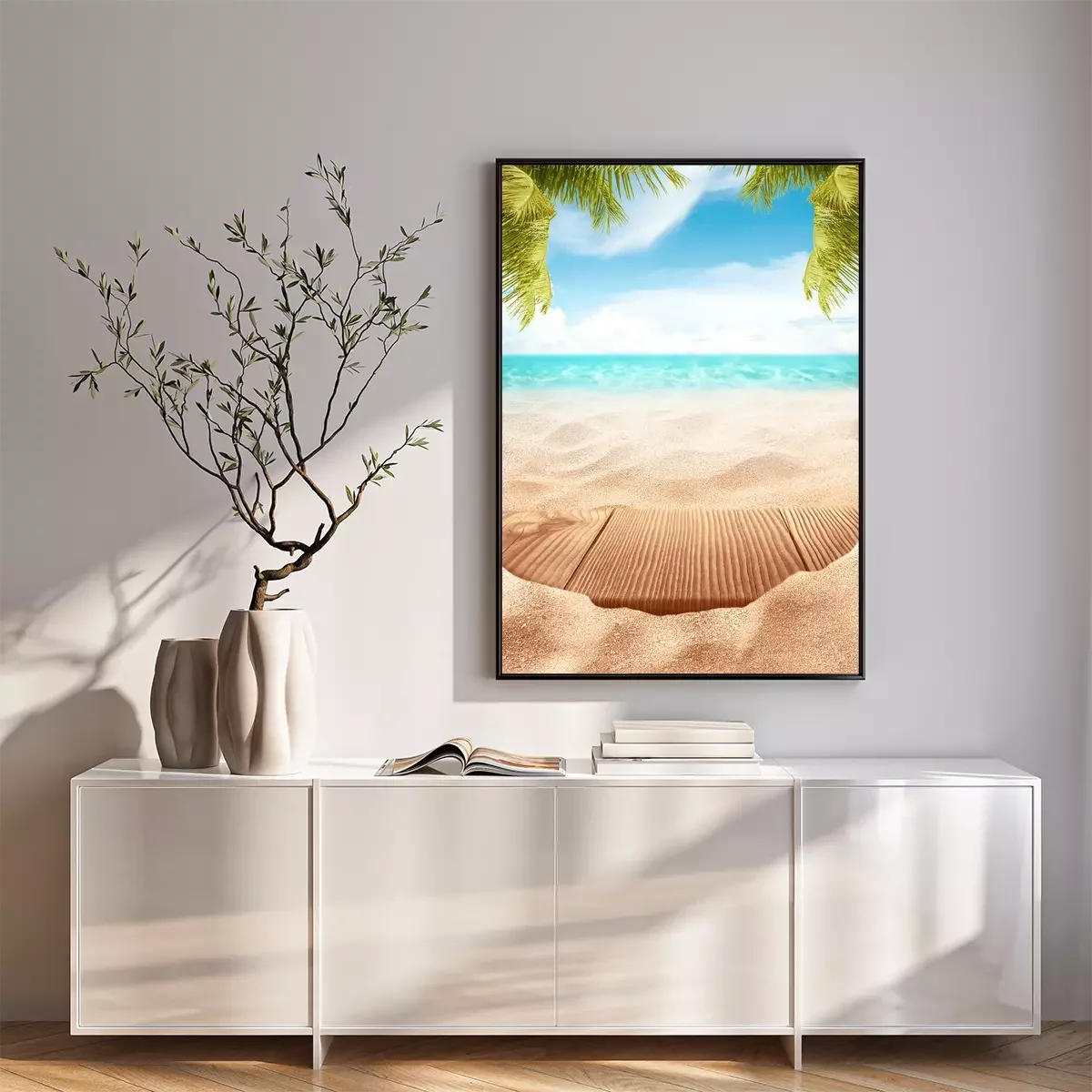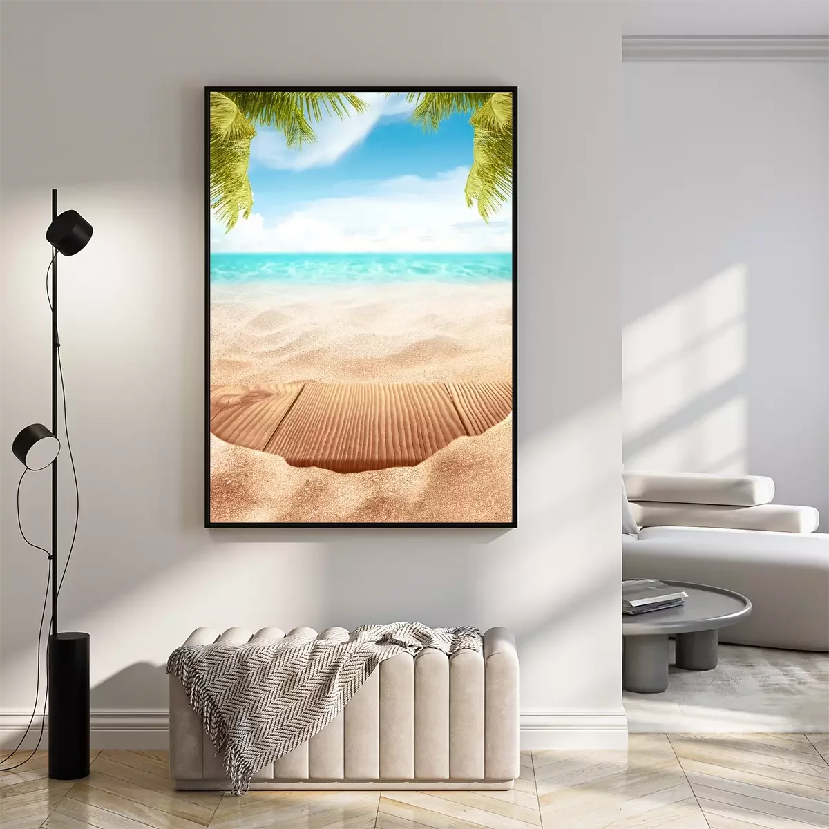 Poster: Houten platform op het strand