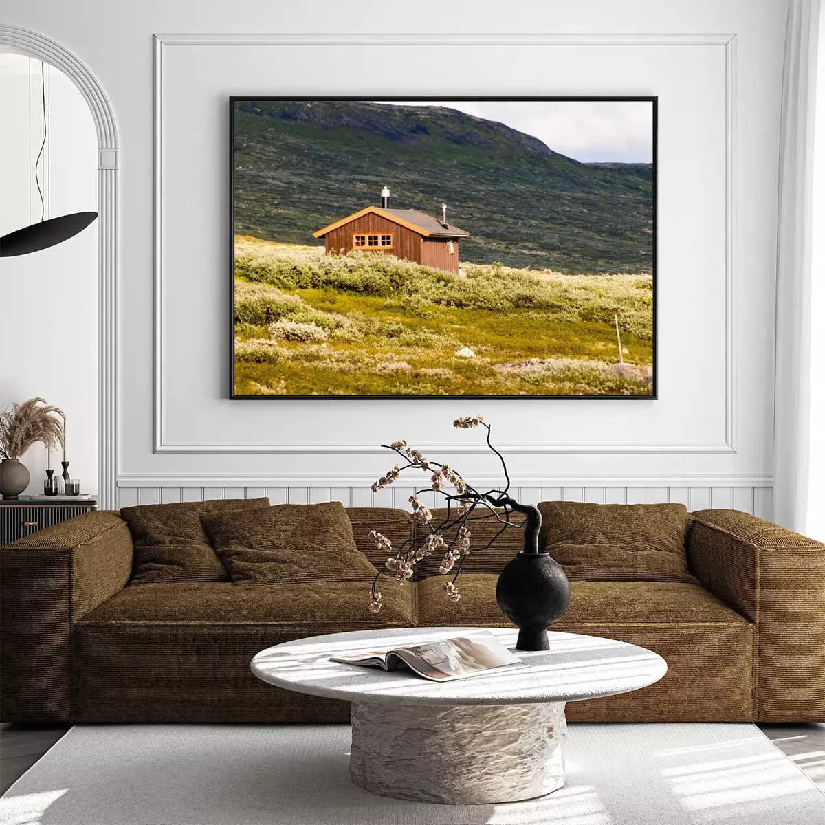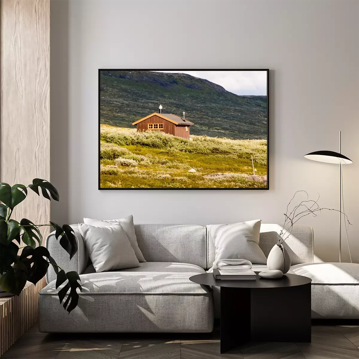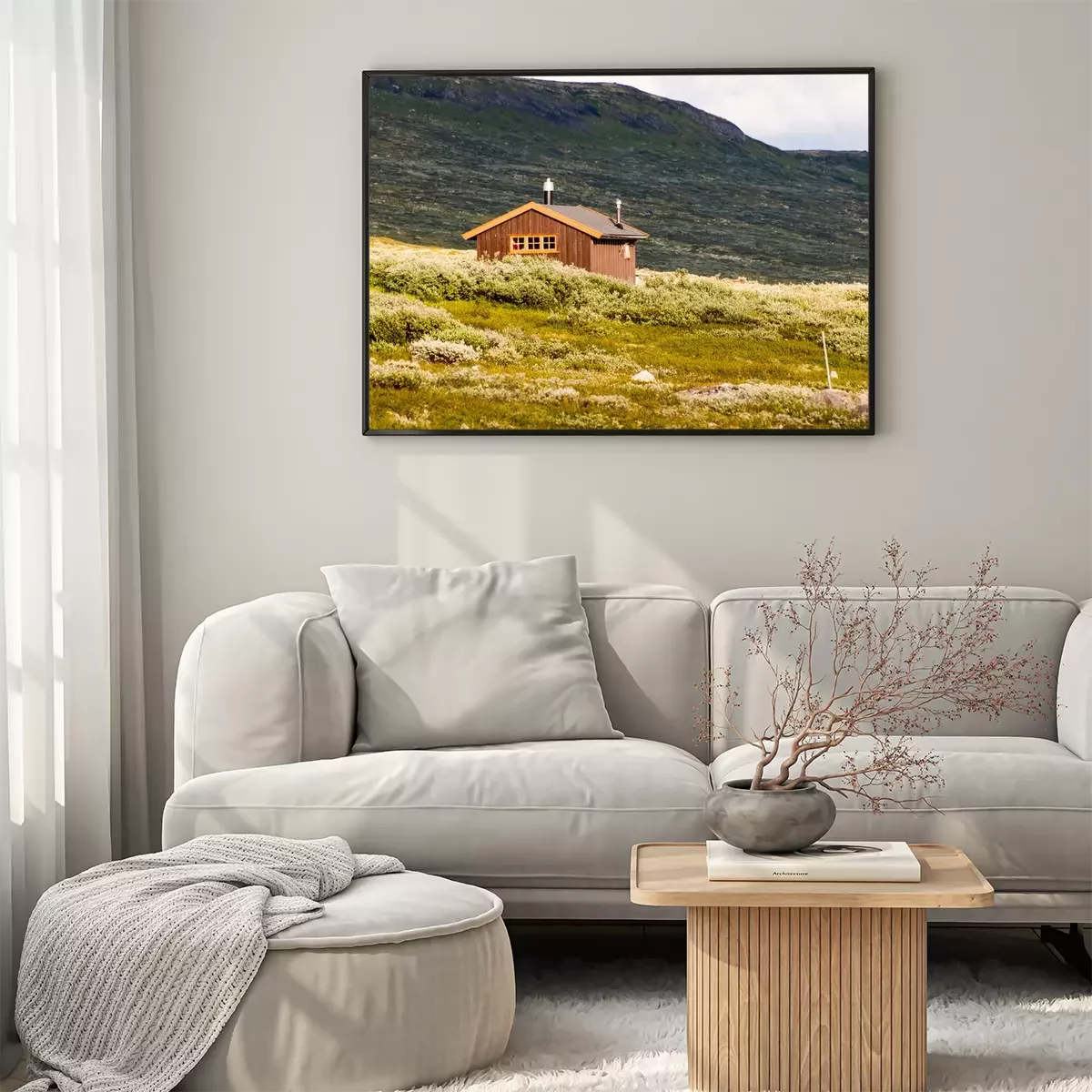 Poster: Hut tegen de achtergrond van het landschap