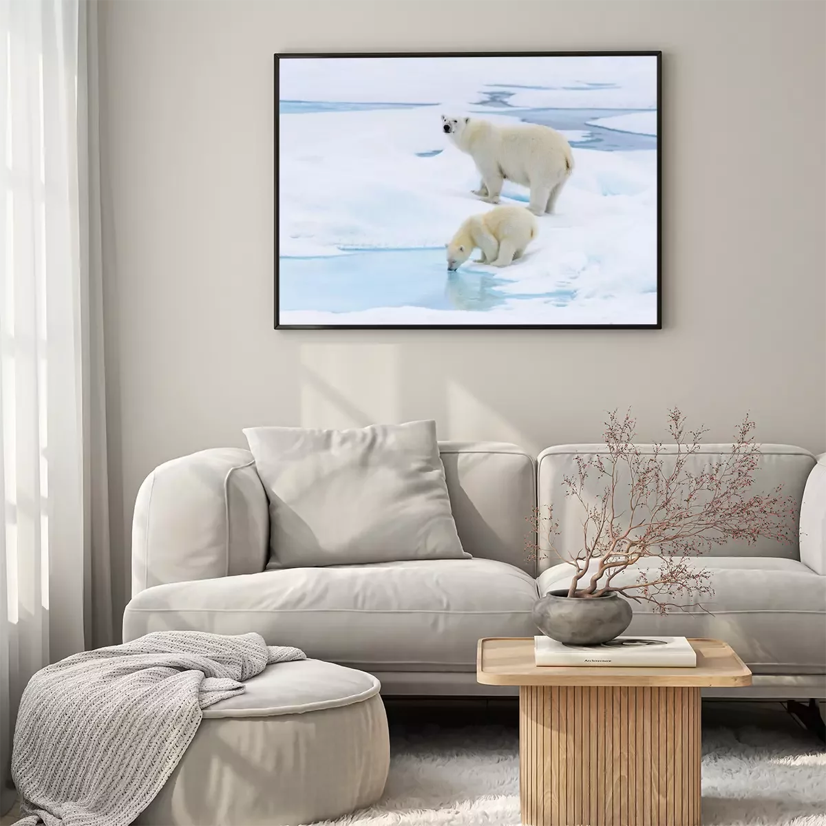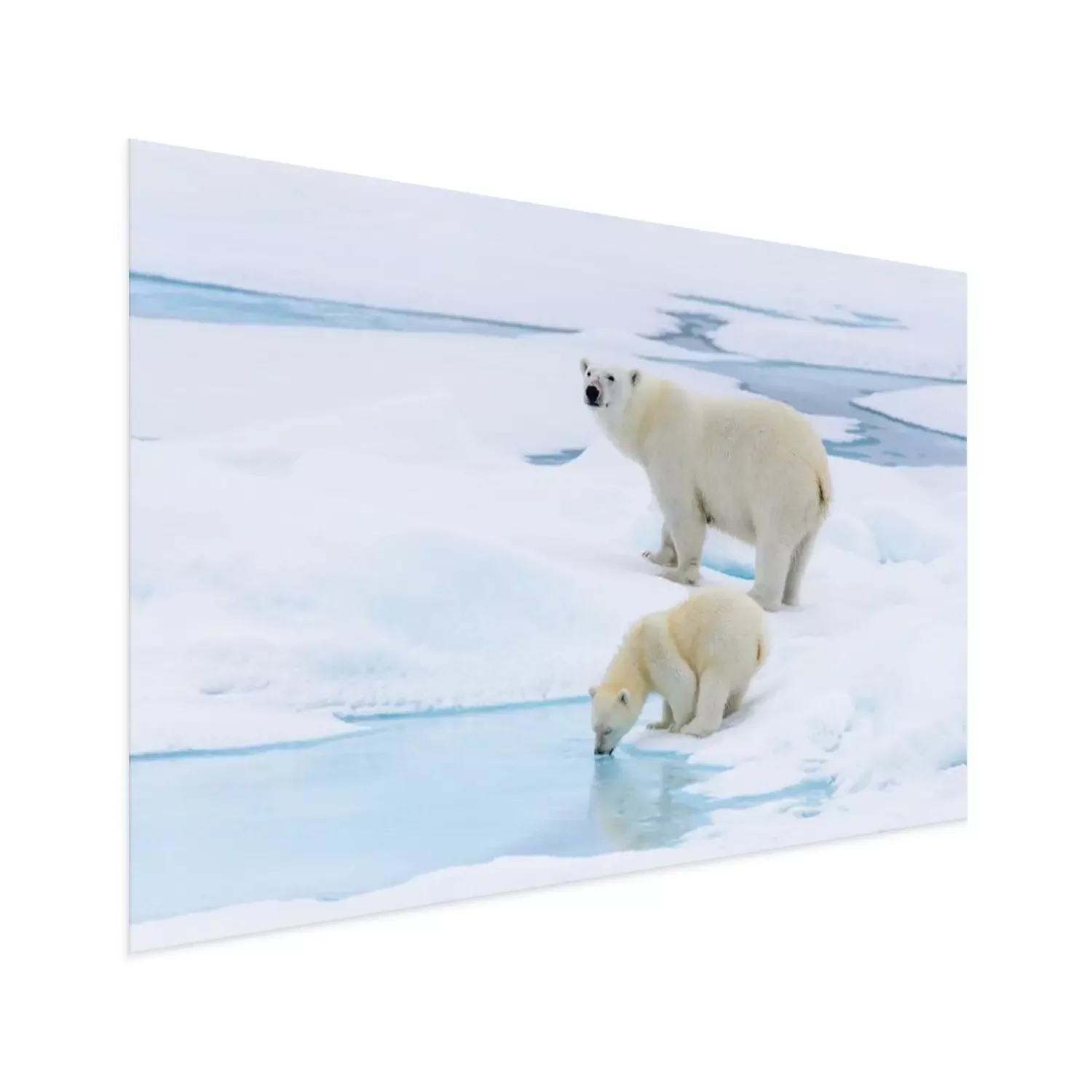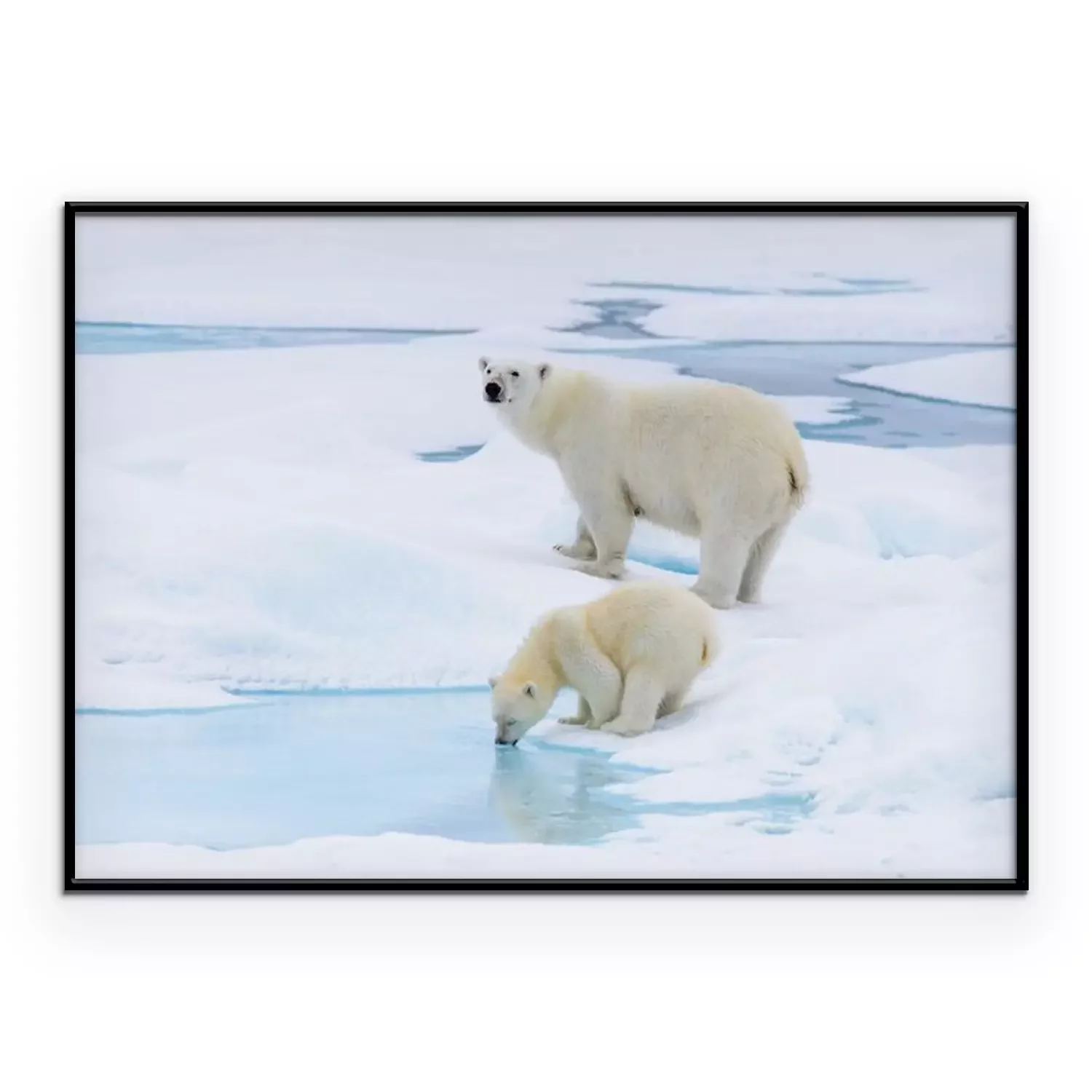Poster: Ijsbeer (Ursus maritimus) moeder en welp op het pakijs, noch