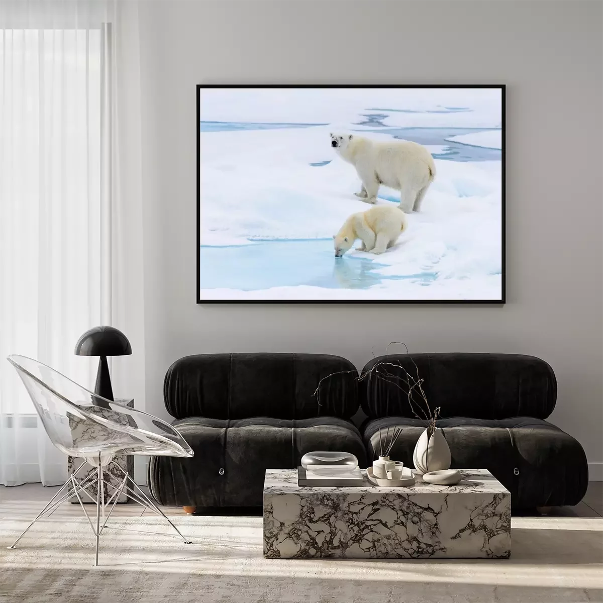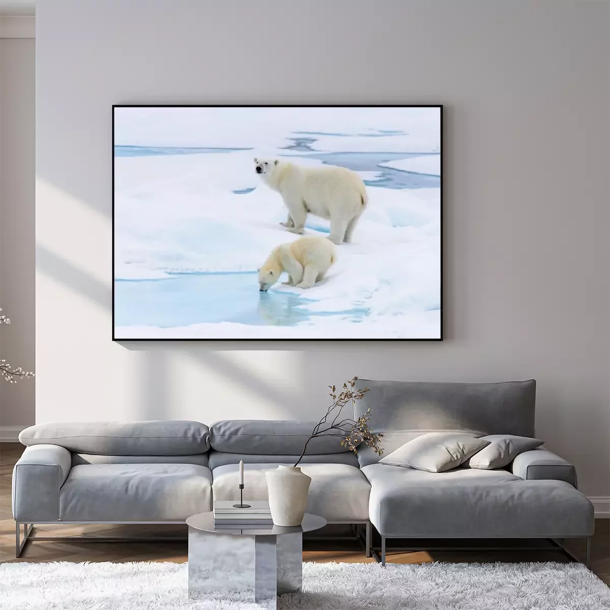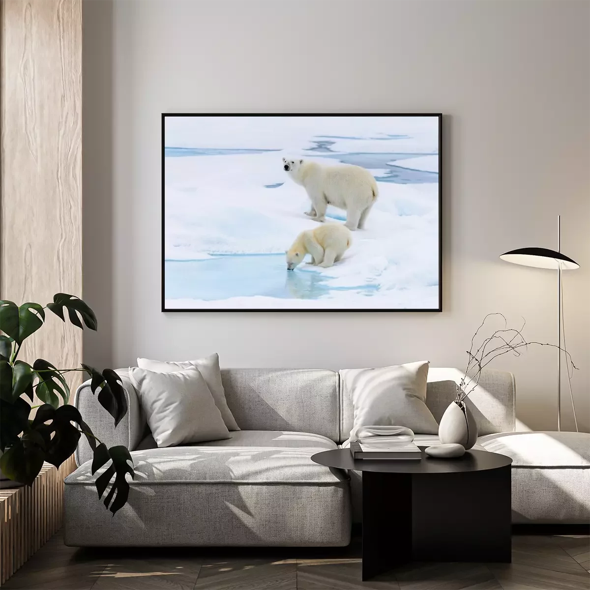 Poster: Ijsbeer (Ursus maritimus) moeder en welp op het pakijs, noch