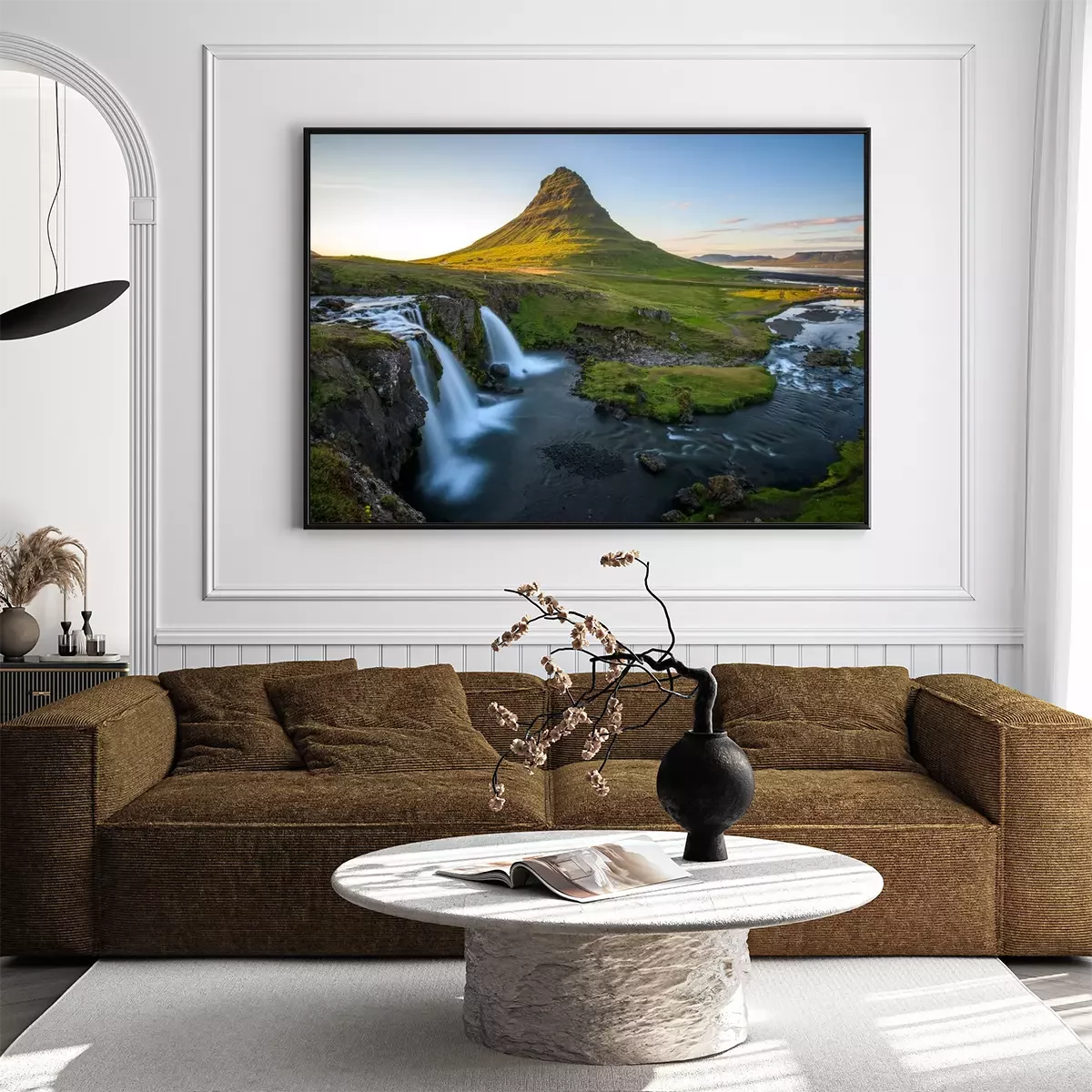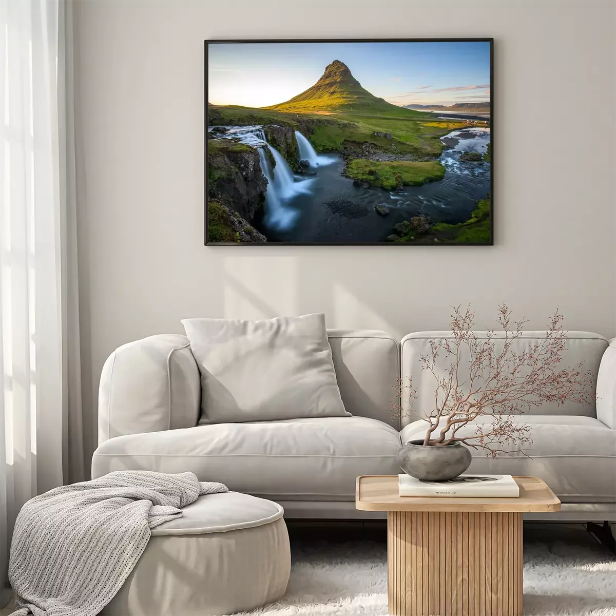 Poster IJslandse waterval bij de berg
