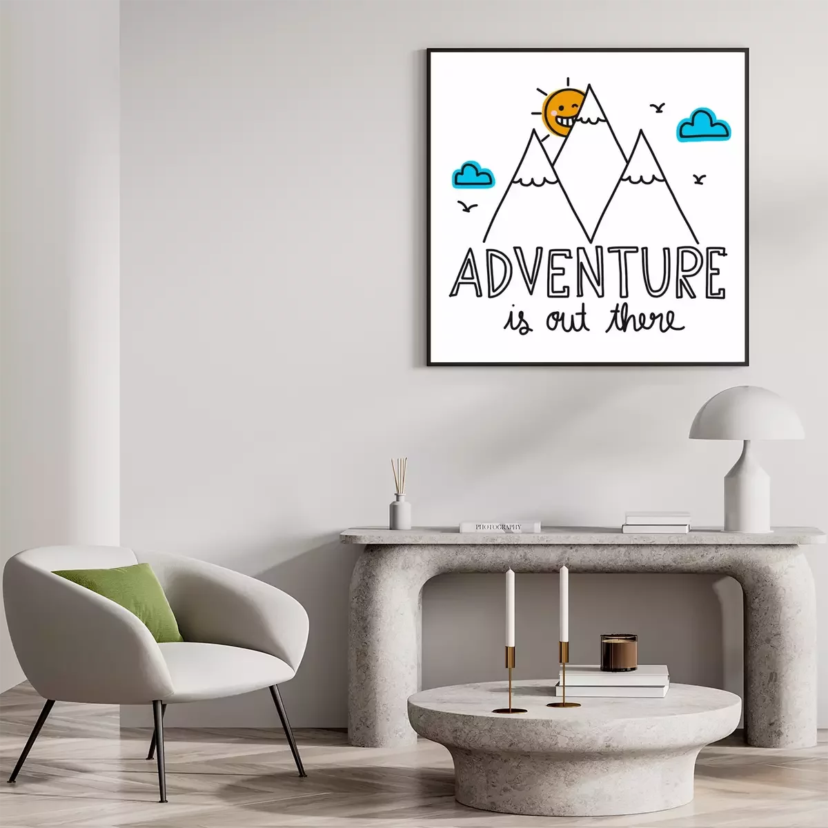 Poster: Illustratie en belettering over avontuur