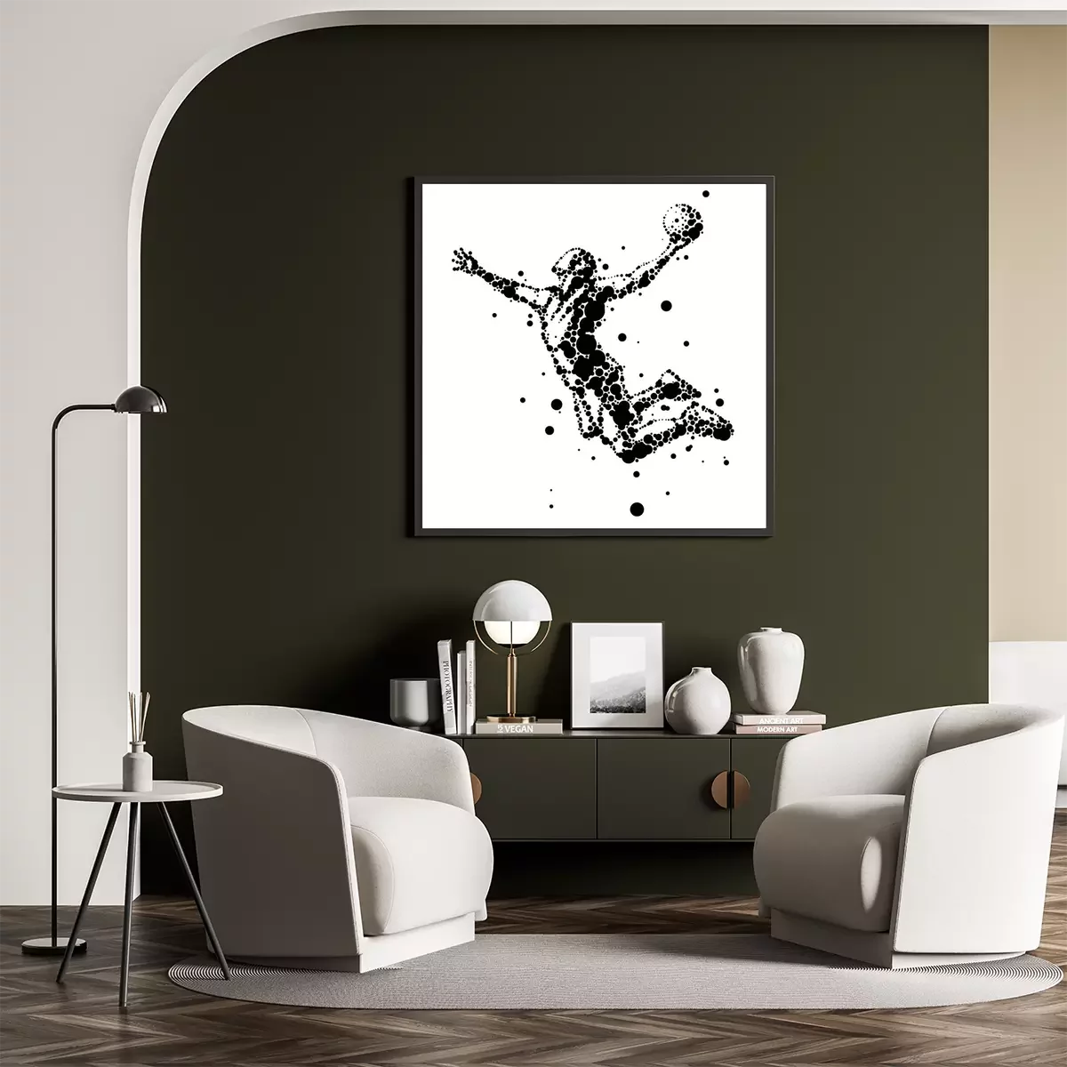 Poster: illustratie van abstracte basketbalspeler in sprong