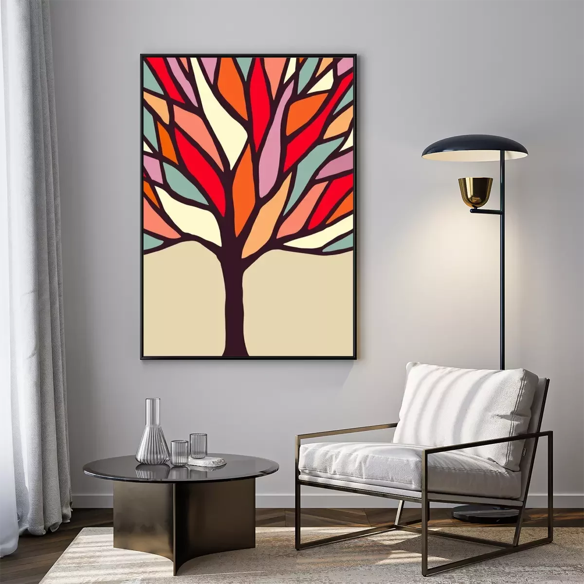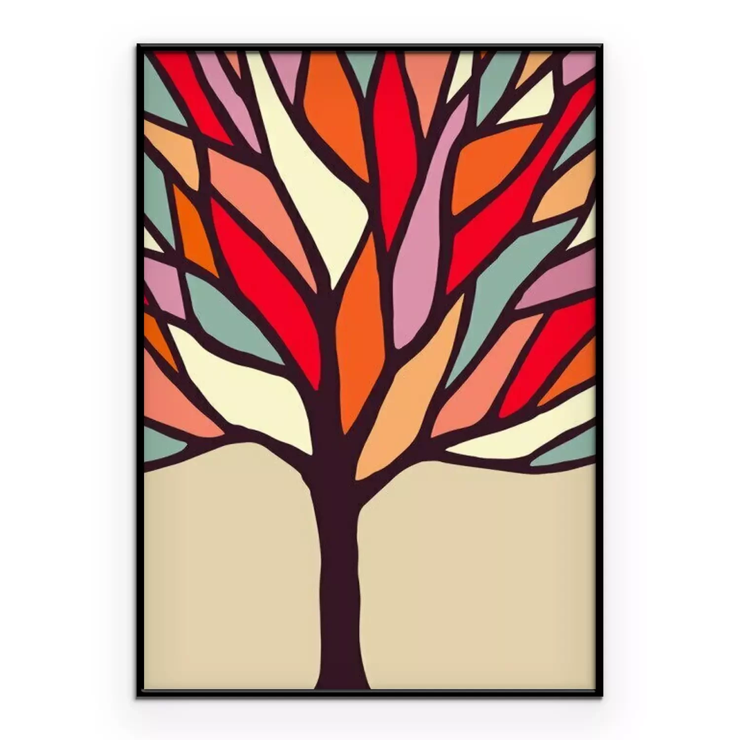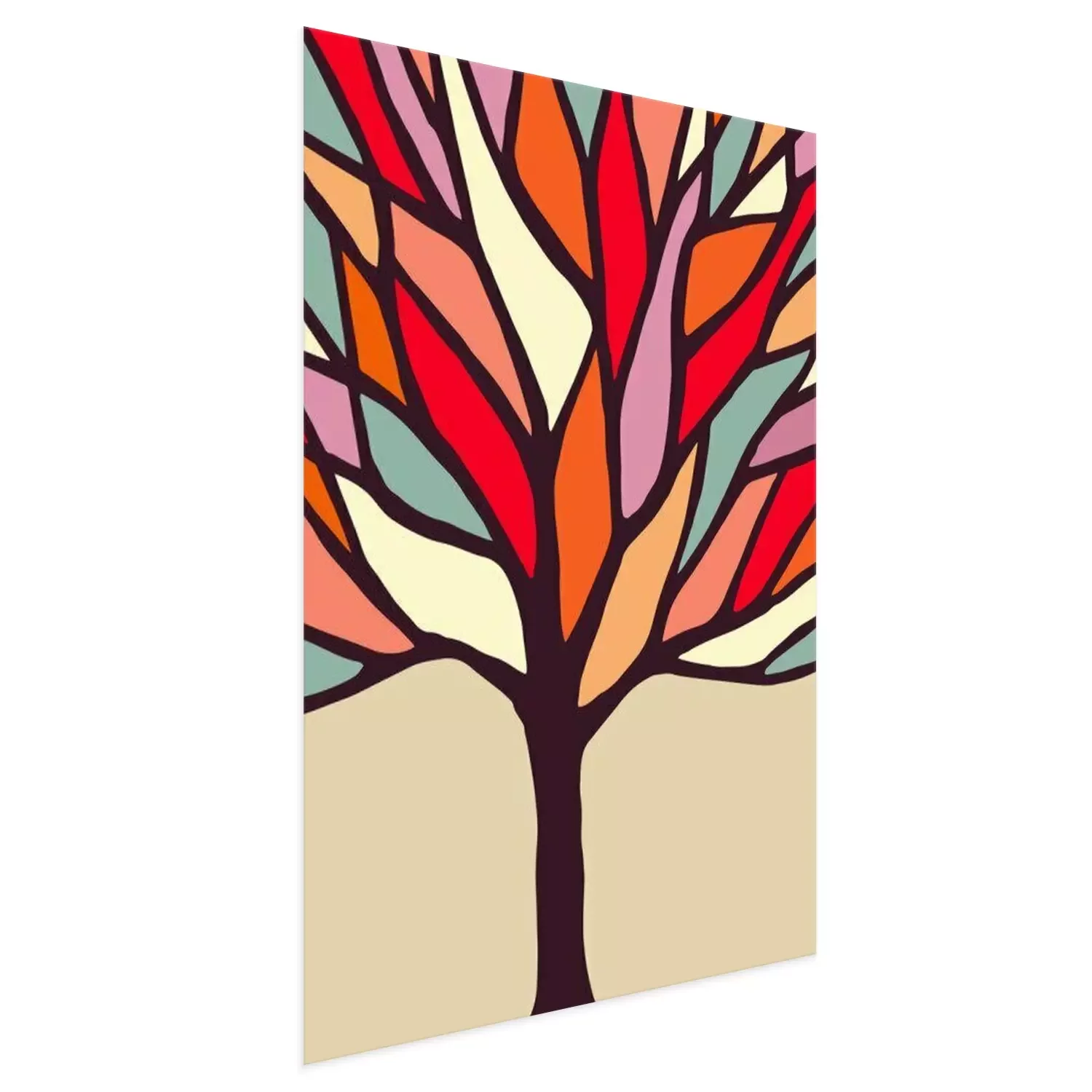 Poster: Illustratie van een boom in de vorm van een kleurrijke mozaïek