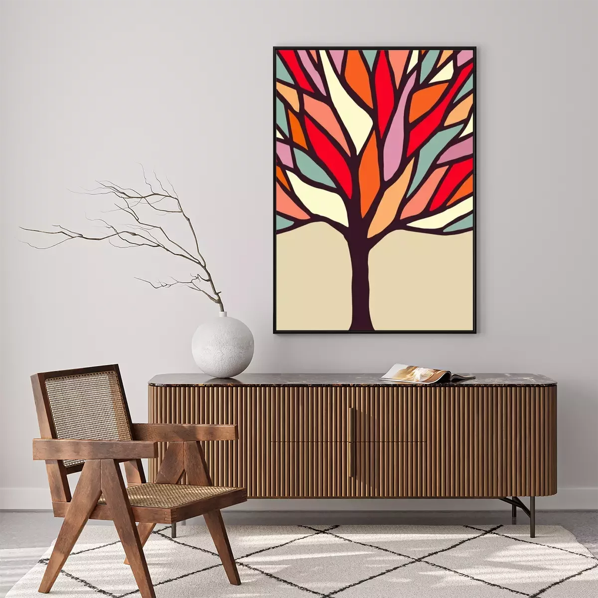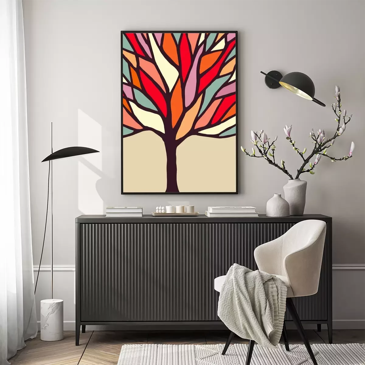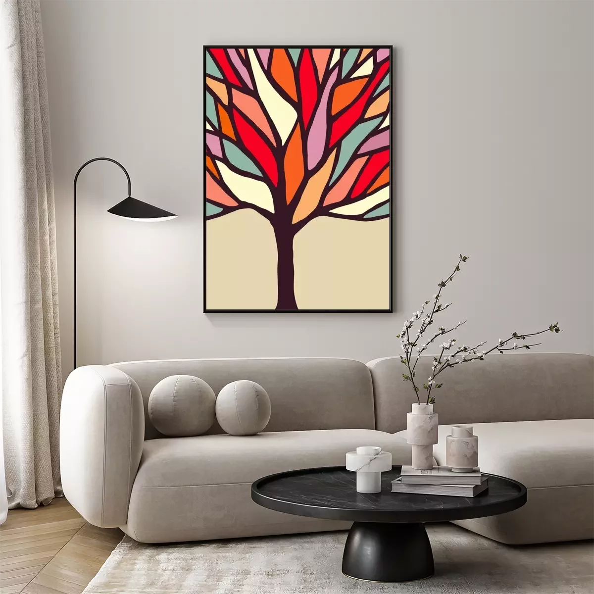 Poster: Illustratie van een boom in de vorm van een kleurrijke mozaïek