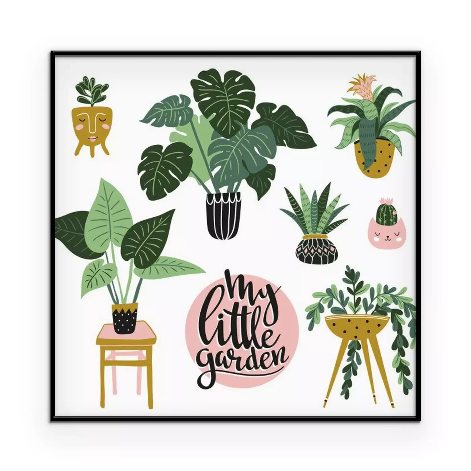 Poster: Illustratie van verschillende soorten kamerplanten met tekst