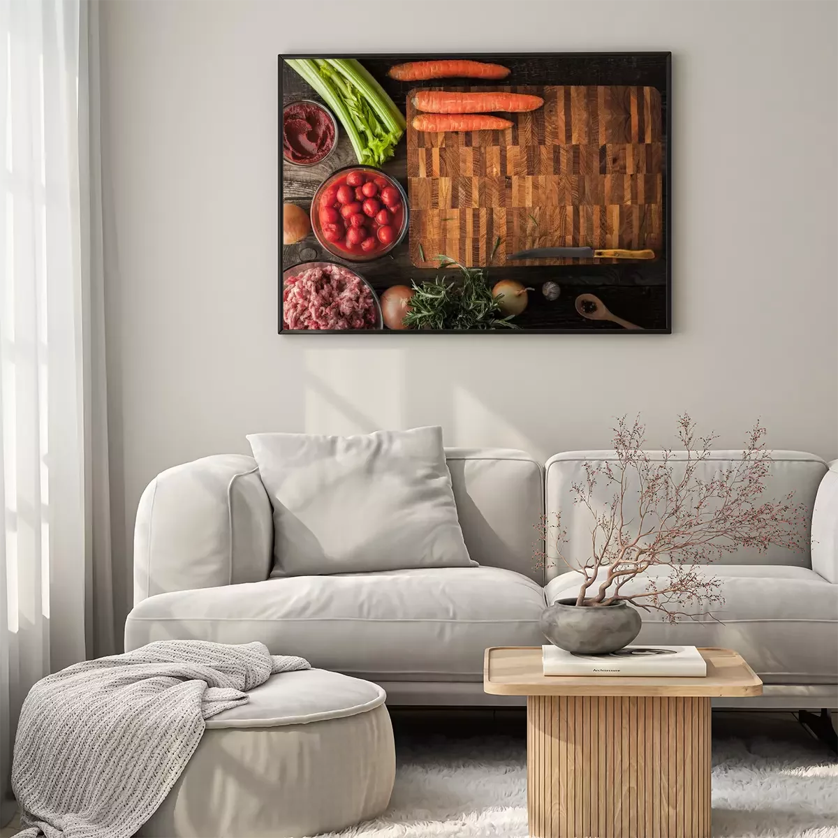 Poster: Ingrediënten van het voedsel op de houten tafel horizontale