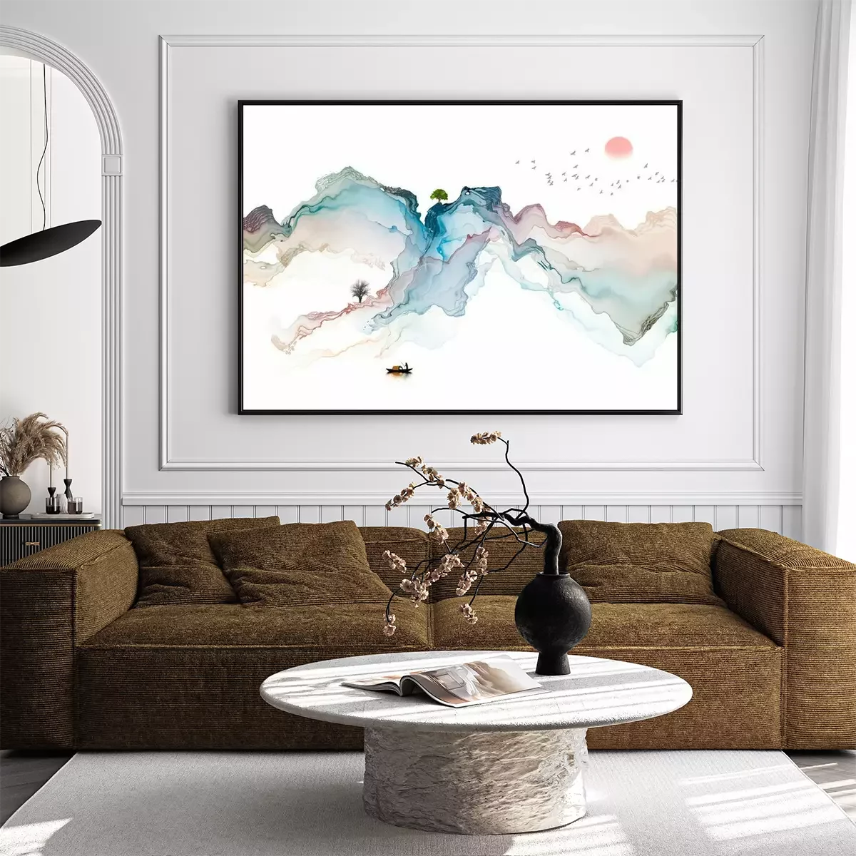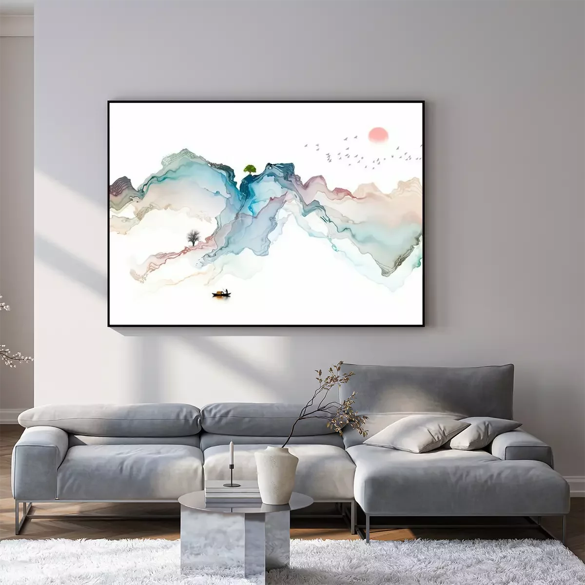 Hand-painted lines, abstract ink landscape decorations, art poster background