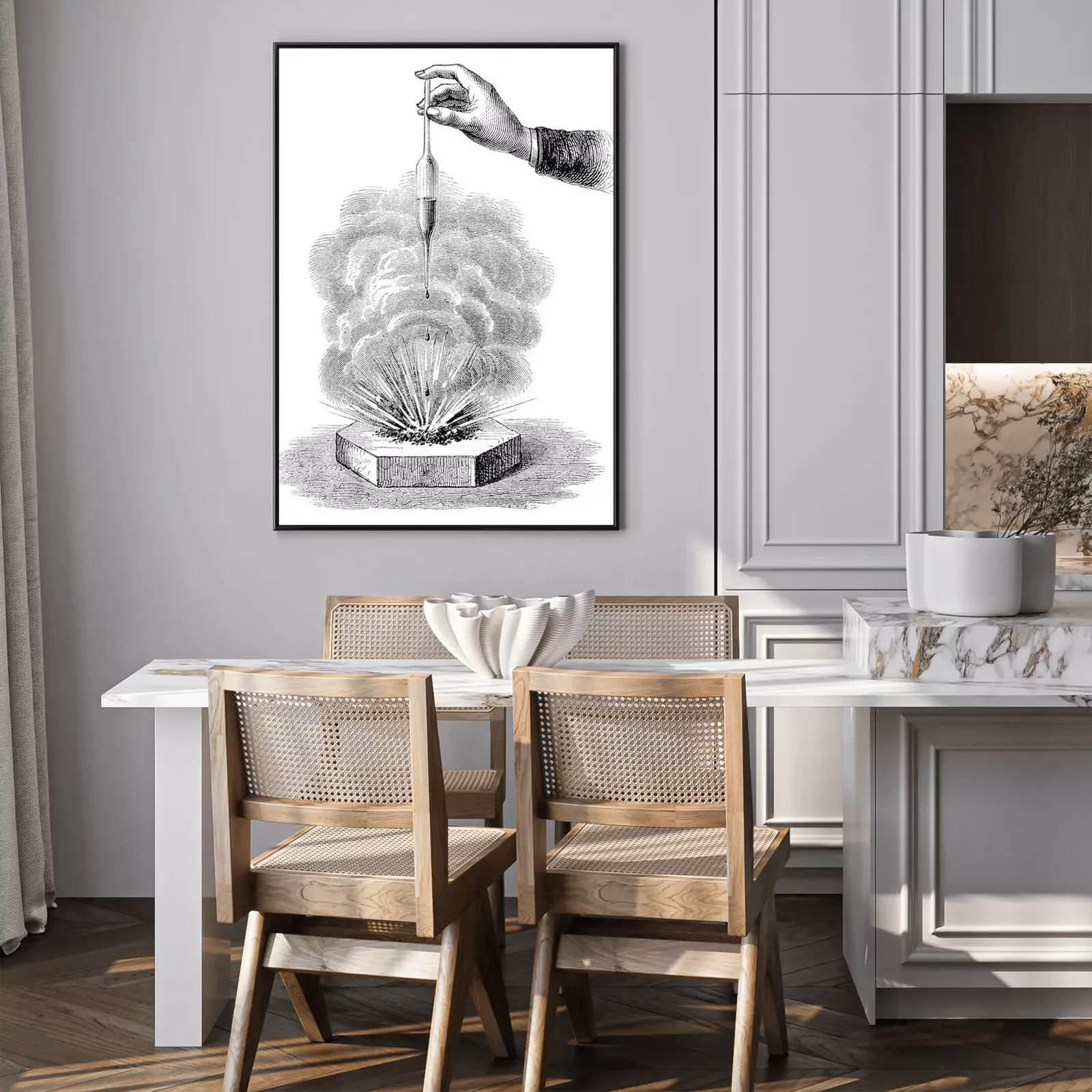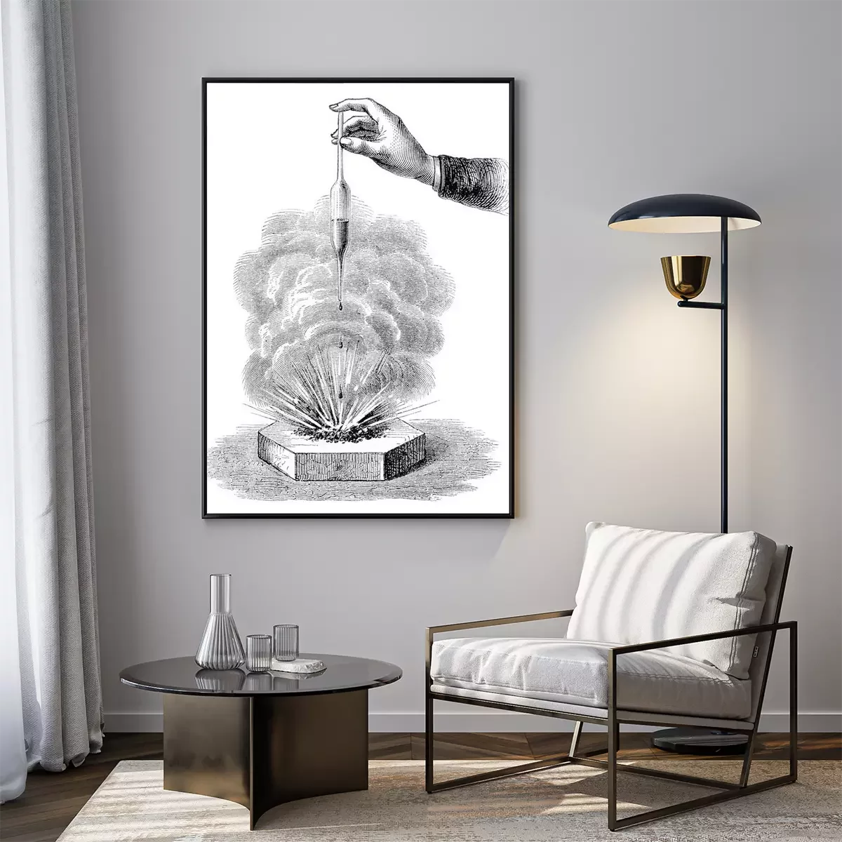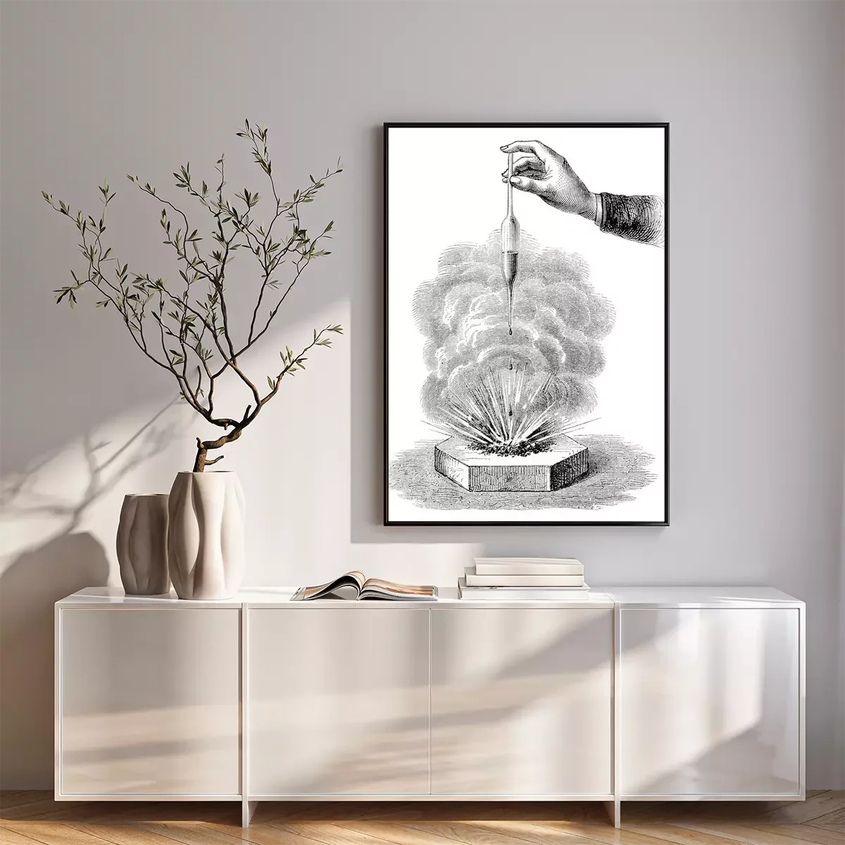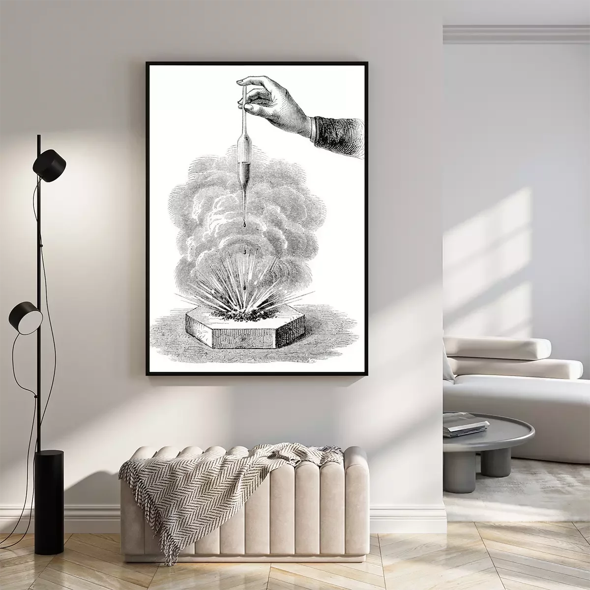 Poster Inwerking van zwavelzuur op bariet, vintage graveren.