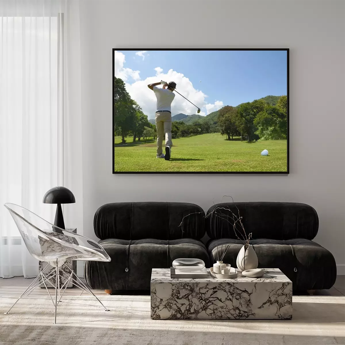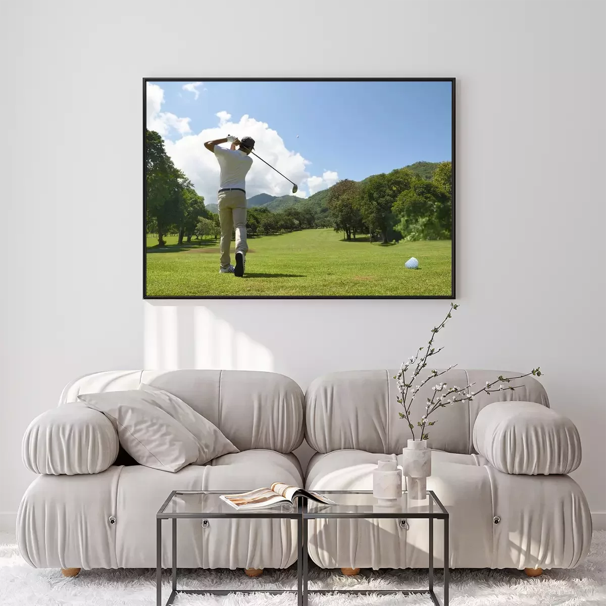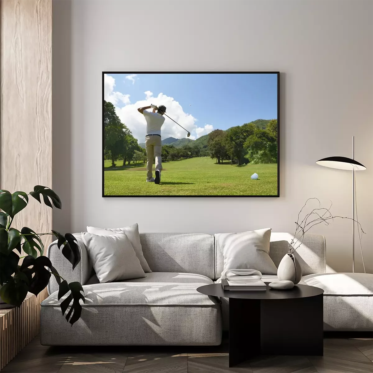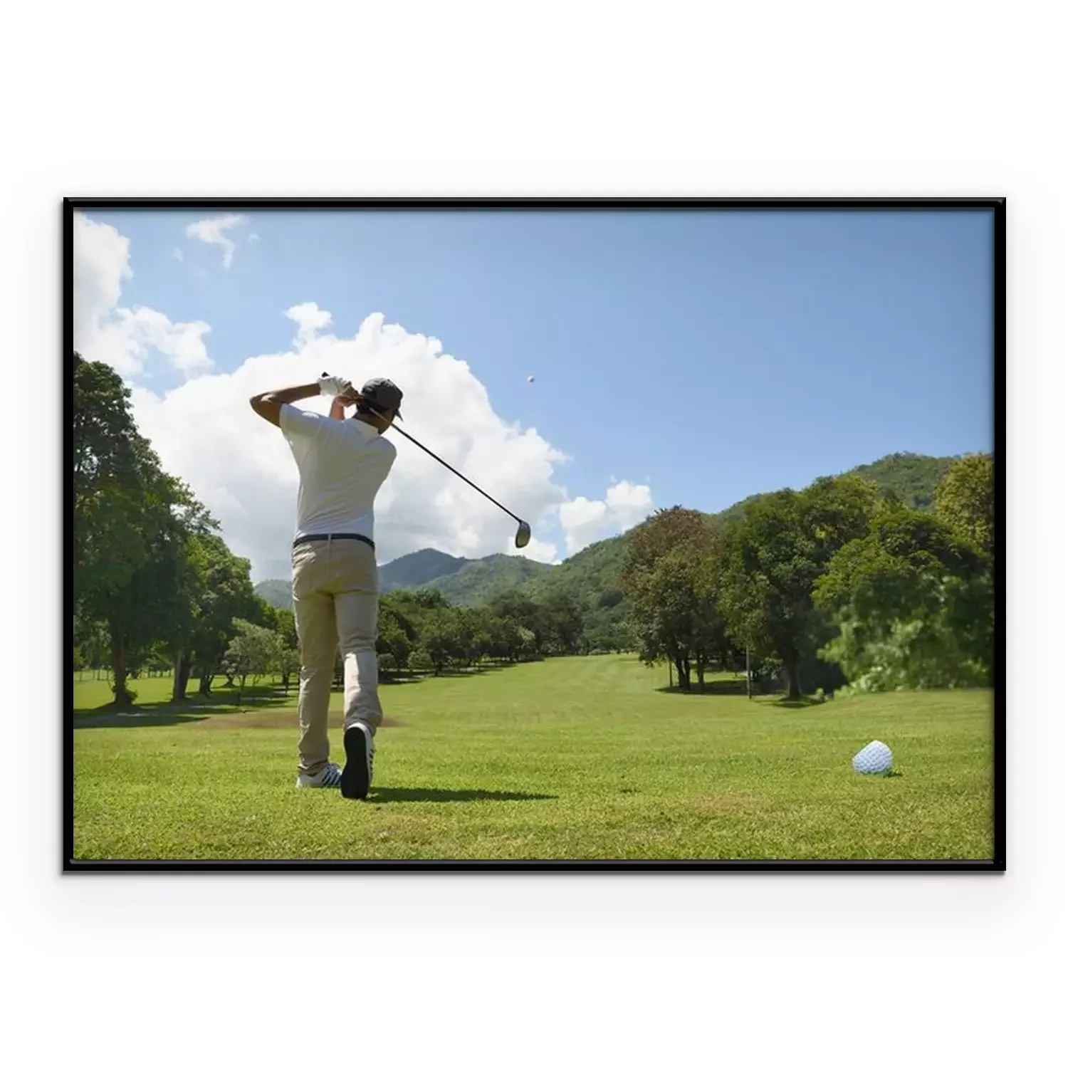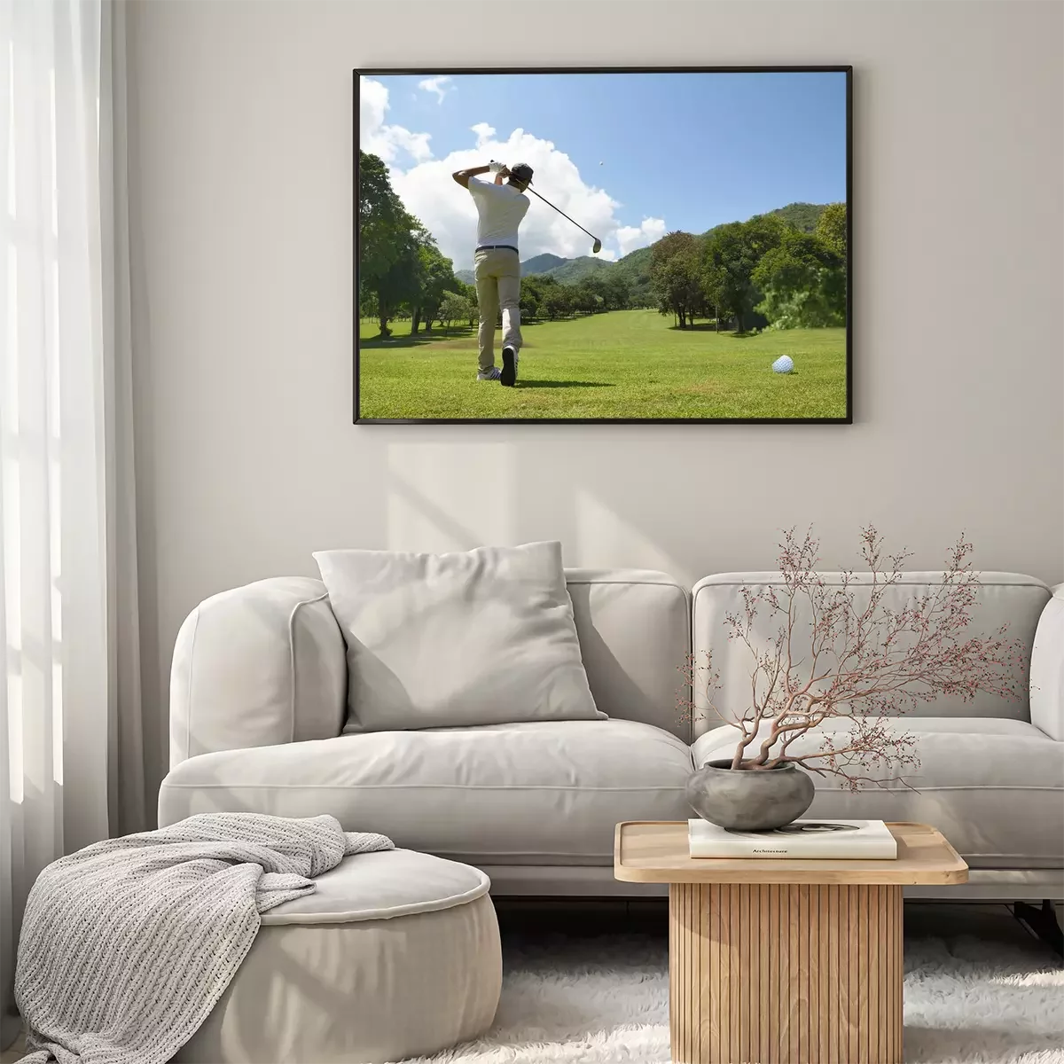 Poster Jong Aziatisch golfspel op een mooie natuurlijke golfcursus