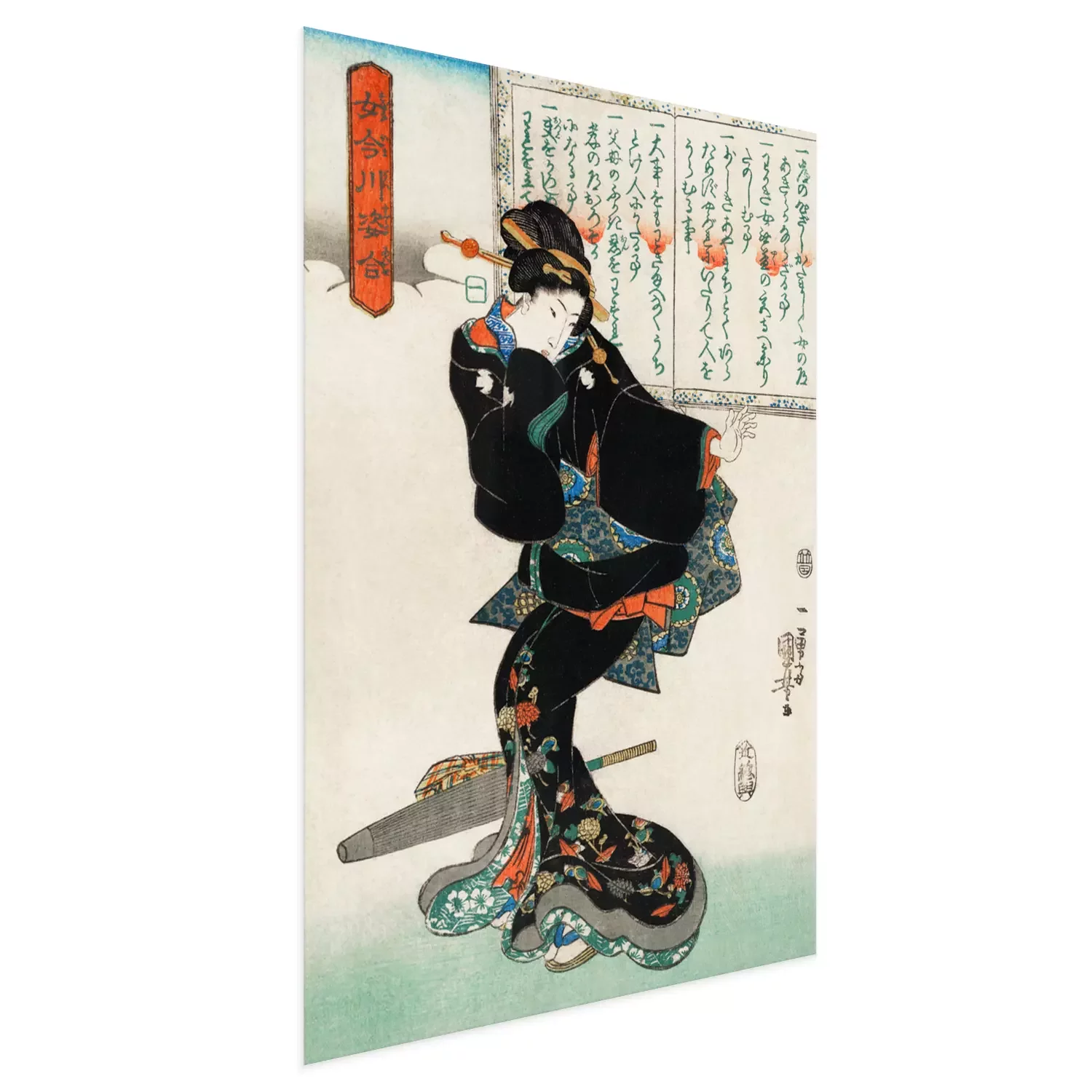 Poster: Jonge vrouw die een boek bestudeert
