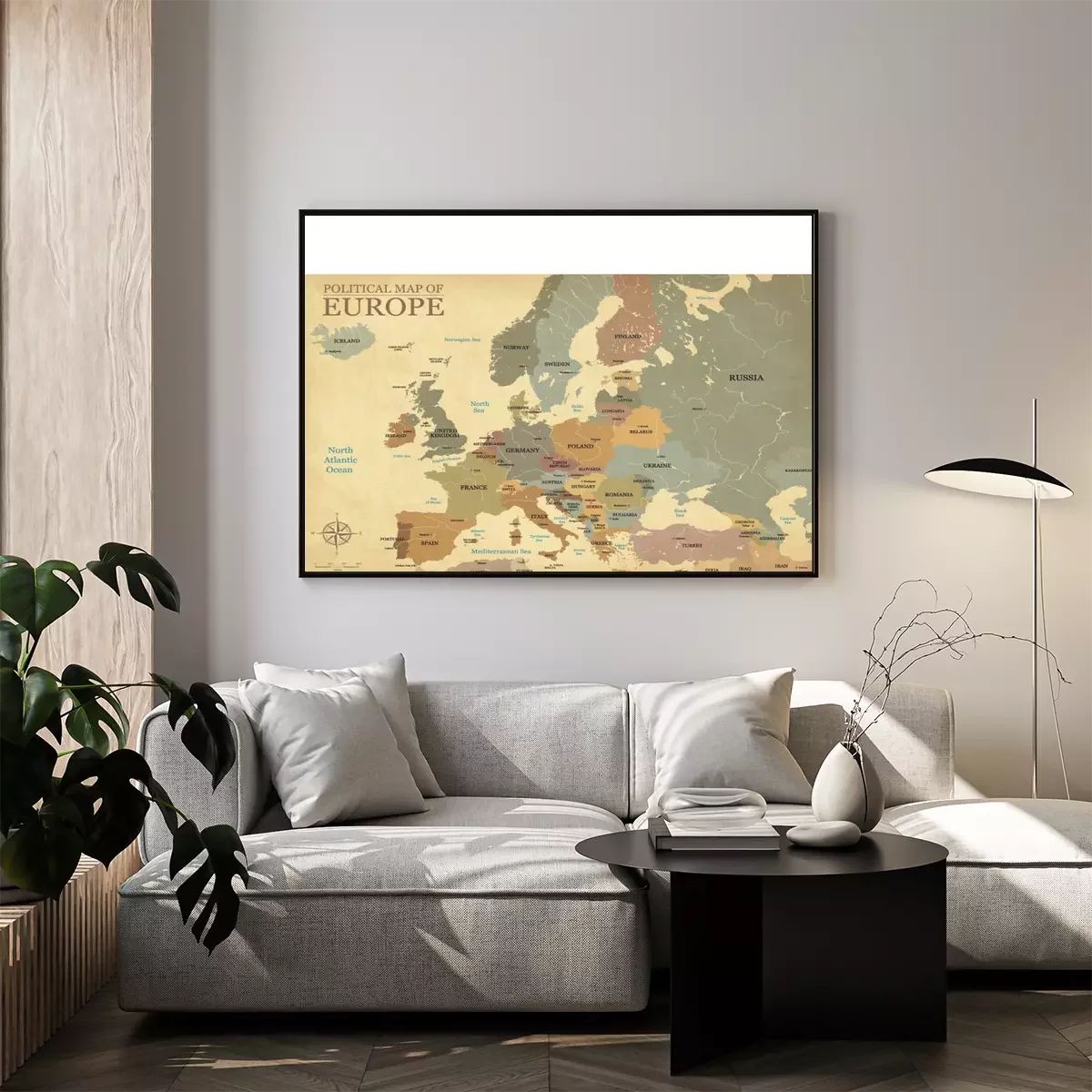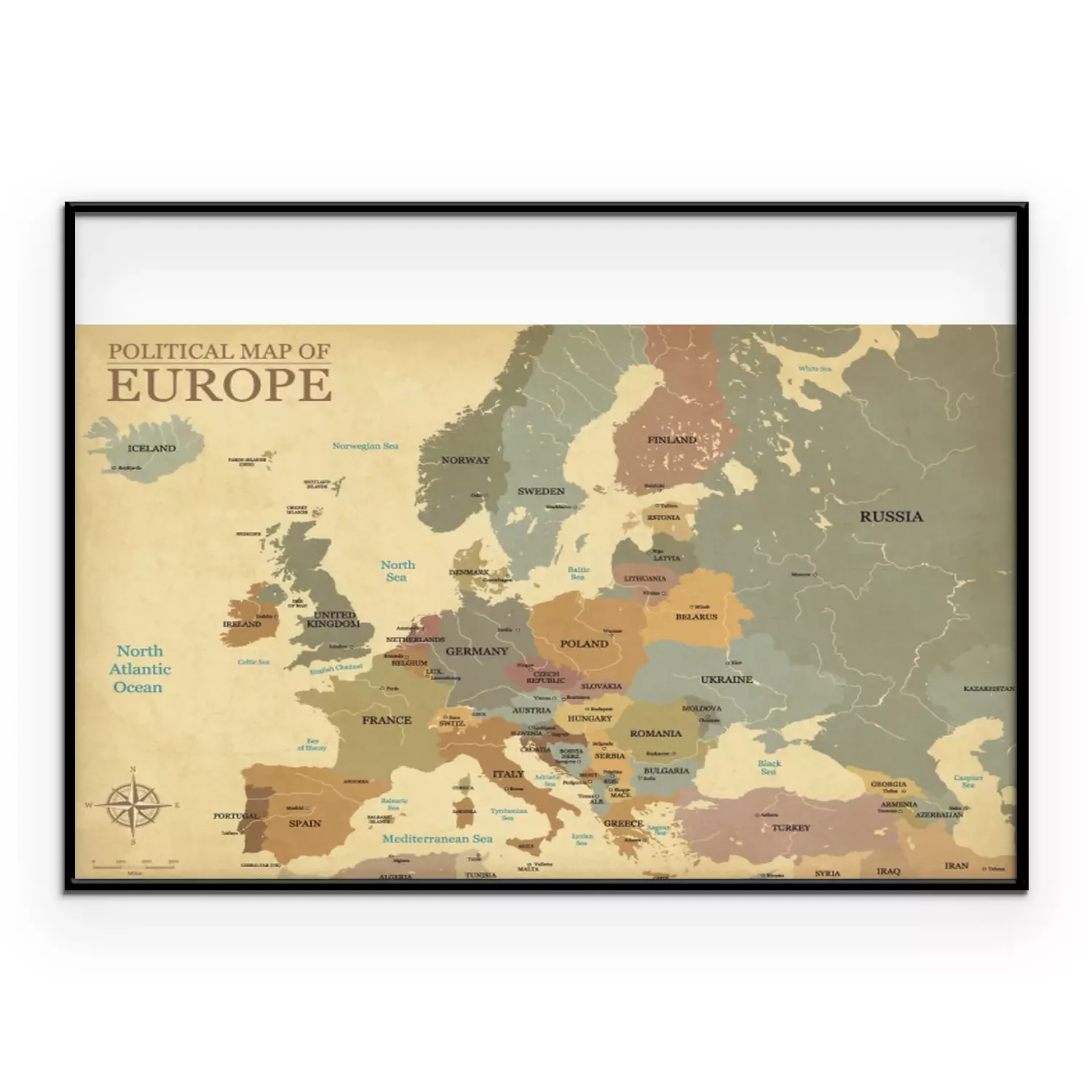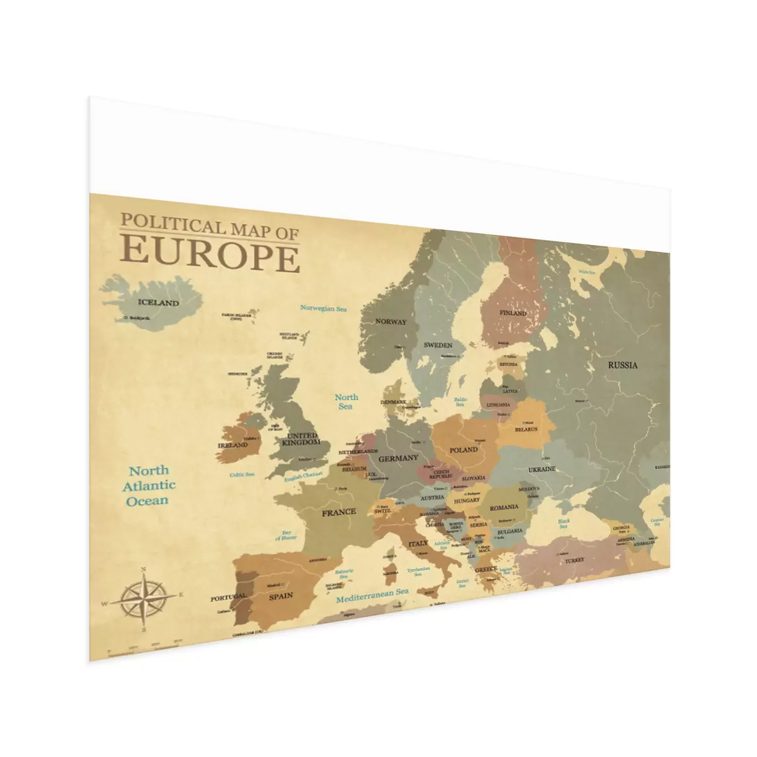 Poster: Kaart van Europa met hoofdletters - Vintage textuur - Engelse / Amerikaanse taal - Vector CMYK