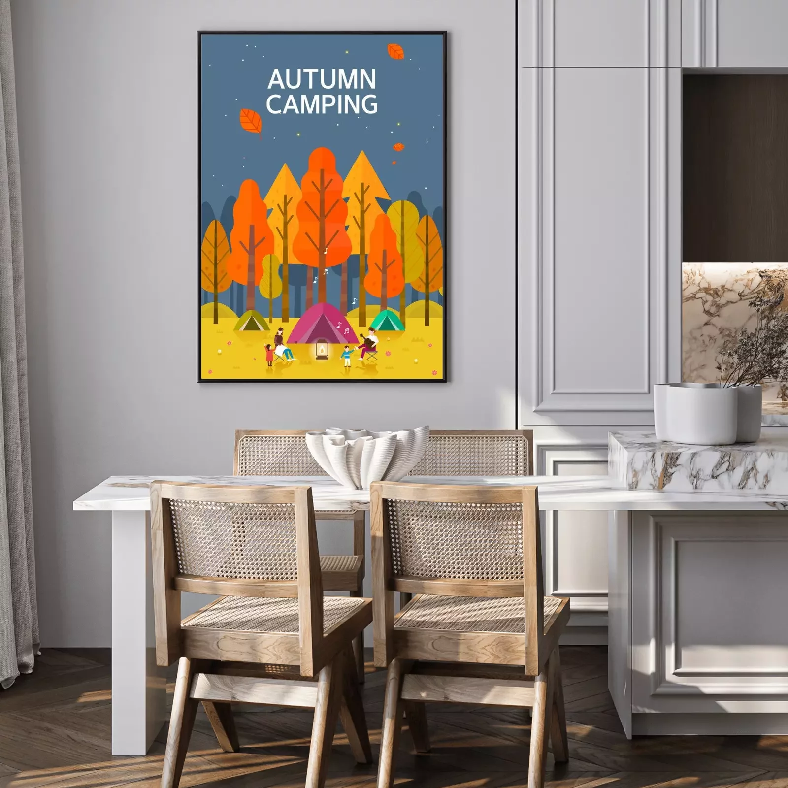 Poster Kamperen in het herfstbos grafisch ontwerp