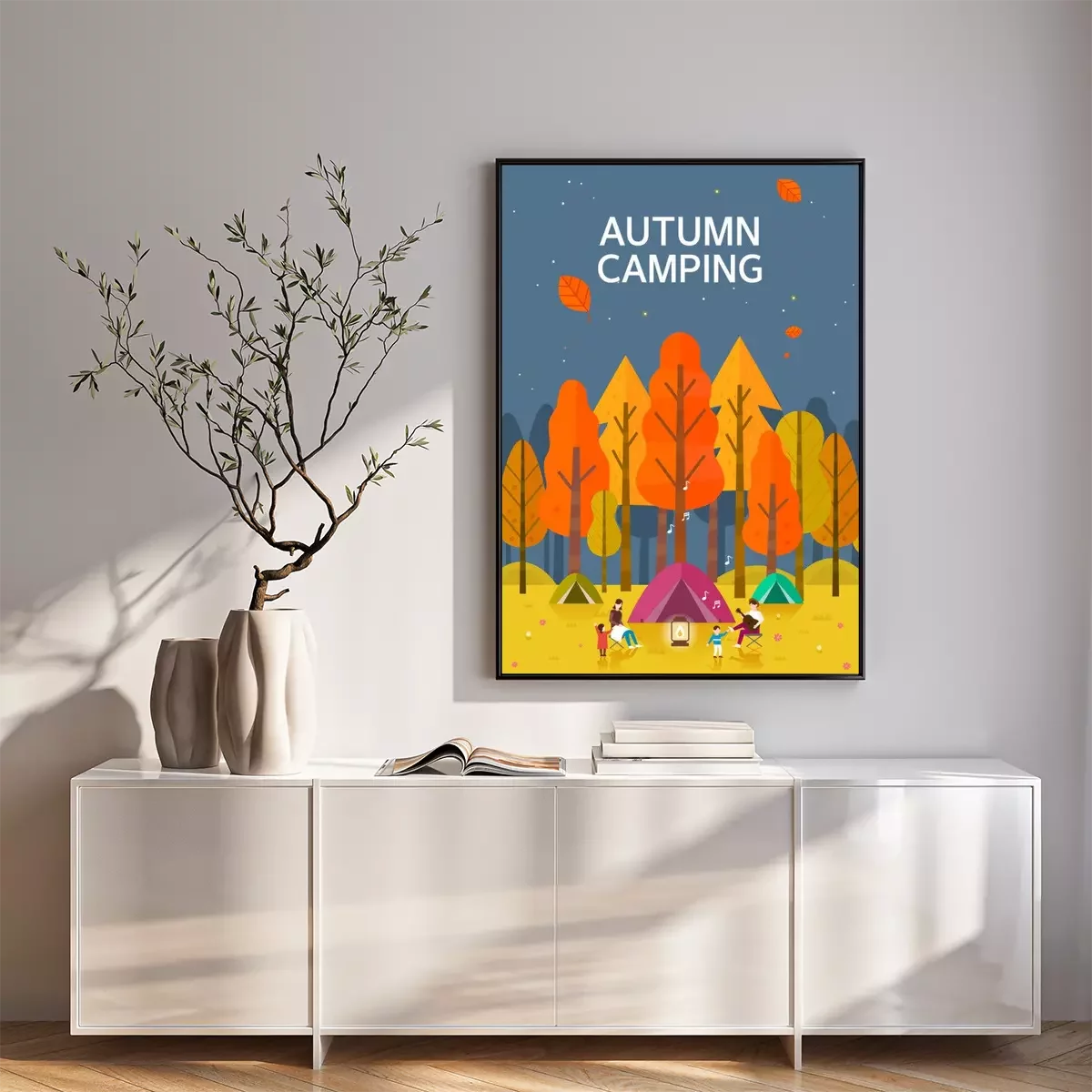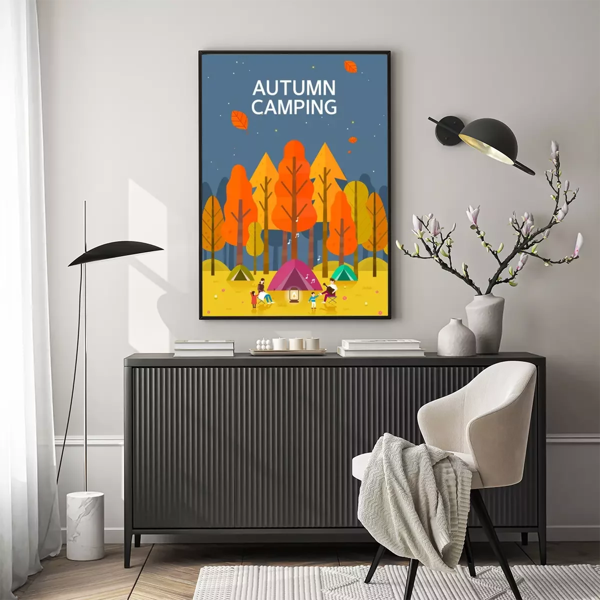 Poster: Kamperen in het herfstbos grafisch ontwerp